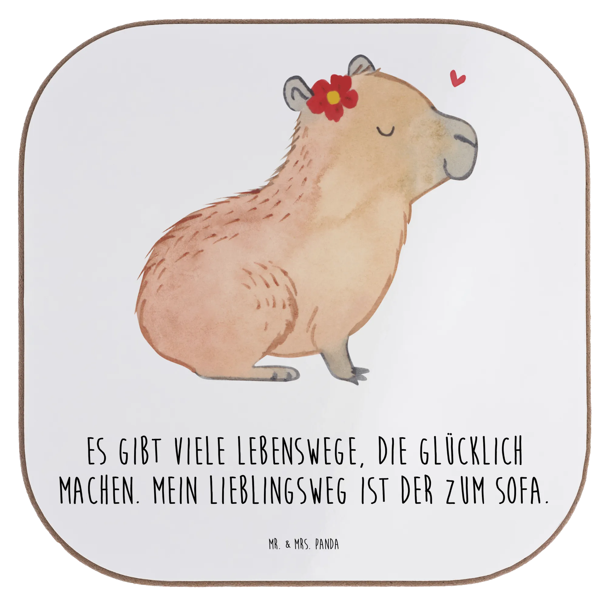 Introducing the Capybara Flower, where relaxation meets whimsy! Our lovable capybara, sporting a vibrant red flower with a splash of cheerful yellow, whispers to you that it's okay to unwind. With a soft smile and closed eyes, this adorable creature embodies tranquility. Above, a floating heart adds a touch of love, reminding us that happiness is often just a heartbeat away. Embracing our mantra: Es gibt viele Lebenswege, die glücklich machen. Mein Lieblingsweg ist der zum Sofa brings us back to those relaxing moments we all treasure.