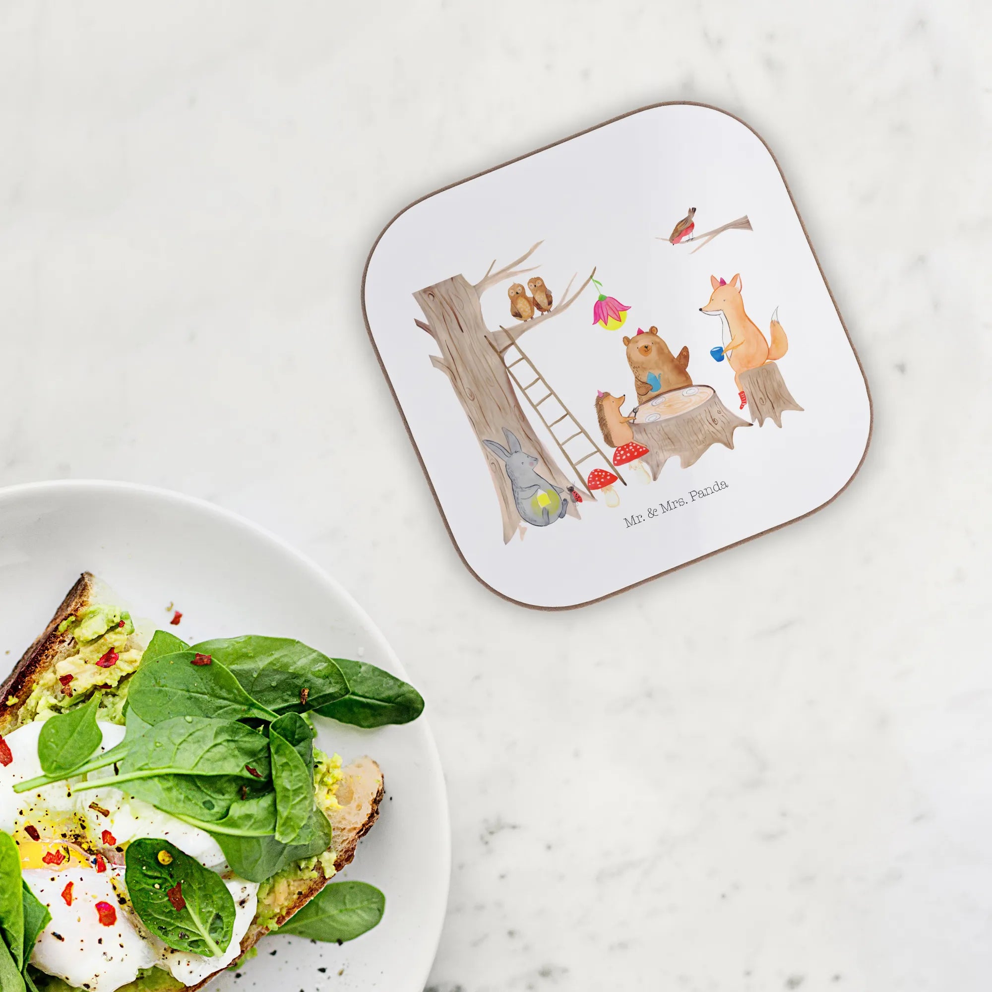 Are you looking for the perfect gift idea that brings joy and smiles to your loved ones? Look no further! The Square Coaster featuring adorable Forest Animals enjoying a delightful picnic from the Small World collection by Mr. & Mrs. Panda is the ideal present for any occasion! Measuring at 100 mm x 100 mm (4 inches x 4 inches) and a thickness of 5 mm, this coaster is not just practical; it adds a touch of whimsy and charm to any setting.