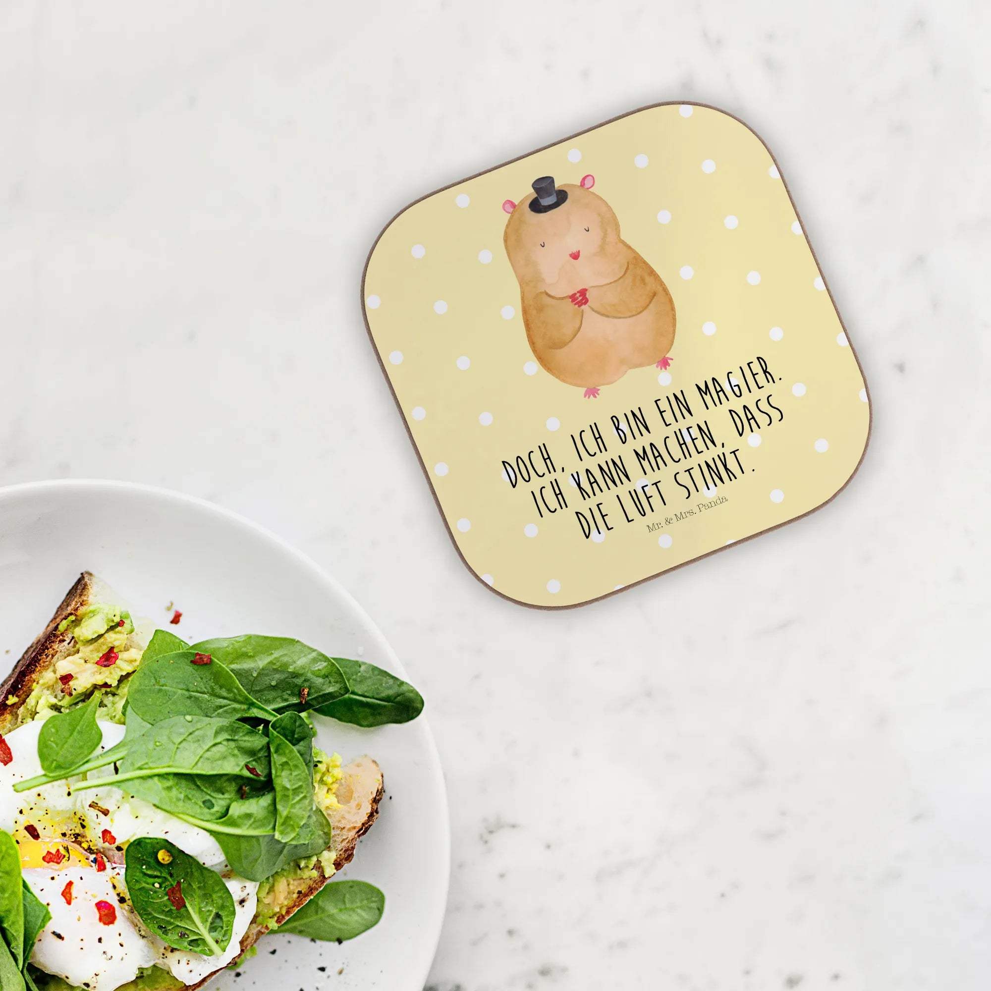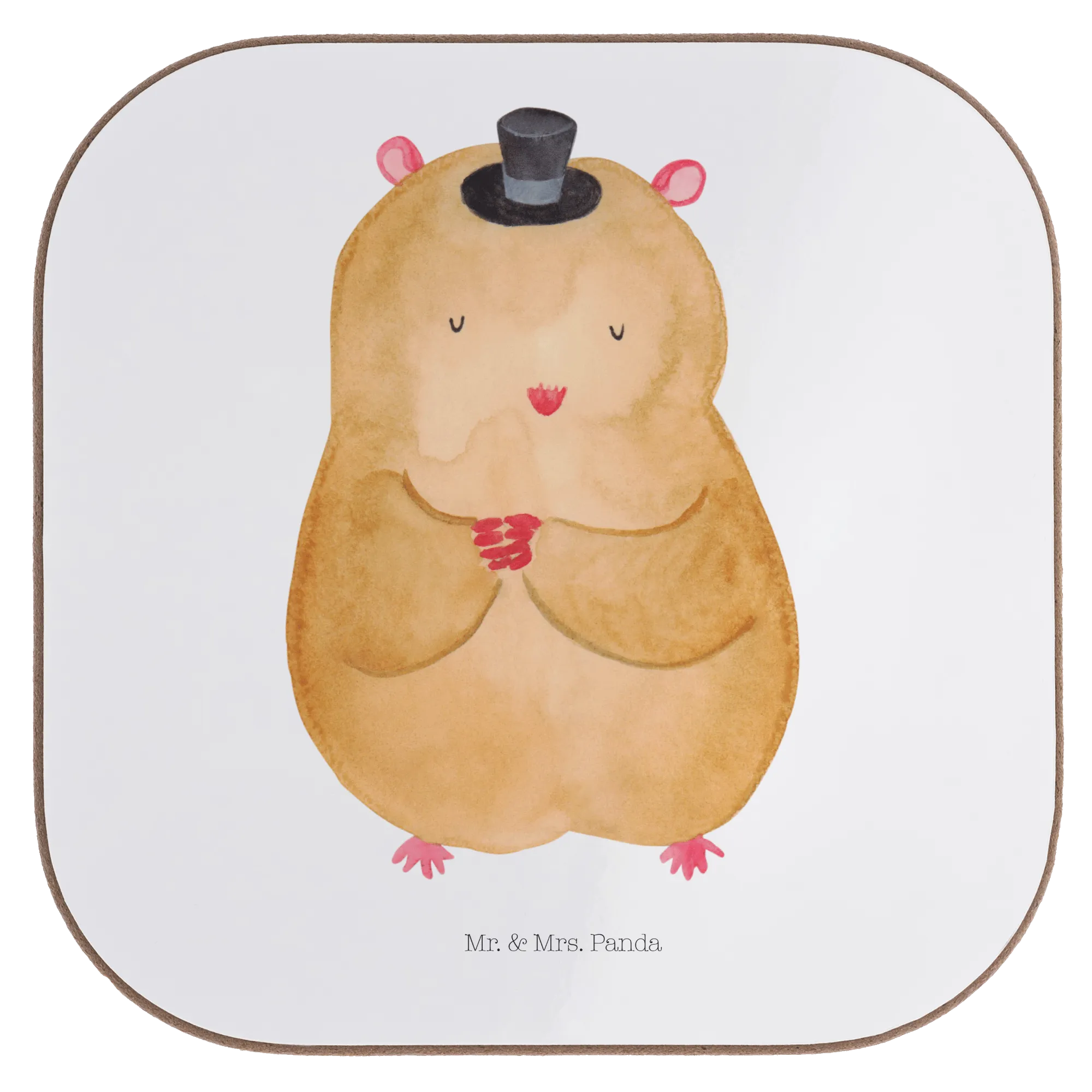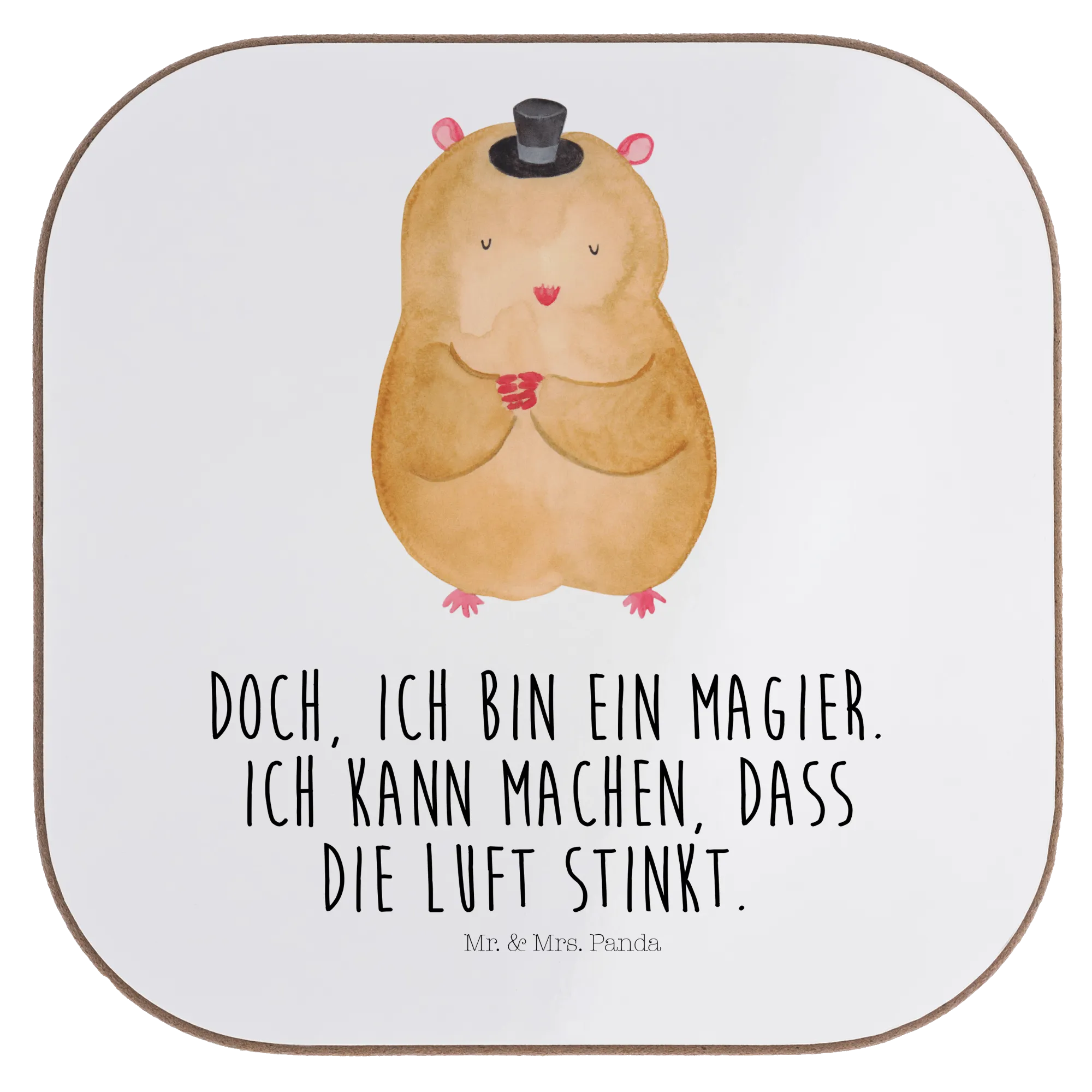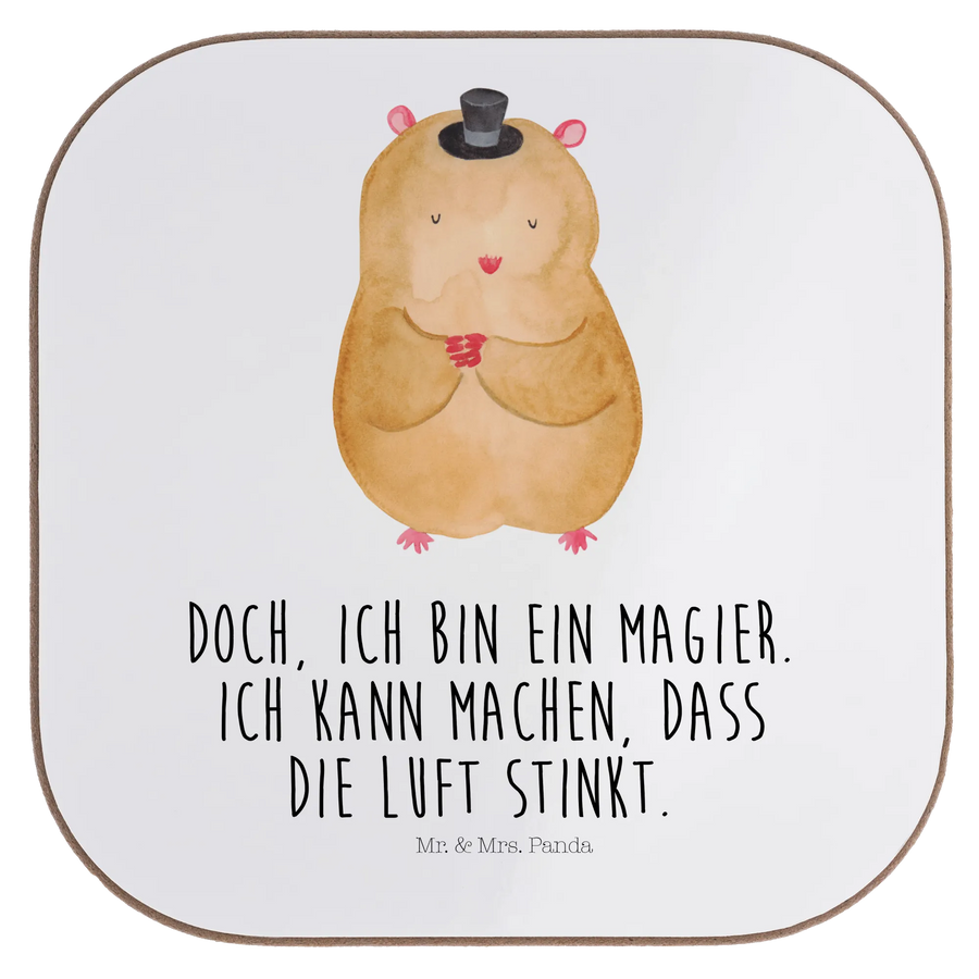 Square coaster hamster cap - with saying - White