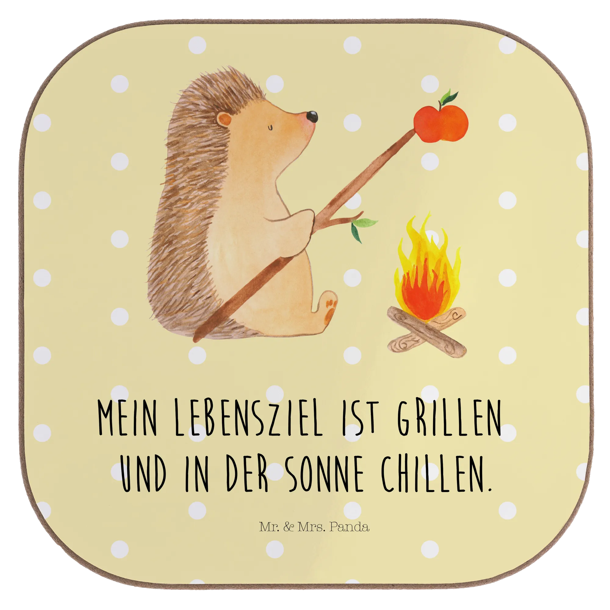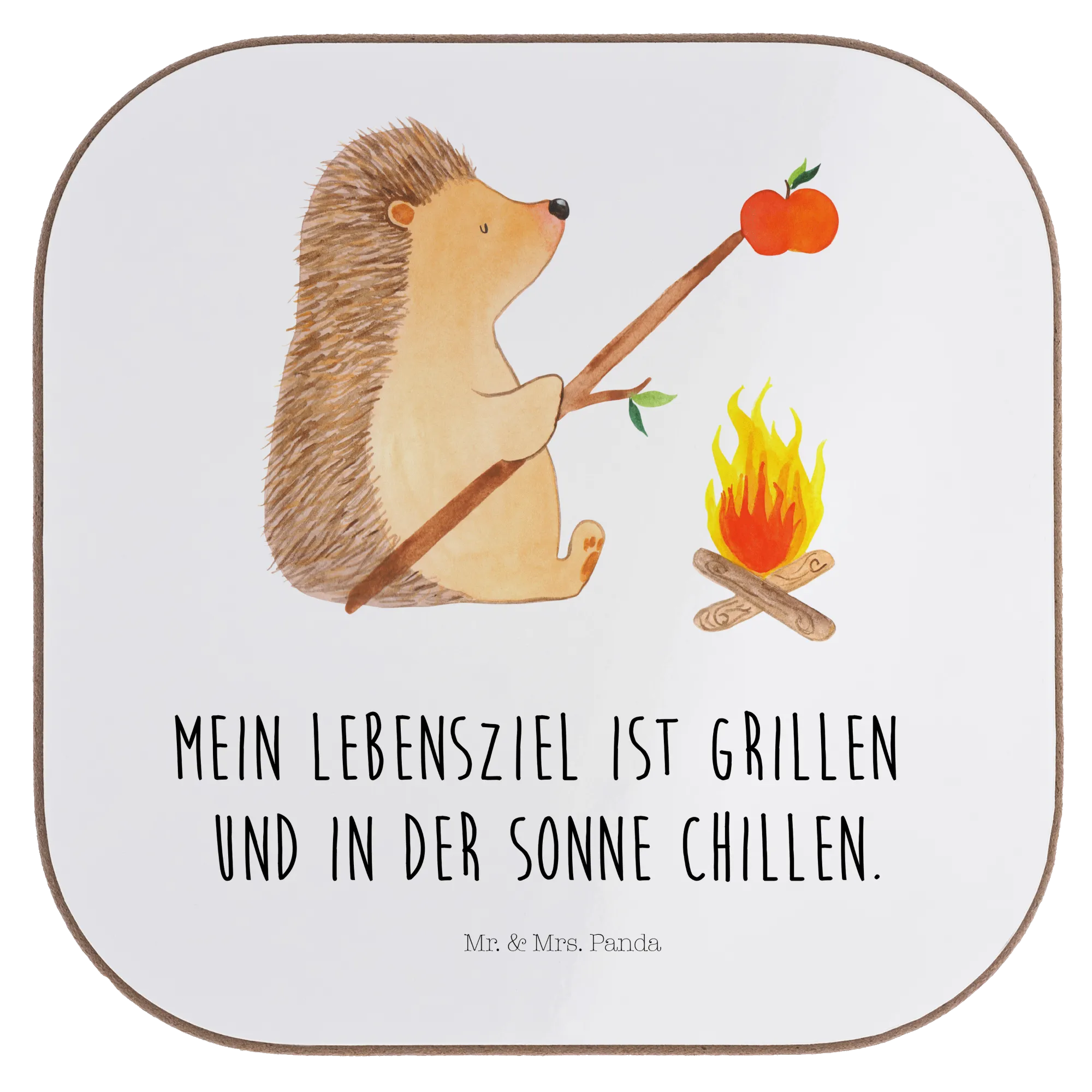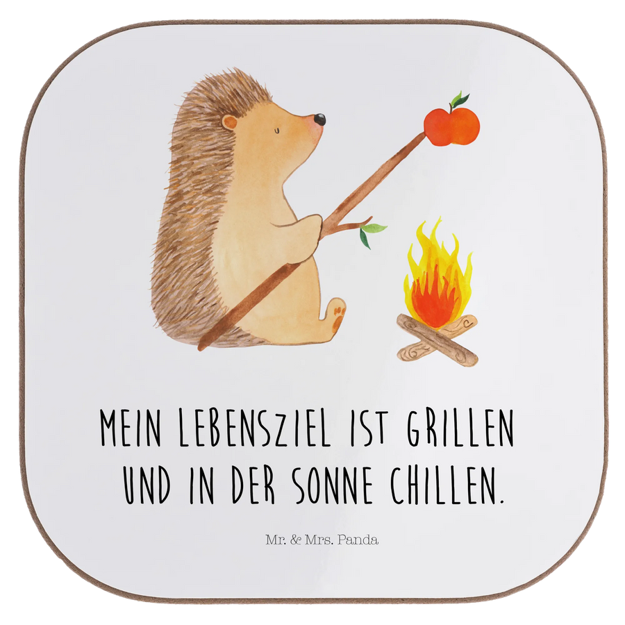 Square coaster Hedgehog grilling - with saying - White