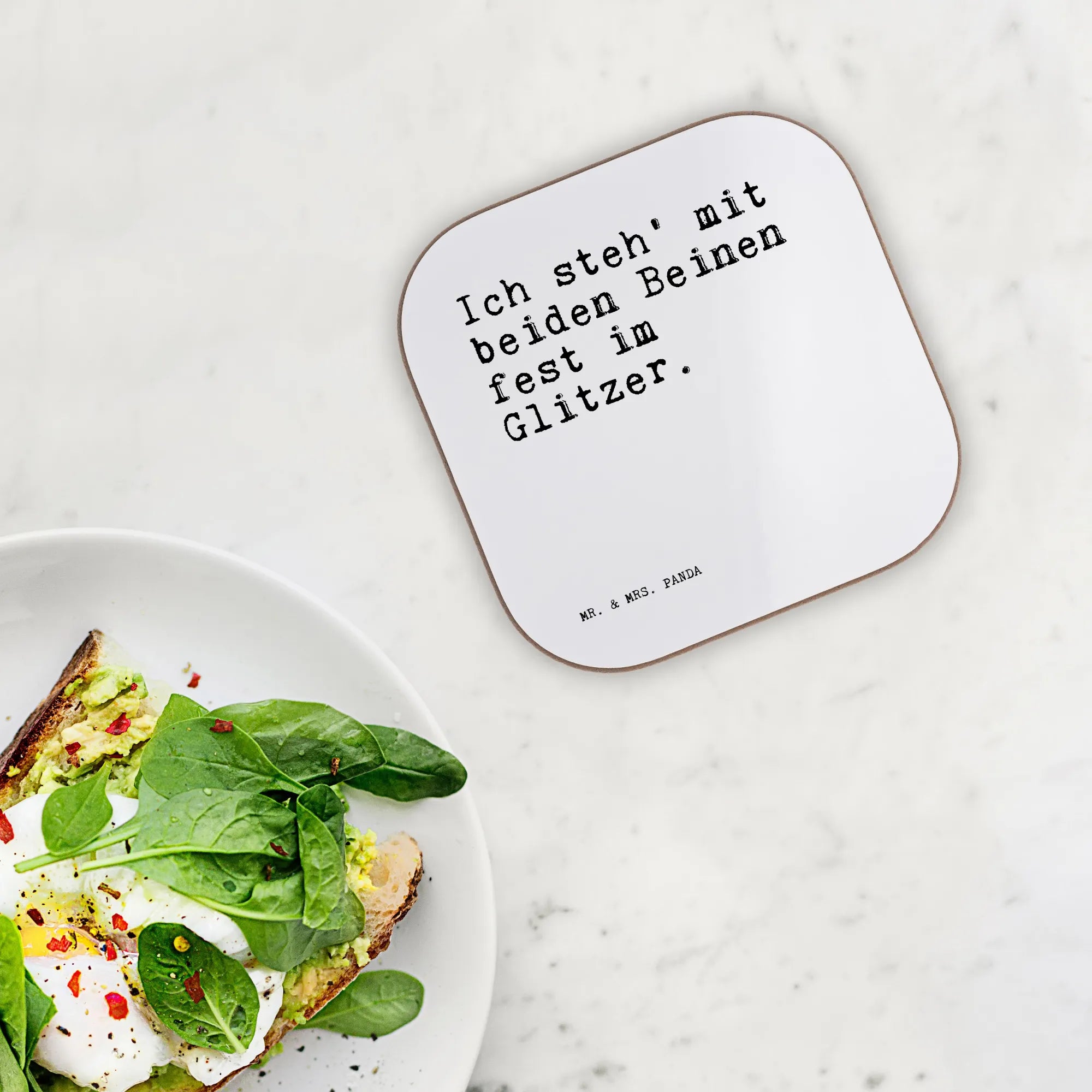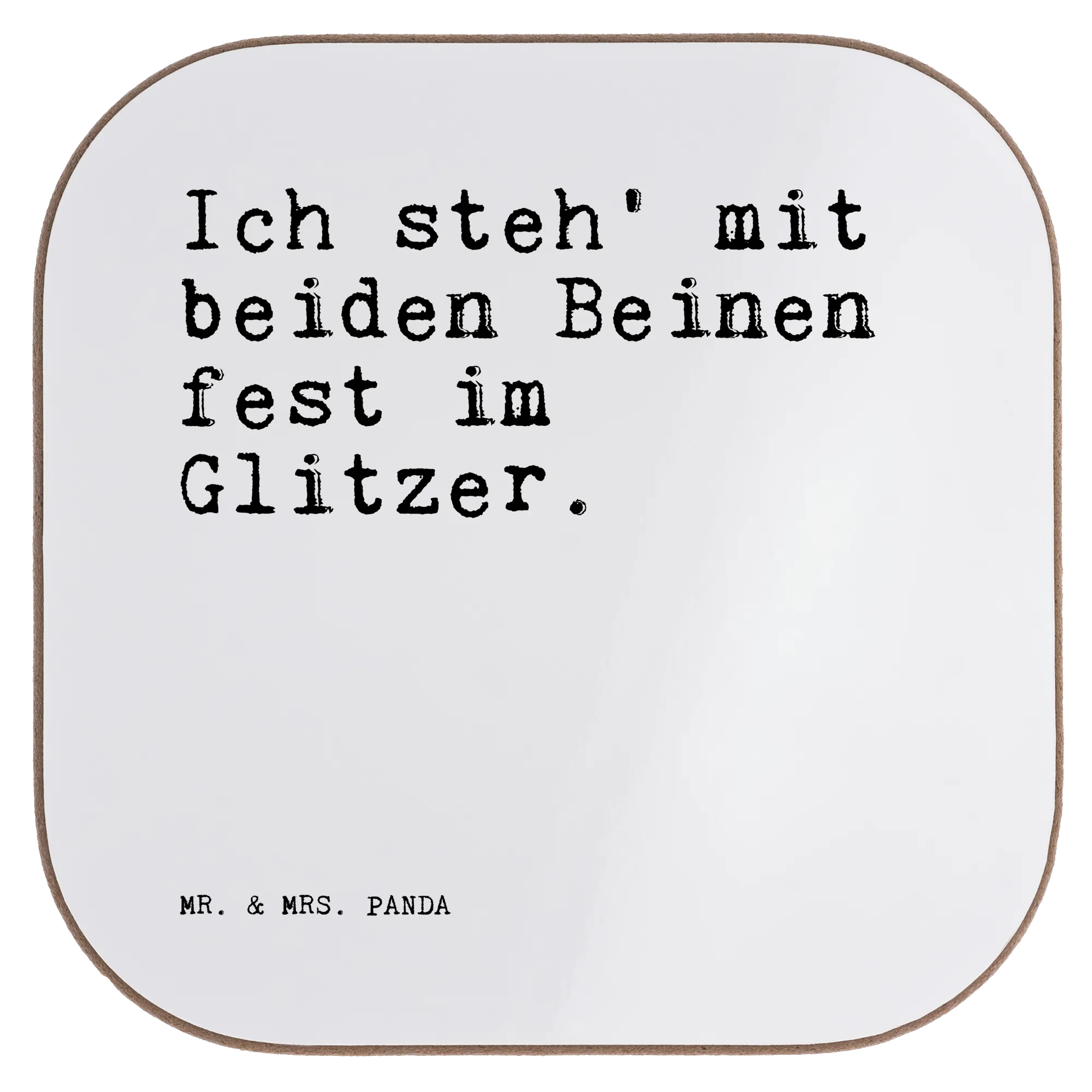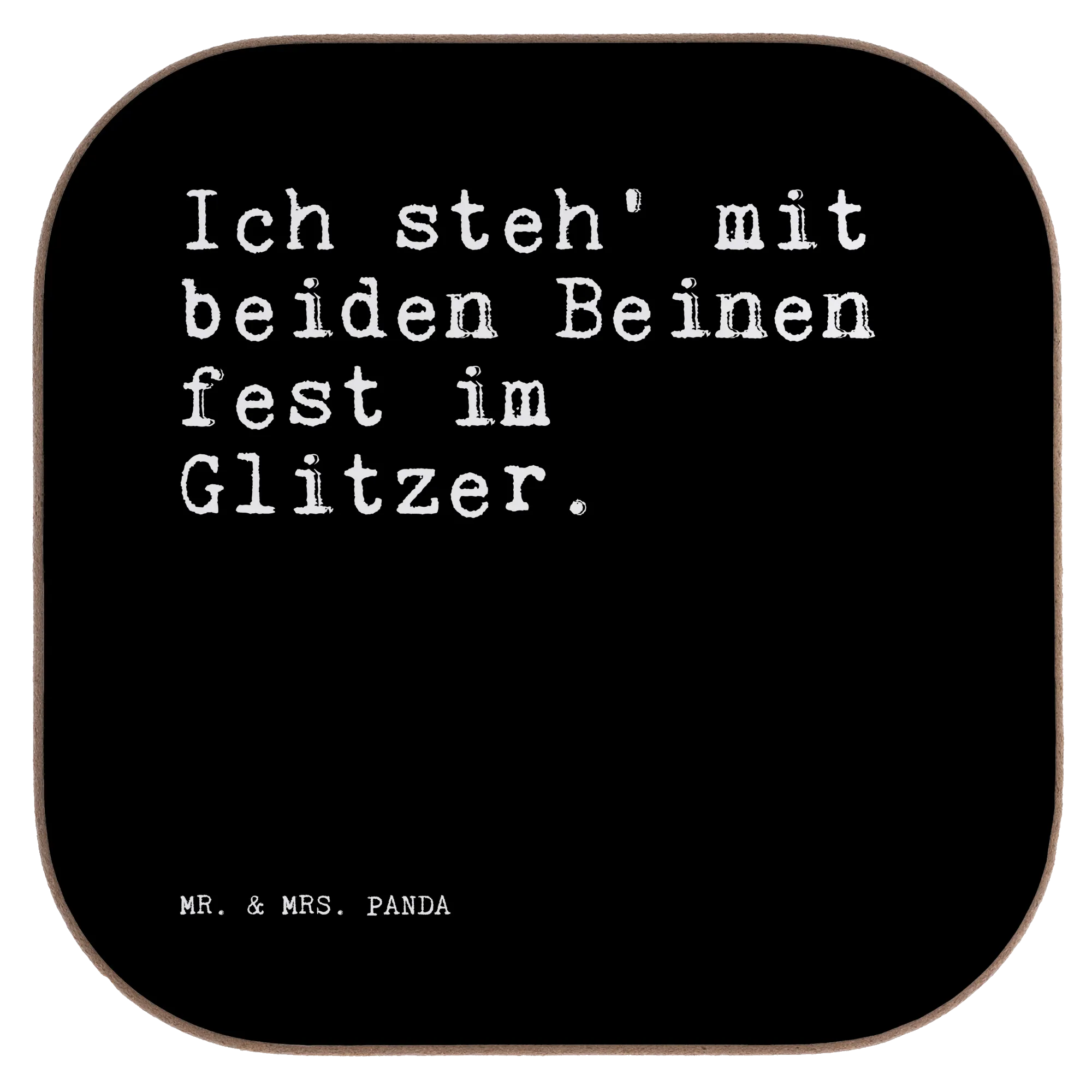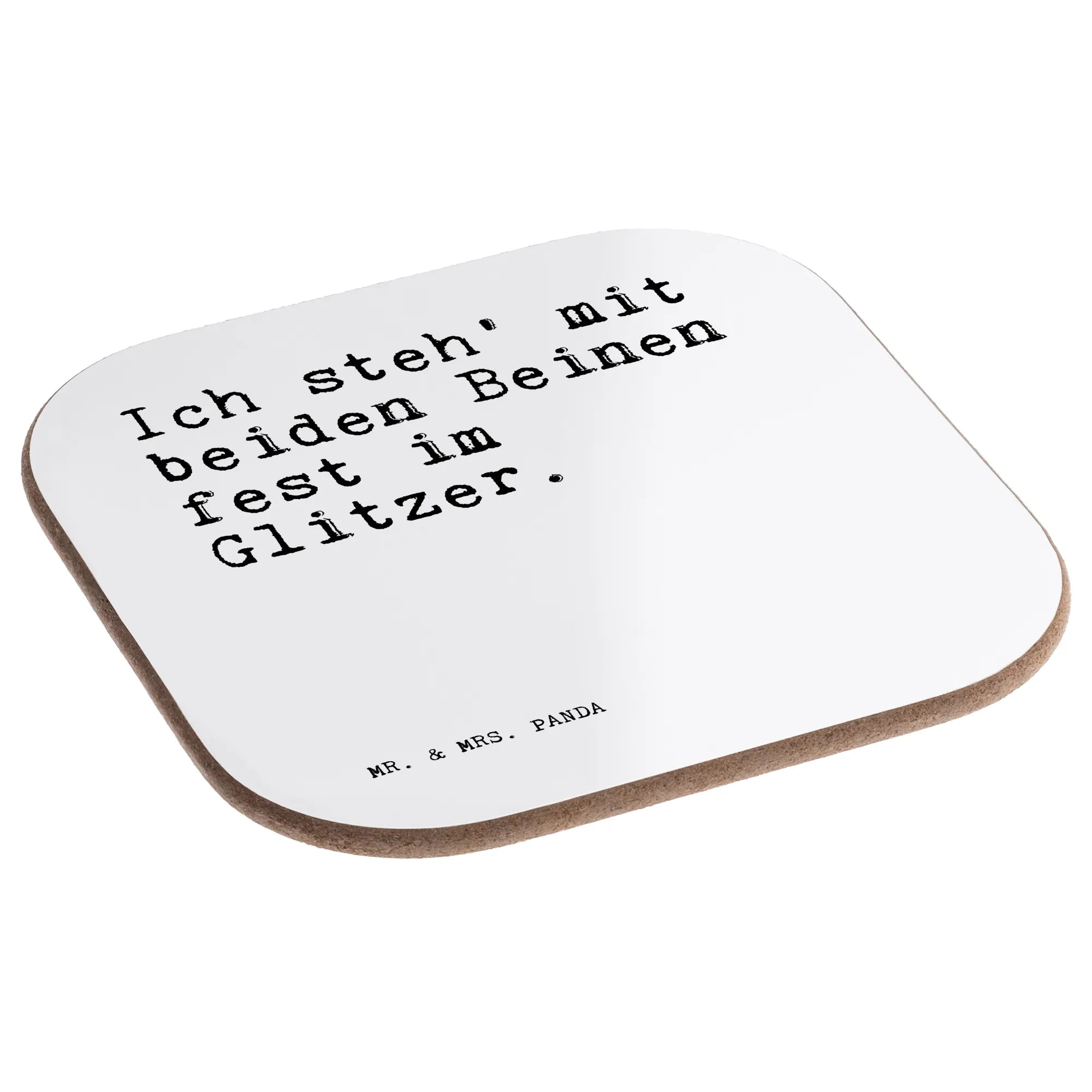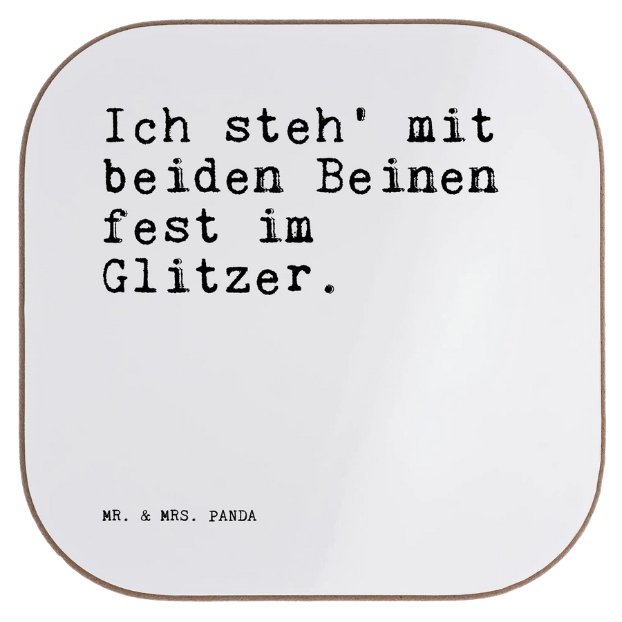 Ein wunderschöner quadratischer Untersetzer von Mr. & Mrs. Panda – bedruckt mit dem frechen Spruch „Ich steh' mit beiden Beinen fest im Glitzer.“ Dieser Untersetzer ist nicht nur hübsch, sondern auch unglaublich praktisch: Ob als Untersetzer Glas, Untersetzer Tasse oder Becheruntersetzer – er schützt deinen Tisch vor Abdrücken, Kratzern und extremen Temperaturen.