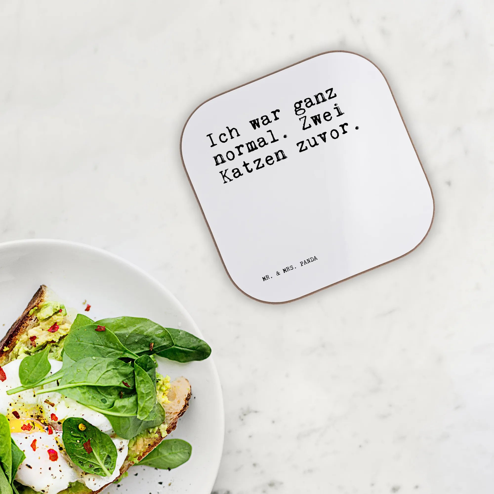 Highlights: Witziger Spruch „Ich war ganz normal. Zwei Katzen zuvor.“, tolles Untersetzer Design, ideal als Geschenk für Katzenliebhaber und ein praktischer Tischschutz für jeden Tag.