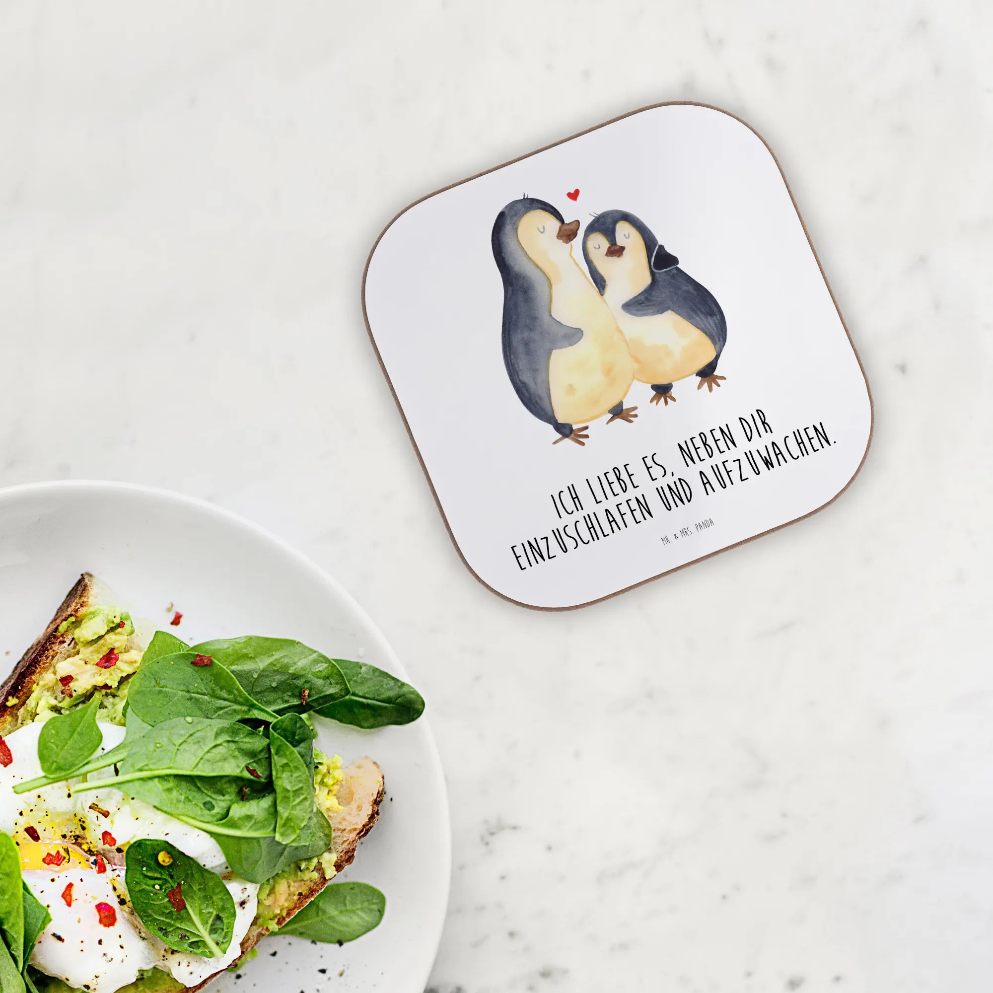 Imagine two adorable penguins, cozily snuggled against each other, showcasing their loving bond in an enchanting watercolor style. With their classic black and white colors, complemented by warm yellow bellies, these little lovebirds emanate joy and affection. Above them floats a vibrant red heart, a delightful reminder that love is all around. The saying 'I love falling asleep next to you and waking up next to you' perfectly encapsulates the warmth and companionship that blooms when two hearts engage in this beautiful dance called life. Every glance at this motif whispers a promise of love, making it a precious gift for anniversaries, Valentine’s Day, or just because. Whether it's for her or him, this charming artwork serves as a token of love and a personalized expression of togetherness. Each day spent together is another reason to celebrate this unbreakable bond.