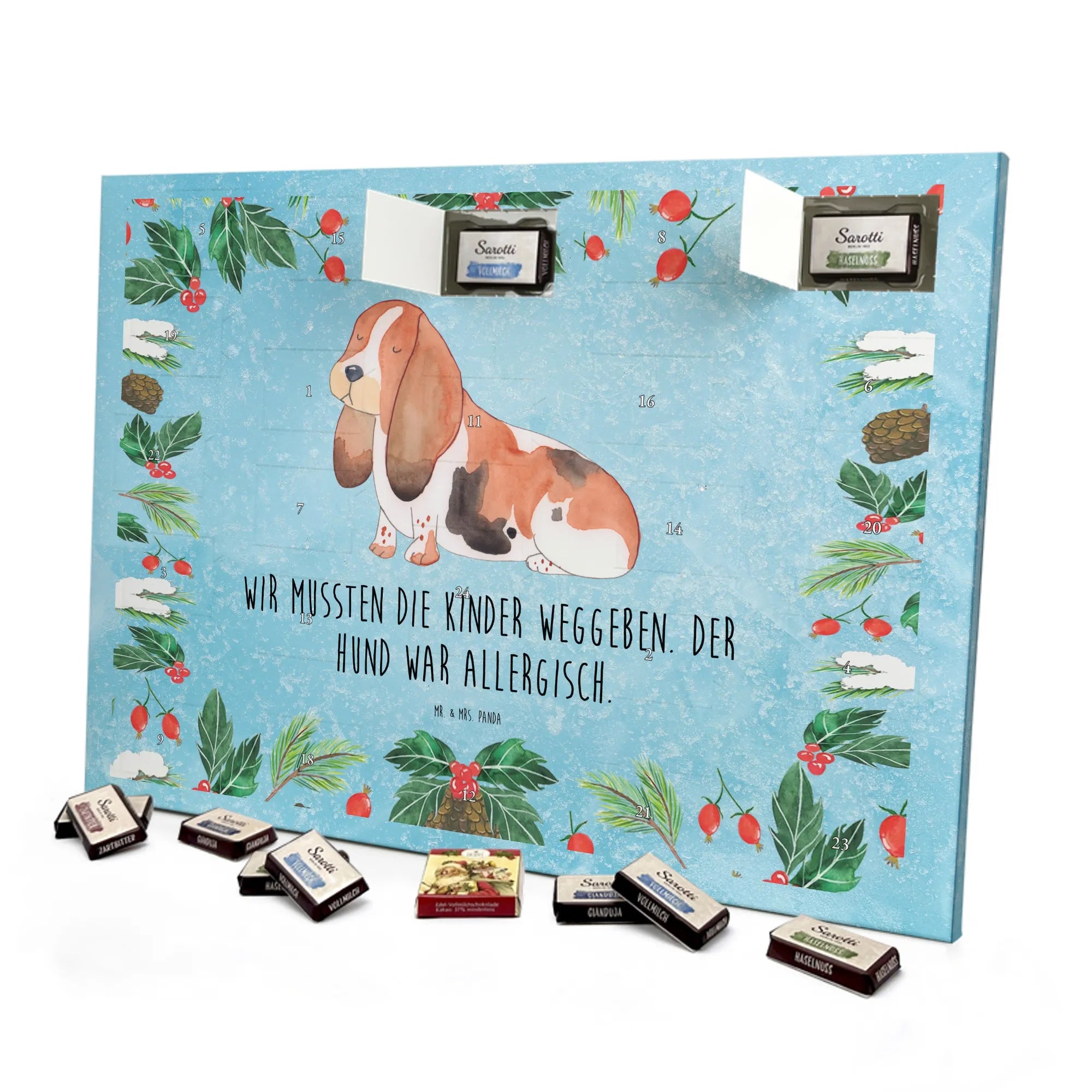 Chocolate advent calendar Dog Basset Hound - Classic - with saying - Ice Blue