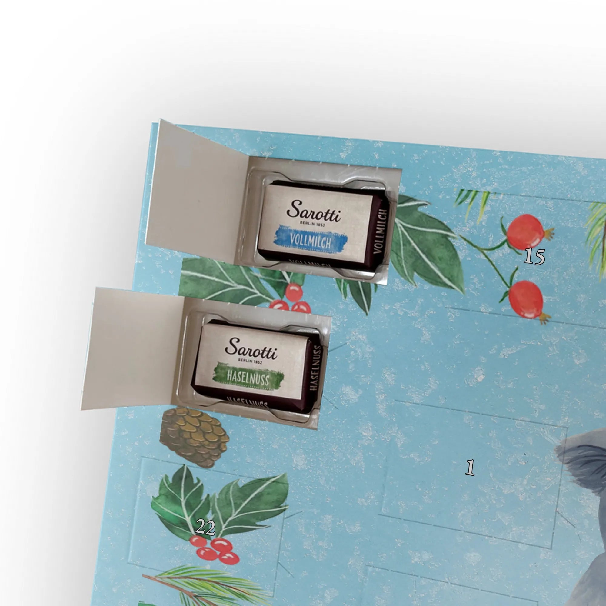 Chocolate advent calendar koala - Classic - with saying - Ice Blue