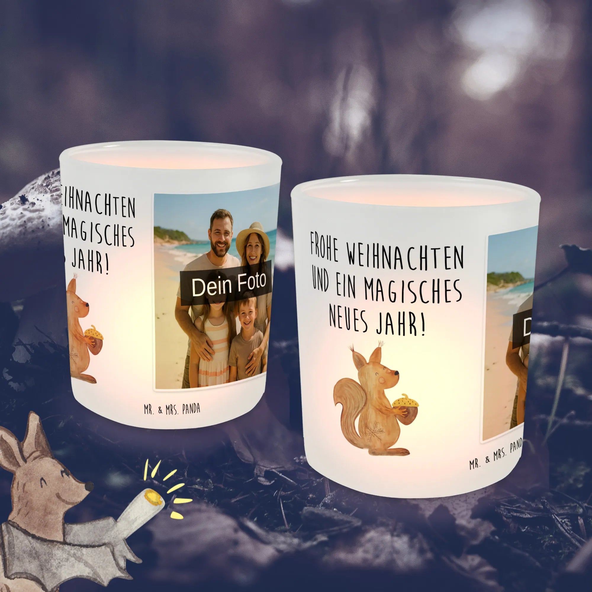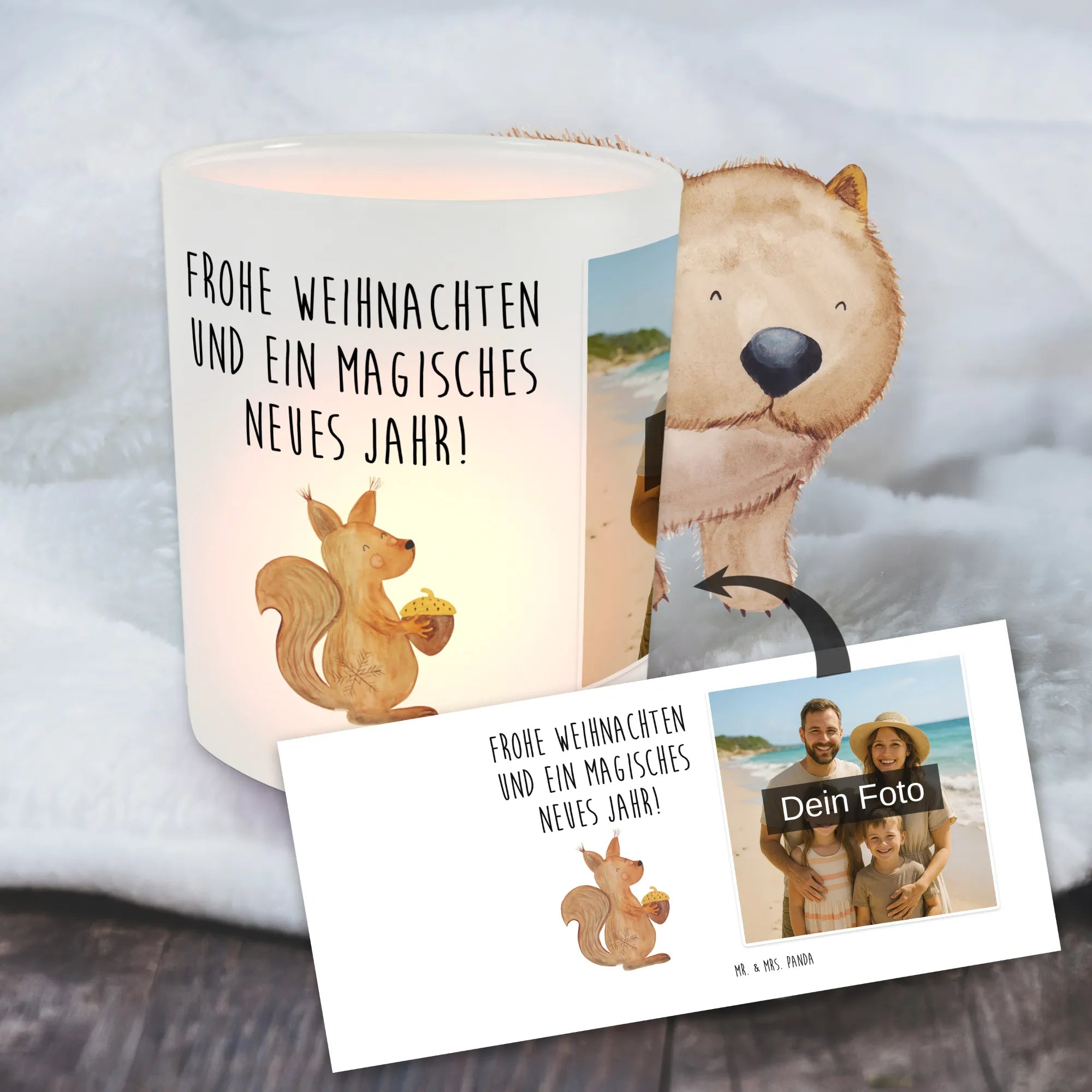 Personalisiertes Foto Windlicht Eichhörnchen Weihnachten