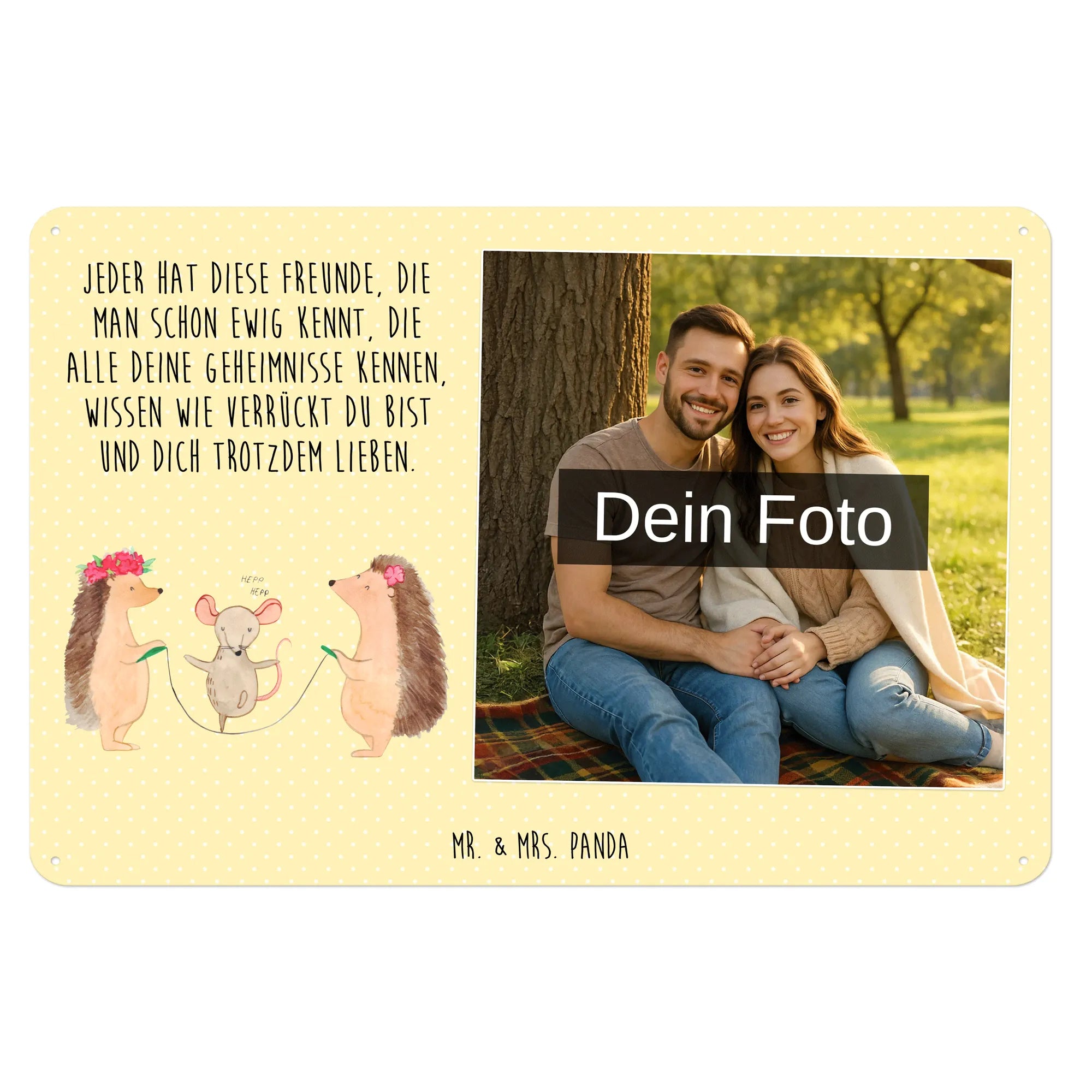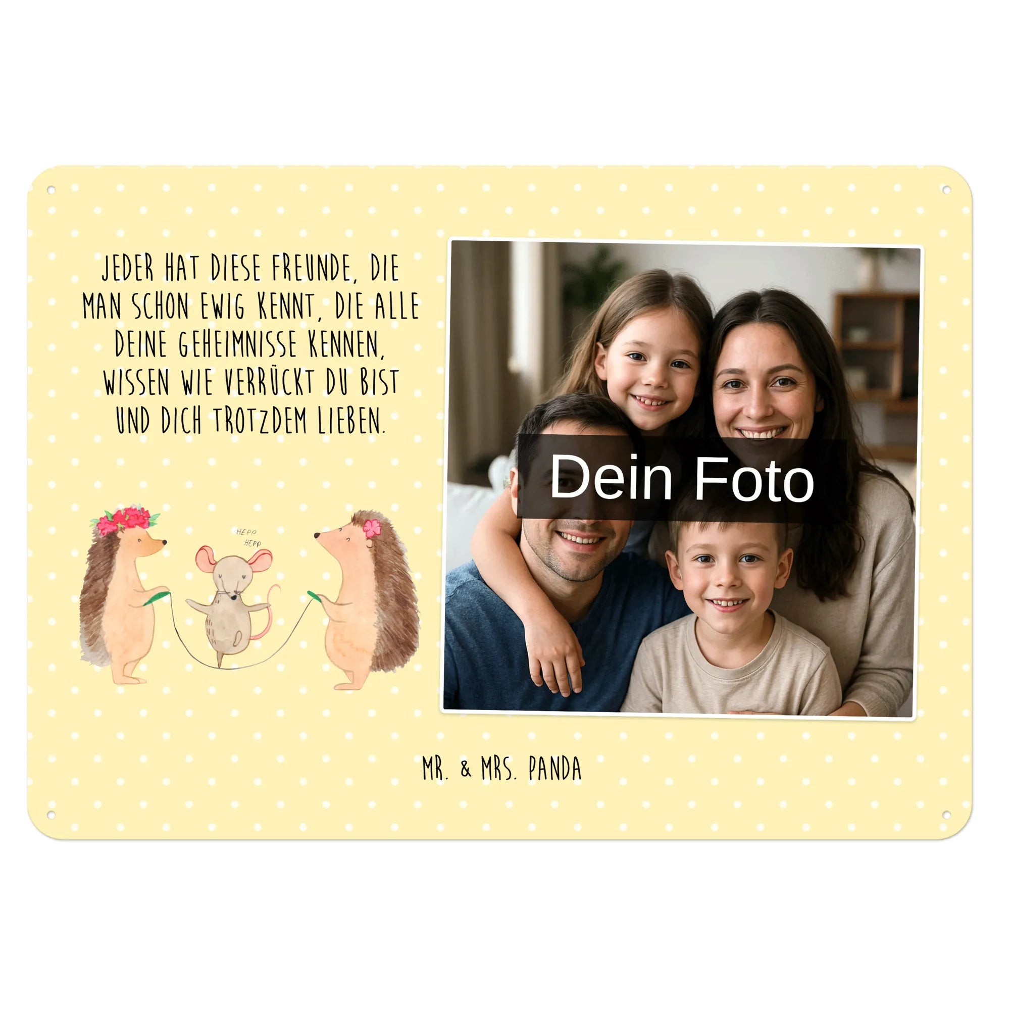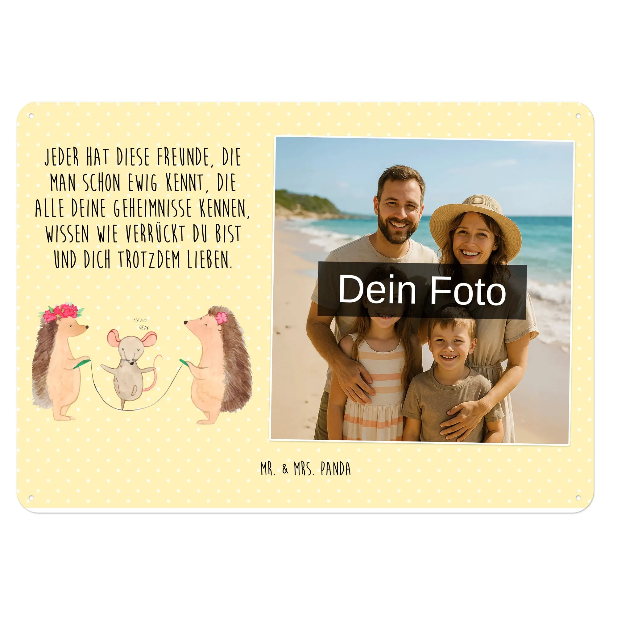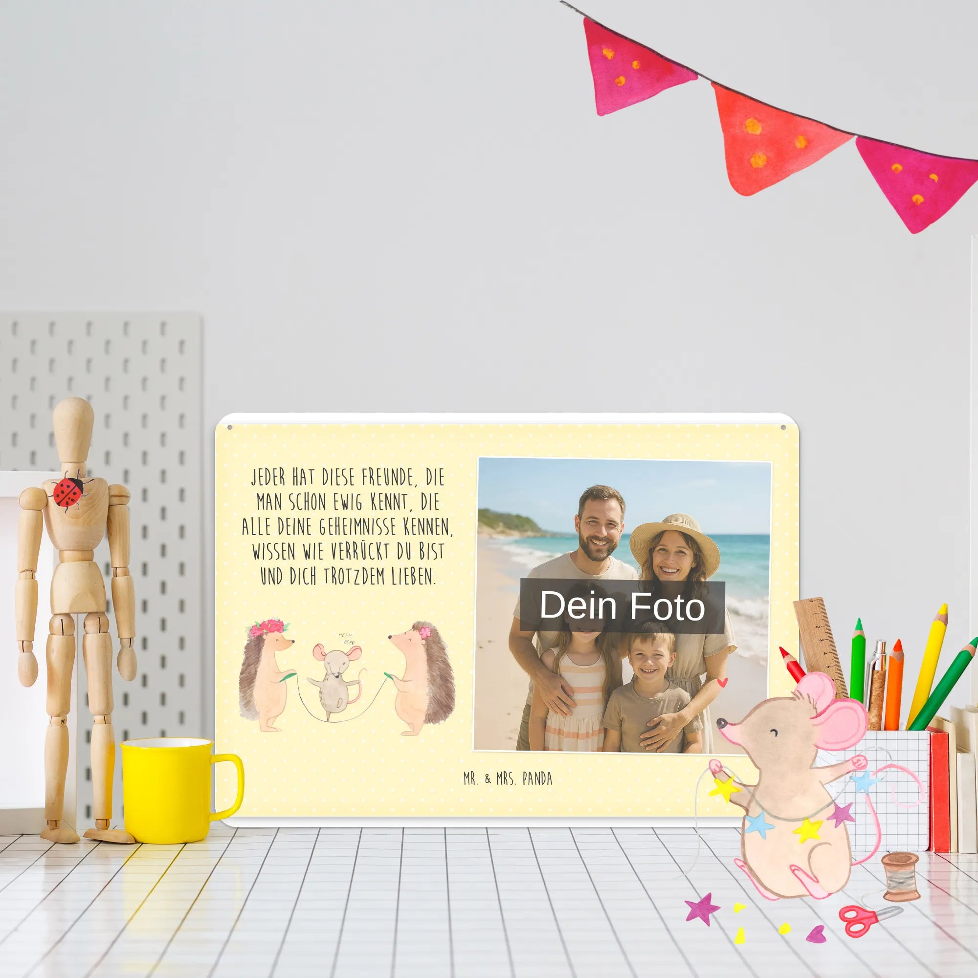 Personalisiertes Foto-Blechschild – ein liebevolles Unikat von Mr. & Mrs. Panda. Lass dein schönstes Foto zusammen mit unseren charmanten Sprüchen und Illustrationen auf hochwertigem Stahlblech verewigen. Damit das Ergebnis bezaubernd wird, achte auf eine ausreichend hohe Fotoauflösung und wähle einen passenden Bildausschnitt, damit Gesichter und Details optimal zur Geltung kommen. Verwende nur Bilder, für die du die Rechte besitzt. Das Schild ist aus edlem Stahlblech ohne Wölbung gefertigt, hat abgerundete Ecken und umgefalzte Kanten sowie eine seidenmatte Oberfläche. Maße: 70 mm x 297 mm x 210 mm. Der edle, langlebige Druck macht das Schild zur perfekten Innendekoration oder Geschenkidee. Vier Bohrungen sorgen für eine einfache und sichere Befestigung an Tür oder Wand im Innenbereich. Pflegeleicht: bei Bedarf mit einem feuchten Tuch abwischbar. Erhältlich in verschiedenen Größen, damit du genau die richtige Variante findest. Mit dem personalisierten Foto-Blechschild von Mr. & Mrs. Panda schenkst du ein Stück Herzenswärme, das lange Freude macht.