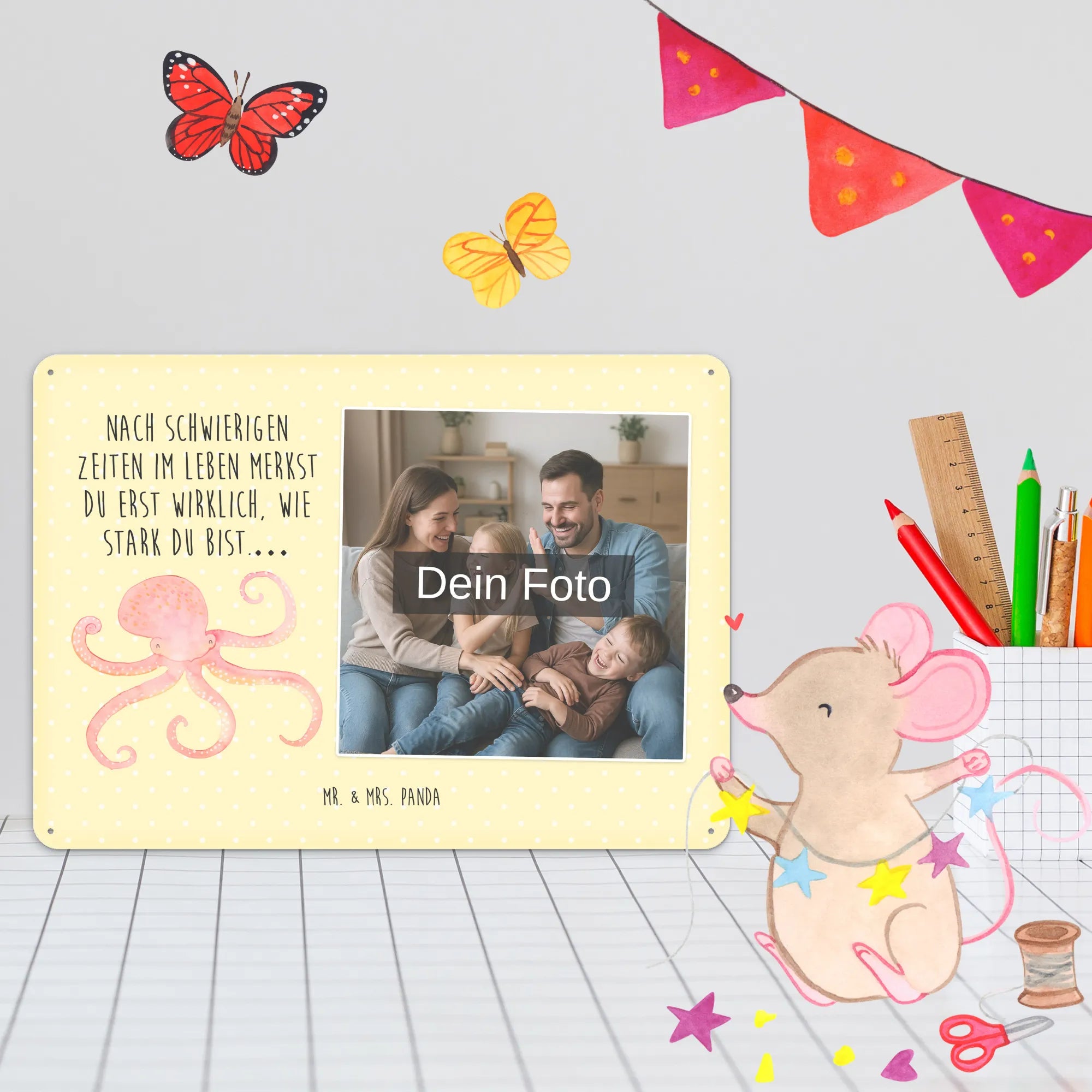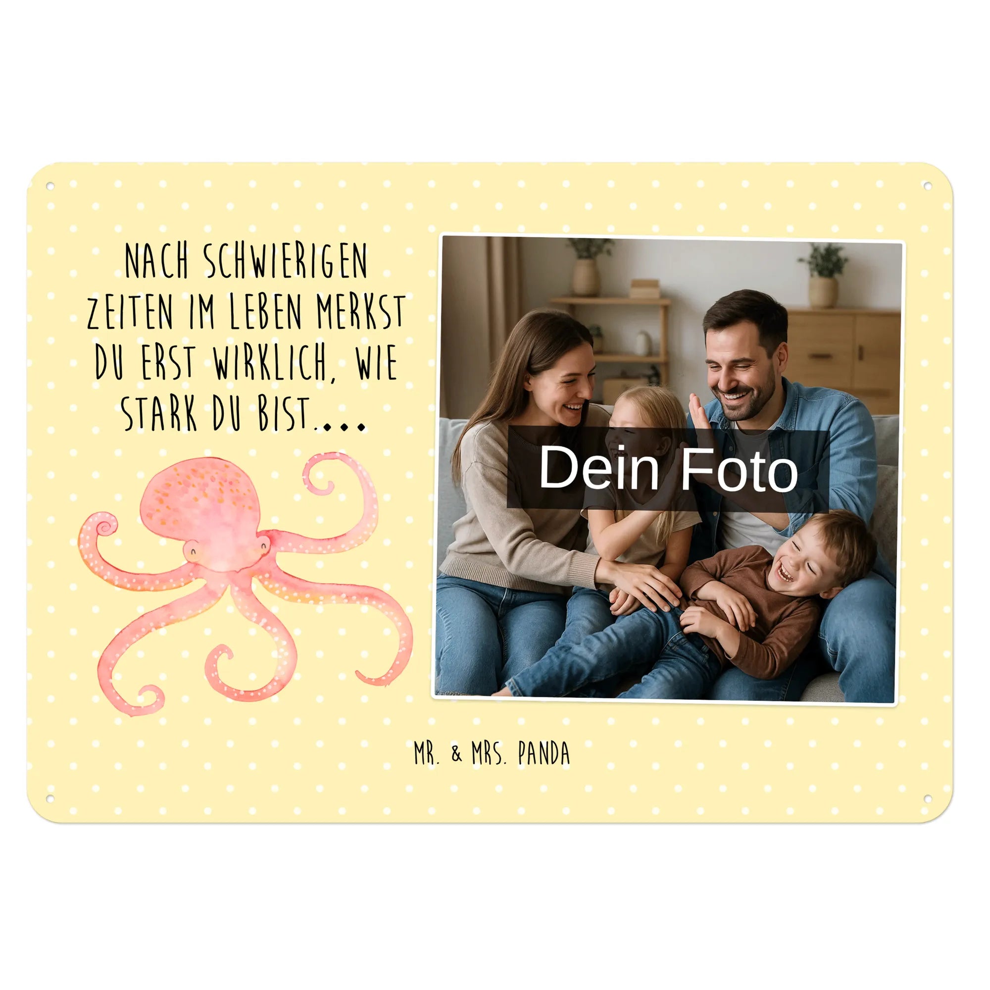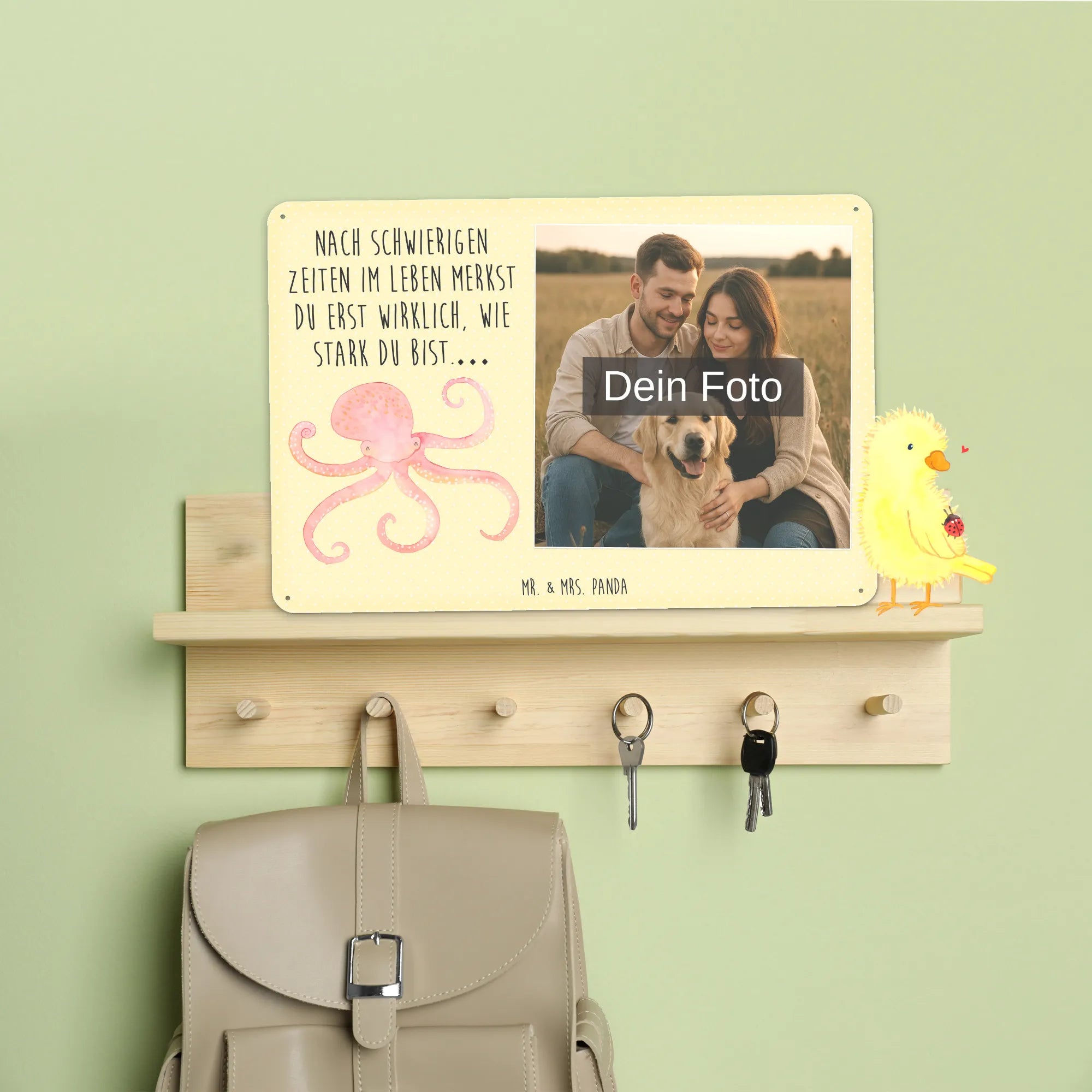Unser Foto Blechschild personalisiert von Mr. & Mrs. Panda macht jedes Zuhause ein Stückchen gemütlicher. Bedruckt mit liebevollen Motiven und kurzen Sprüchen, kannst du dein eigenes Foto hinzufügen und so ein individuelles Deko-Highlight schaffen. Hergestellt aus edlem Stahlblech ohne Wölbung, mit seidenmatter Oberfläche und langlebigem Druck. Maße: 70 mm x 420 mm x 297 mm. Das Schild verfügt über vier Bohrungen zur sicheren Befestigung, abgerundete Ecken und umgefalzte Kanten für ein sauberes Finish. Ideal für Innenräume wie Flur, Wohn- oder Arbeitszimmer und perfekt als Geschenkidee. Achte beim Hochladen deines Fotos auf hohe Auflösung und den richtigen Bildausschnitt sowie auf vorhandene Bildrechte. Zur Reinigung reicht ein feuchtes Tuch. Das Blechschild ist in verschiedenen Größen erhältlich, sodass du die passende Variante für deine Tür oder Wand findest. Ob als persönliche Begrüßung an der Haustür oder als dekorative Erinnerung im Wohnzimmer – dieses Foto Blechschild personalisiert verbindet langlebige Qualität mit dem unverwechselbaren Charme von Mr. & Mrs. Panda.