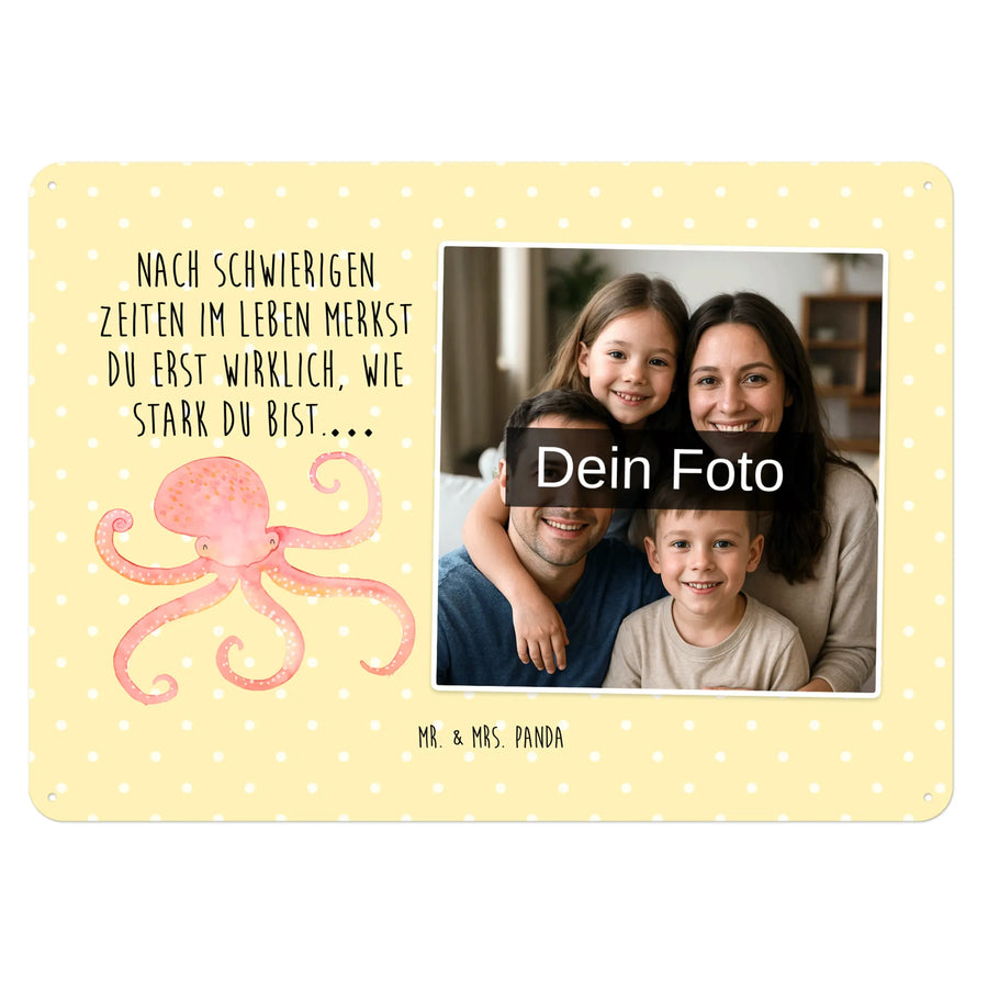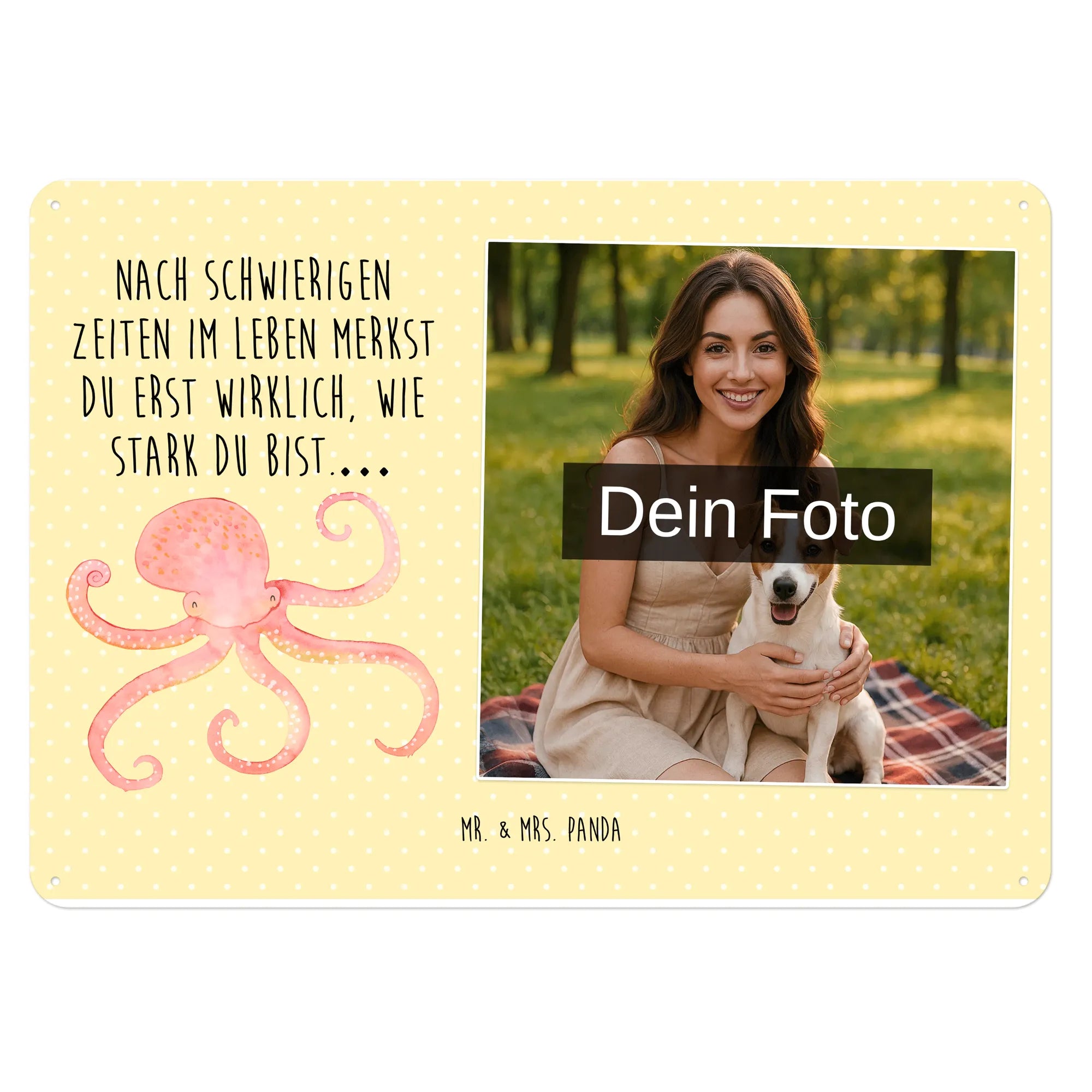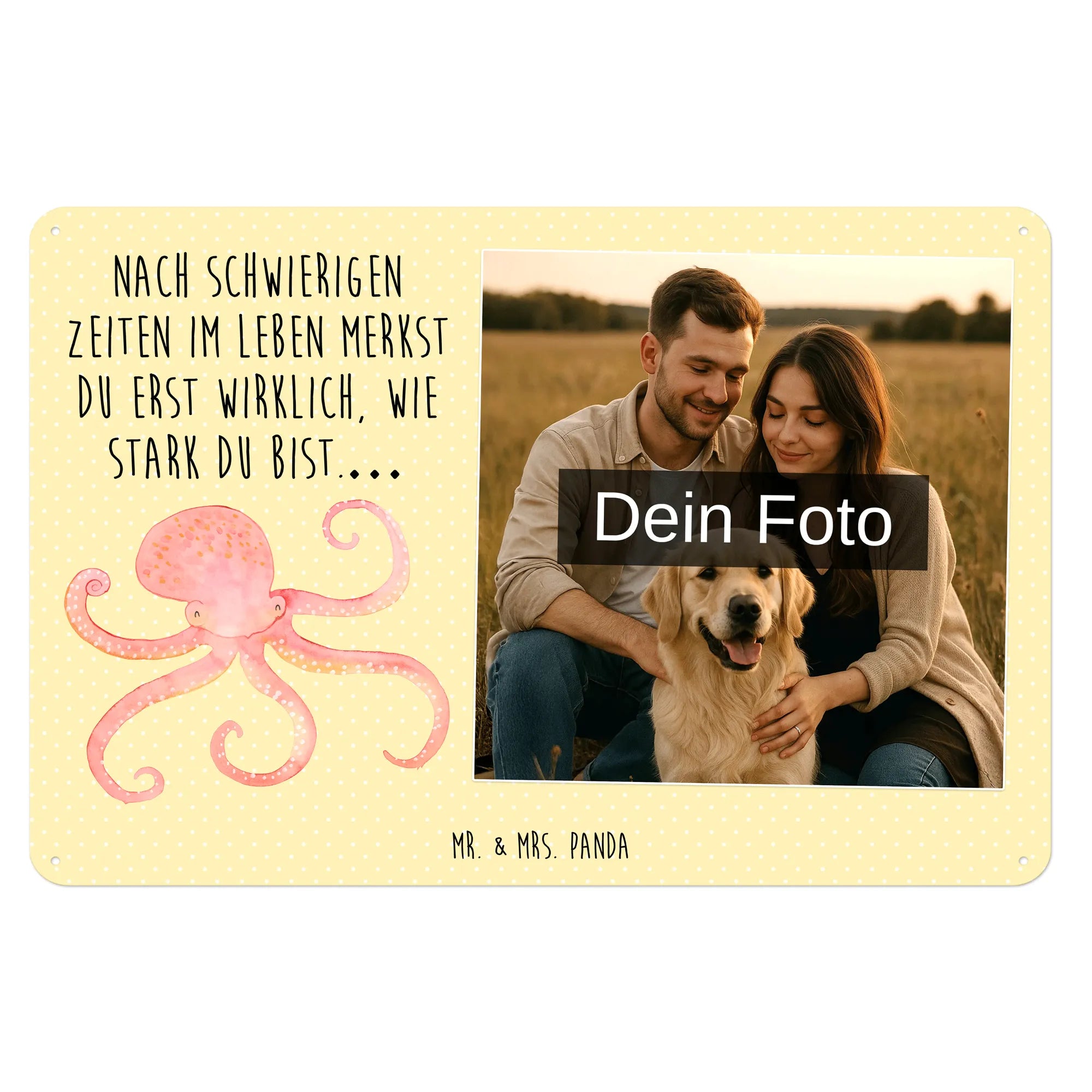 Unser Foto Blechschild personalisiert von Mr. & Mrs. Panda macht jedes Zuhause ein Stückchen gemütlicher. Bedruckt mit liebevollen Motiven und kurzen Sprüchen, kannst du dein eigenes Foto hinzufügen und so ein individuelles Deko-Highlight schaffen. Hergestellt aus edlem Stahlblech ohne Wölbung, mit seidenmatter Oberfläche und langlebigem Druck. Maße: 70 mm x 420 mm x 297 mm. Das Schild verfügt über vier Bohrungen zur sicheren Befestigung, abgerundete Ecken und umgefalzte Kanten für ein sauberes Finish. Ideal für Innenräume wie Flur, Wohn- oder Arbeitszimmer und perfekt als Geschenkidee. Achte beim Hochladen deines Fotos auf hohe Auflösung und den richtigen Bildausschnitt sowie auf vorhandene Bildrechte. Zur Reinigung reicht ein feuchtes Tuch. Das Blechschild ist in verschiedenen Größen erhältlich, sodass du die passende Variante für deine Tür oder Wand findest. Ob als persönliche Begrüßung an der Haustür oder als dekorative Erinnerung im Wohnzimmer – dieses Foto Blechschild personalisiert verbindet langlebige Qualität mit dem unverwechselbaren Charme von Mr. & Mrs. Panda.