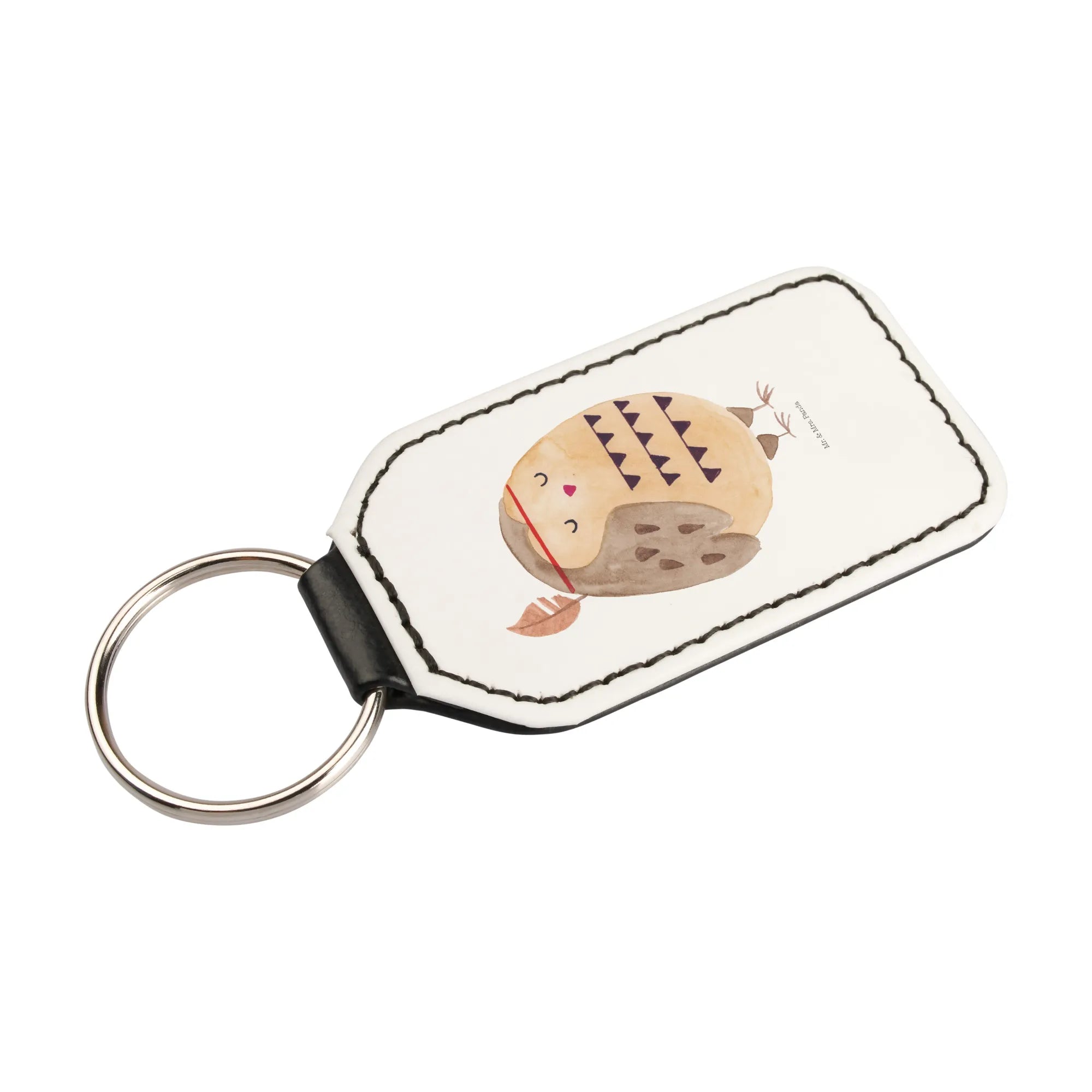 Mr. & Mrs. Panda – Rechteckiger Schlüsselanhänger „Eule Federschmuck“