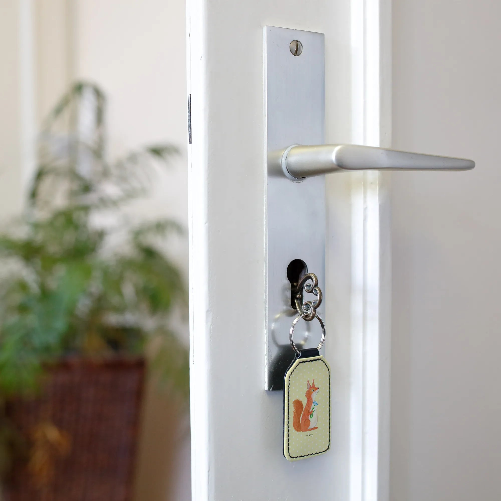 Rectangular key ring Squirrel flower - Yellow Pastel