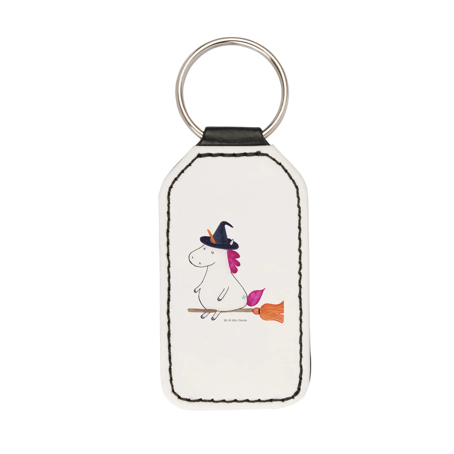 Crafted with care, this premium kunstleder key ring is designed to endure, keeping your keys safe while showcasing a whimsical unicorn sporting a witch hat and riding on a broomstick, embracing the magical unpredictability of life.