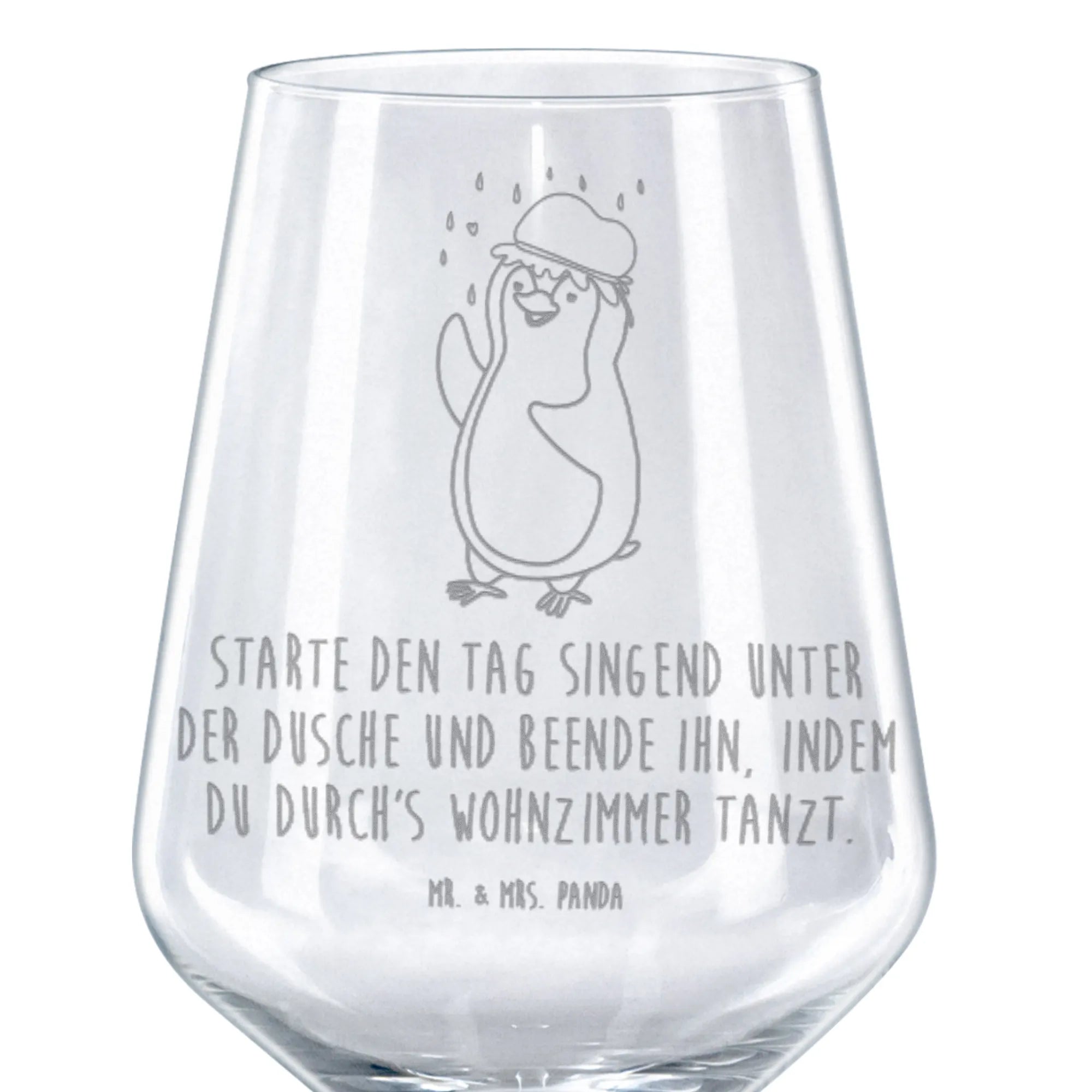 Glas Rotwein Pinguin Duschen - mit Spruch