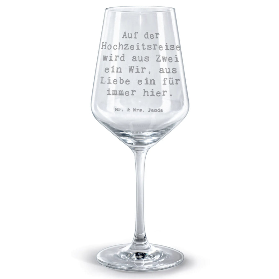 Red Wine Glass Saying Auf der Hochzeitsreise wird aus Zwei ein Wir, aus Liebe ein für immer hier.