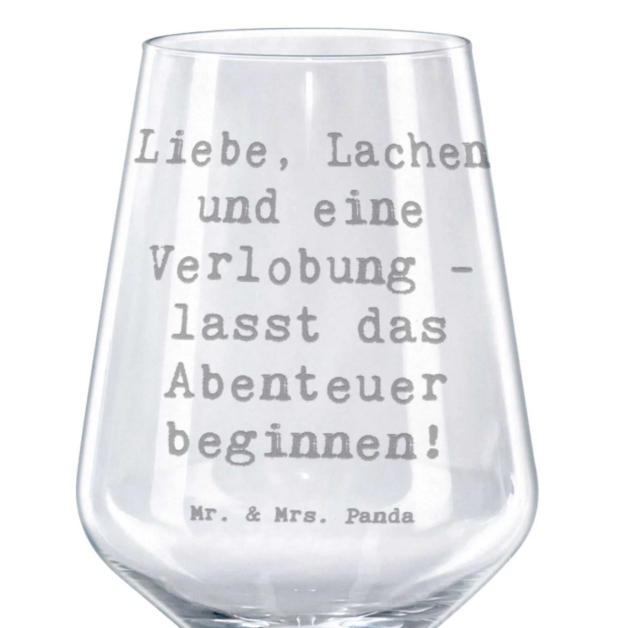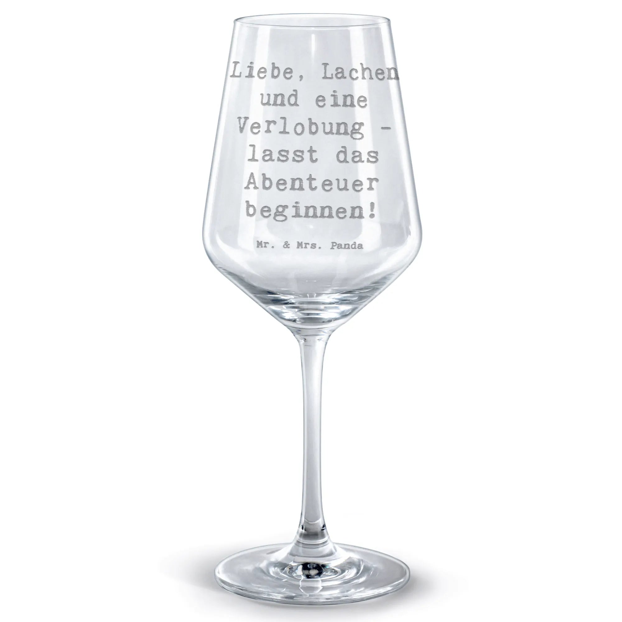 Red Wine Glass Saying Liebe, Lachen und eine Verlobung - lasst das Abenteuer beginnen!