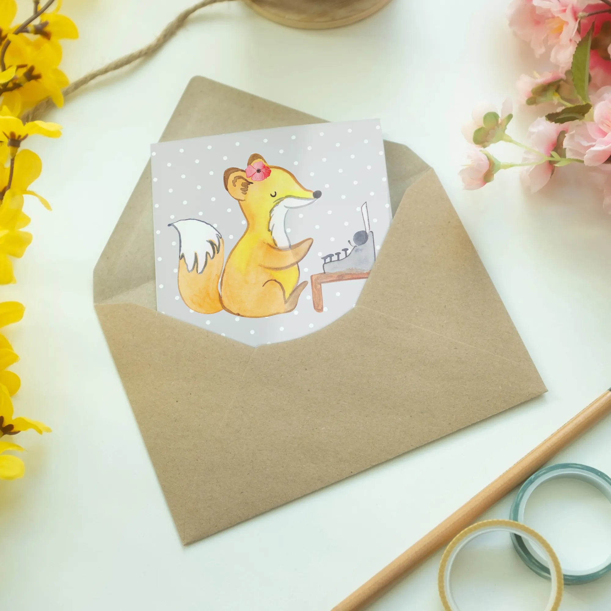 Meet our delightful fox, a symbol of the best colleague in the world. With a charming flower tucked behind its ear and the determination of a true co-worker, this motif captures the spirit of camaraderie in the workplace. Whether it's a simple thank you or a heartfelt farewell gift, this playful fox sitting before a classic typewriter embodies the dedication and joy of working together. It reminds us to celebrate the special bonds we create with our colleagues, especially when life takes them on new adventures. The saying, 'Best Colleague in the World,' highlights the importance of appreciating those who support us through thick and thin, making every workday a joyful experience.