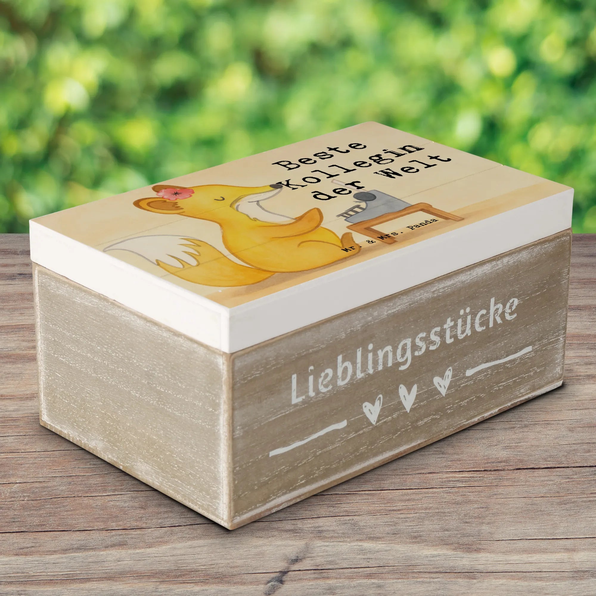 Holzkiste „Fuchs – Beste Kollegin der Welt“ von Mr. & Mrs. Panda