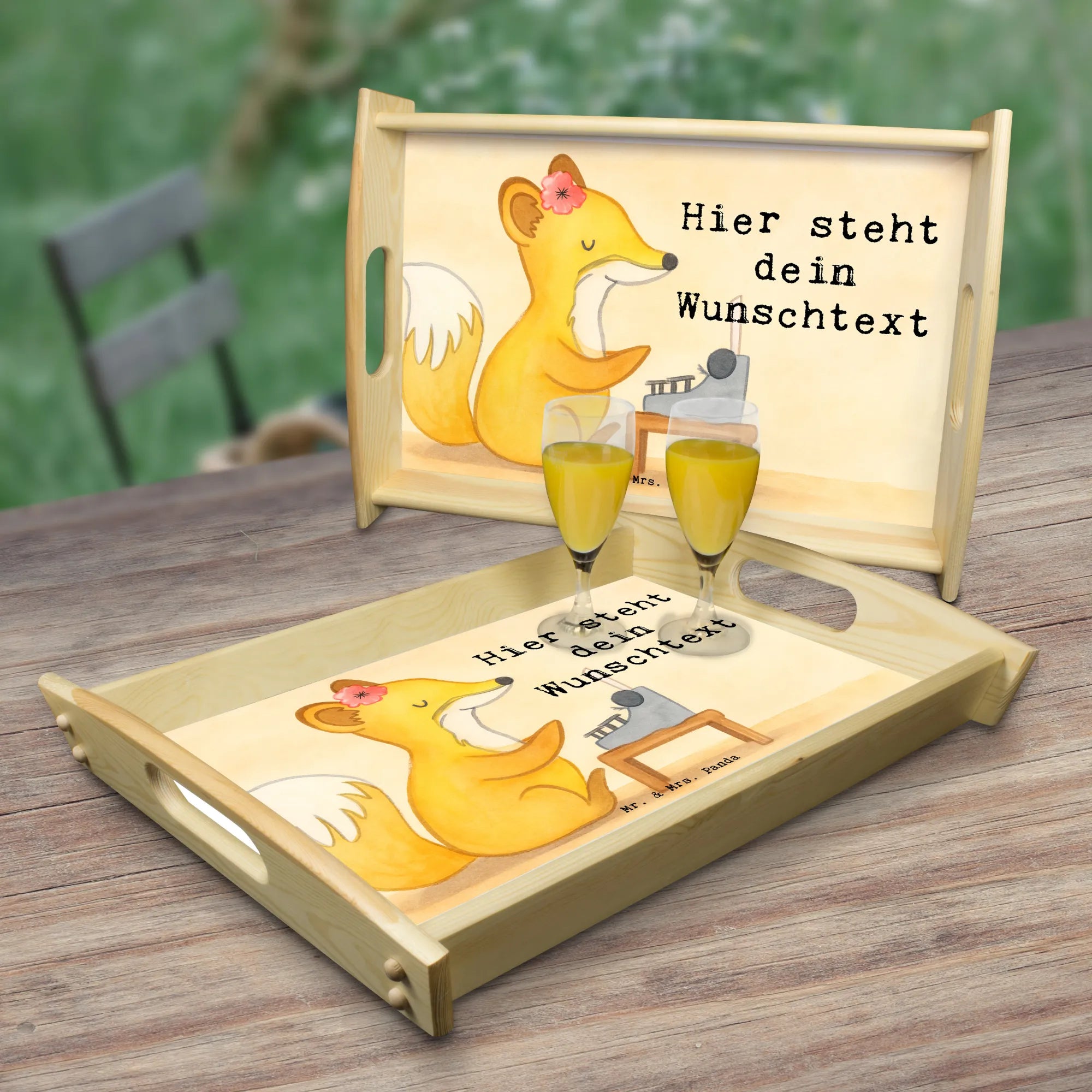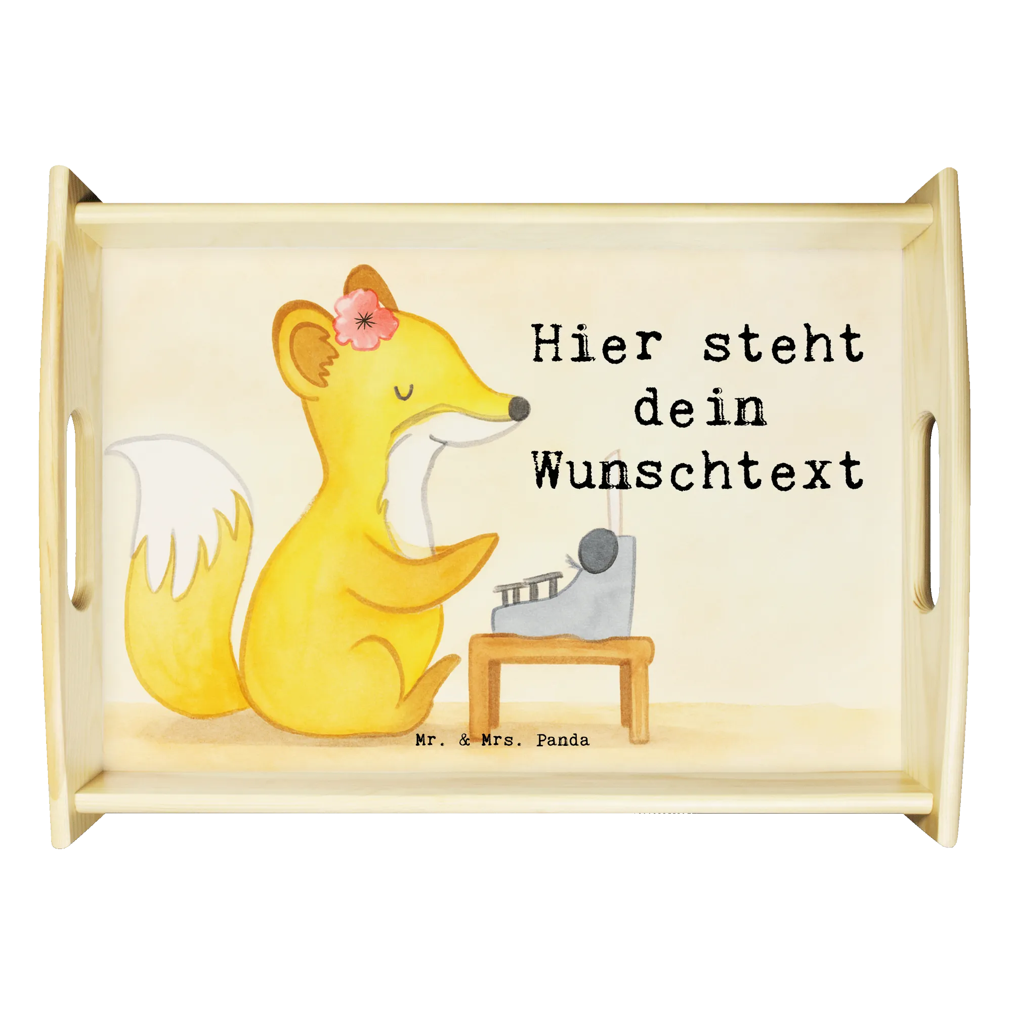 Introducing our stunning and unique personalized serving tray from Mr. & Mrs. Panda! This exquisite tray measures 480 mm x 365 mm x 65 mm, making it the perfect size for serving breakfast in bed or enjoying snacks on the sofa. Made from glazed real wood, it features beautiful designs and quotes that add a touch of charm to your home. Personalize it with your special text or name, creating a truly one-of-a-kind piece. The tray is not just pretty, but also practical, with side handles for easy carrying and anti-slip pads on the bottom to keep it sturdy. The scratch-resistant and durable surface ensures it stays looking great for years to come. Easy to clean with a damp cloth and a bit of dish soap—just avoid soaking it! Due to the careful crafting process, please allow extra time for production. Make every moment special with this lovely tray, which also makes a thoughtful gift for friends or family!