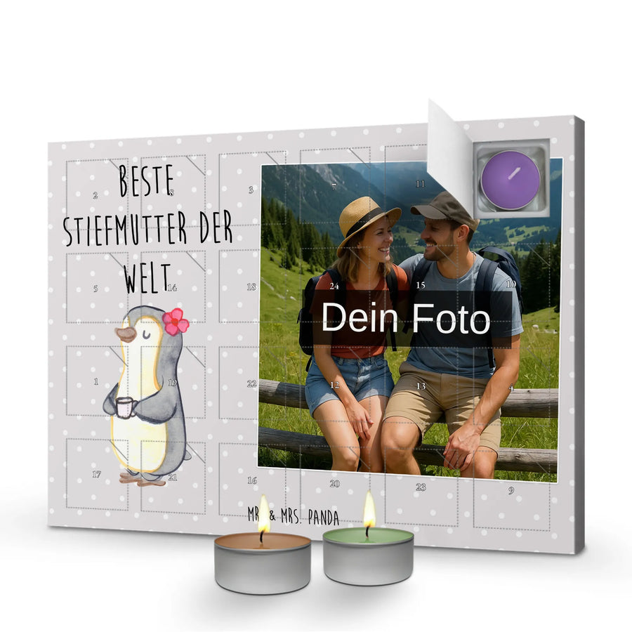 Du suchst das perfekte Geschenk für Deine Stiefmama? Dann ist der personalisierte Duftkerzen Foto Adventskalender mit dem süßen Pinguin "Beste Stiefmutter der Welt" genau das Richtige!
