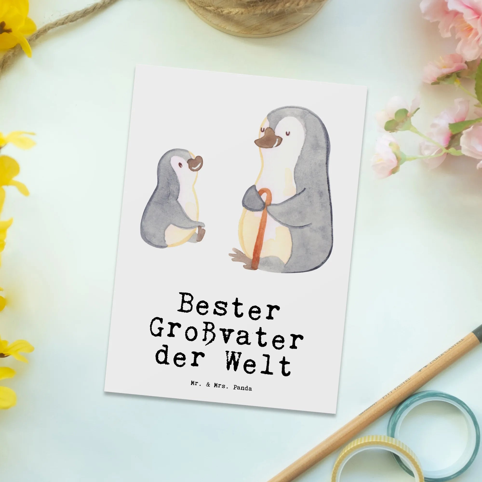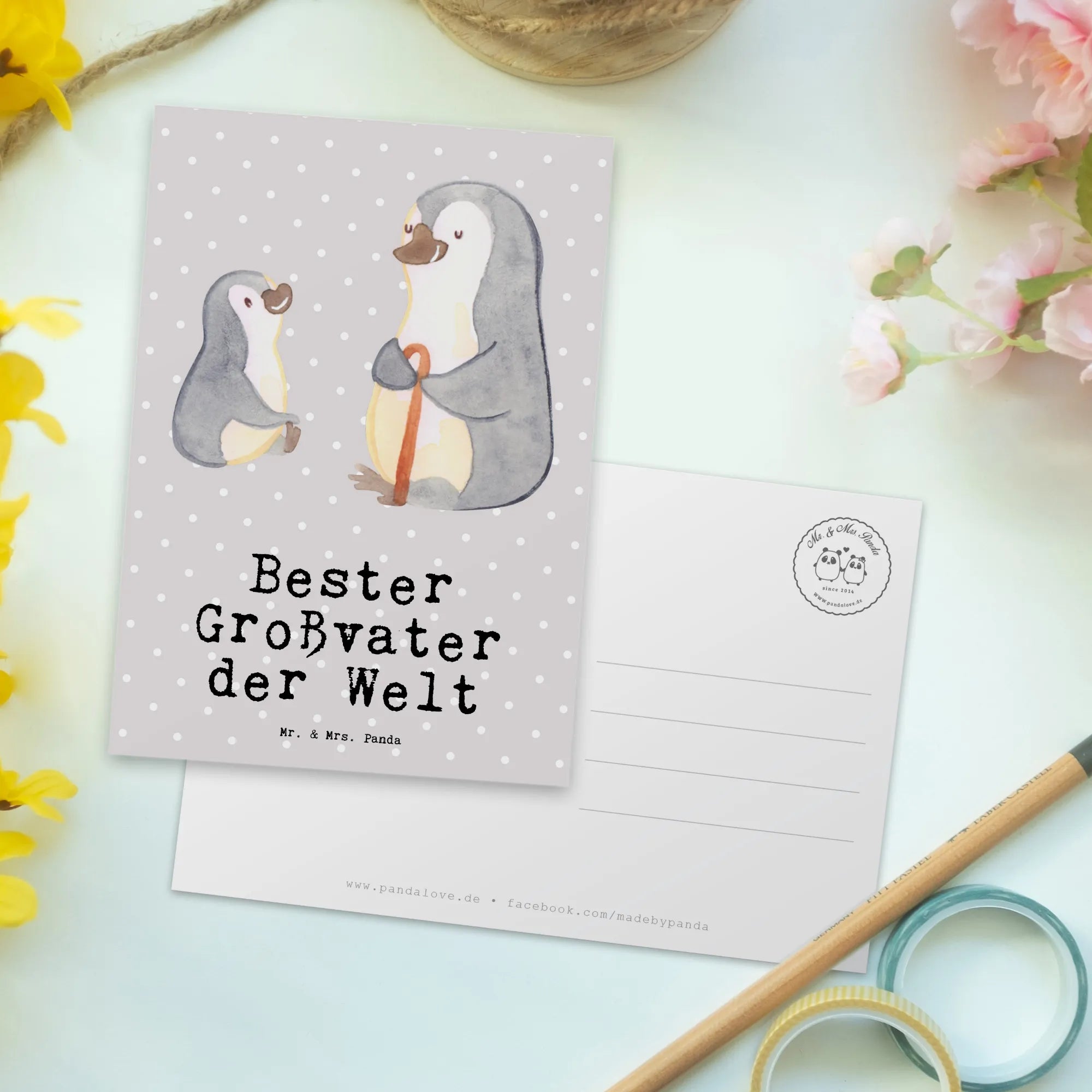 Postcard penguin Best grandfather in the world - Grey Pastel