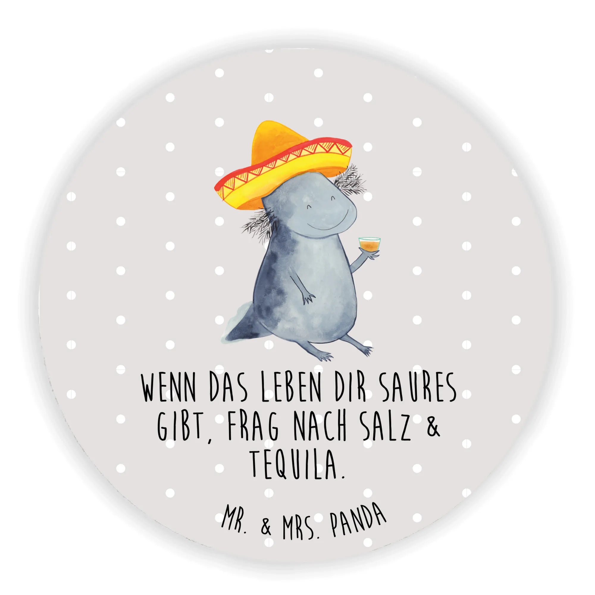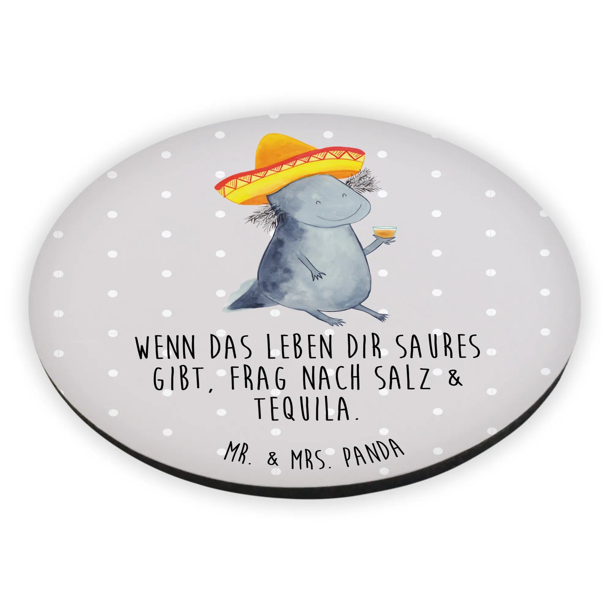 Round magnet axolotl tequila - with saying - Grey Pastel