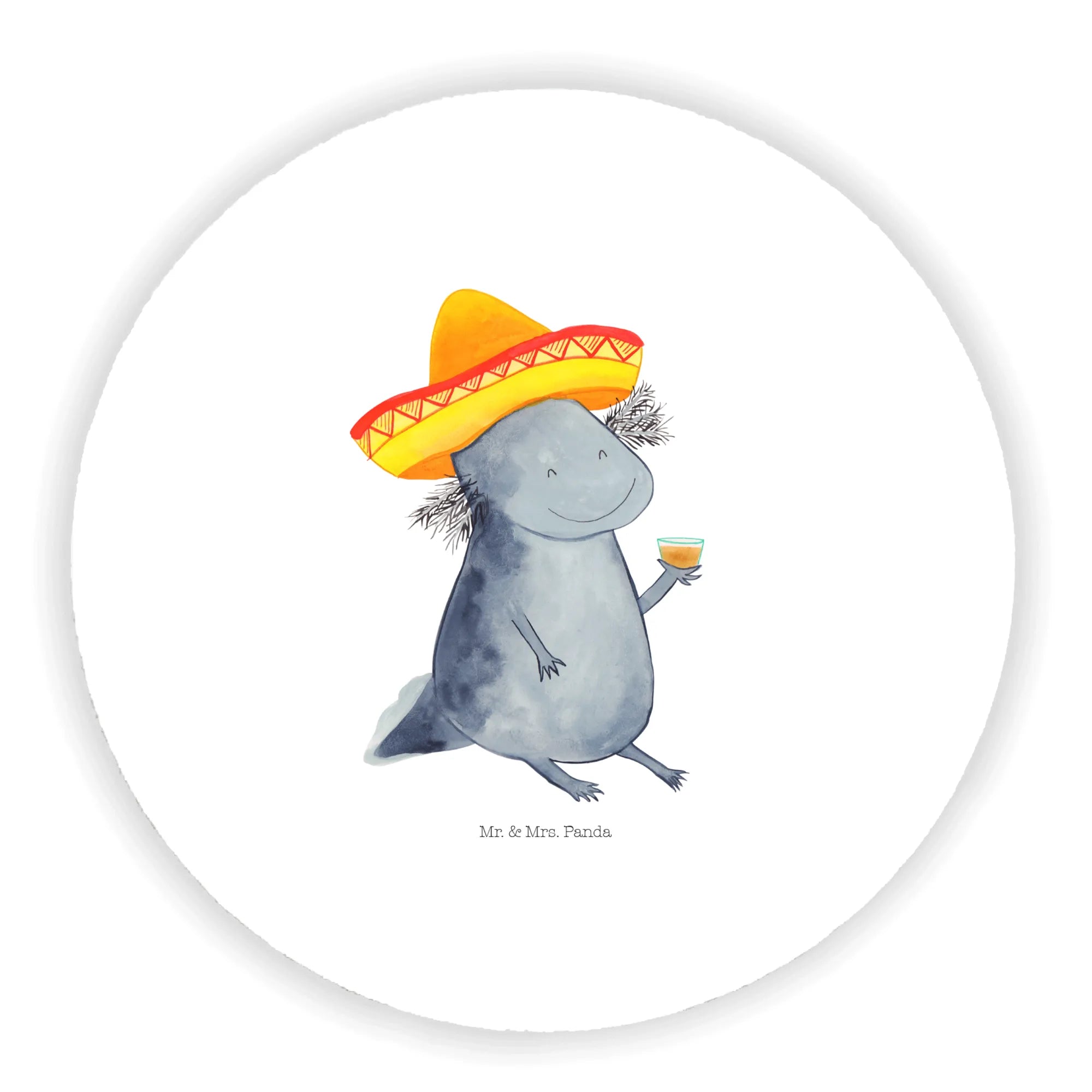 Are you looking for a gift that is quirky, fun, and perfectly captures the essence of good vibes? Look no further than the delightful Axolotl Tequila Round Magnet from the enchanting Axolotl collection by Mr. & Mrs. Panda! This charming magnet features an adorable axolotl, a unique amphibian native to Mexico, donned in a traditional sombrero and holding a glass of tequila — a true celebration of the vivacious spirit of Mexican culture!
