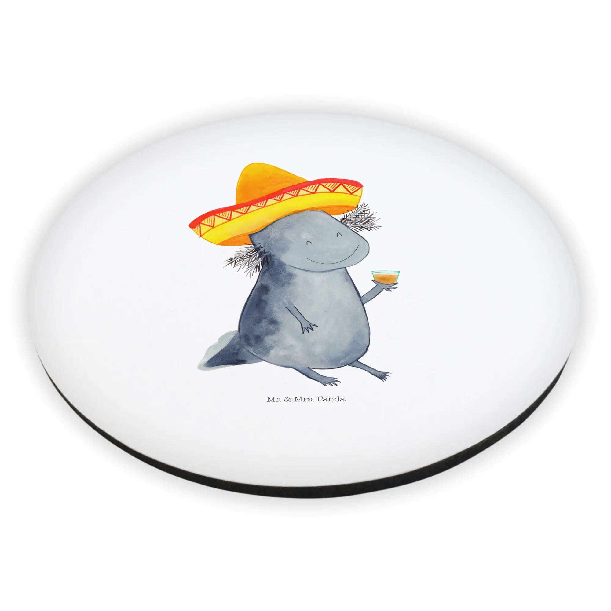 Meet the charming Axolotl Tequila Round Magnet from Mr. & Mrs. Panda, a delightful piece of art that adds cheer and whimsy to your home or workspace! Whether it's the fridge or your magnetic board at the office, this supermagnetic magnet is the ideal way to infuse your space with personality and motivation.