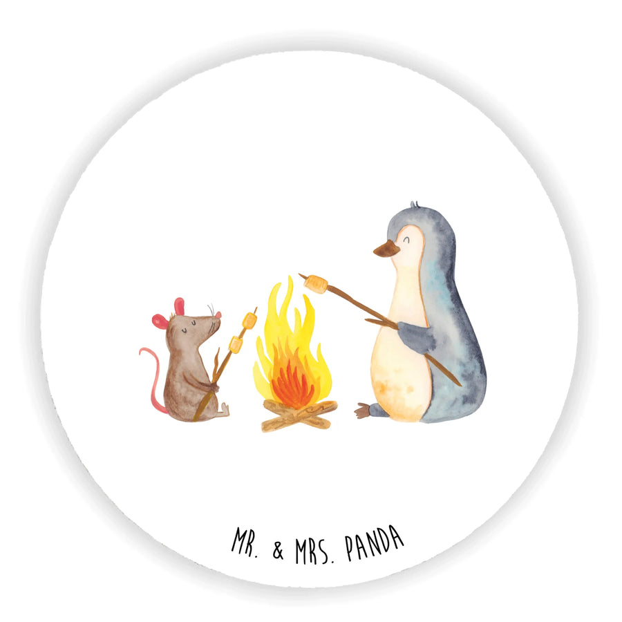Round magnet Penguin campfire - without saying - White