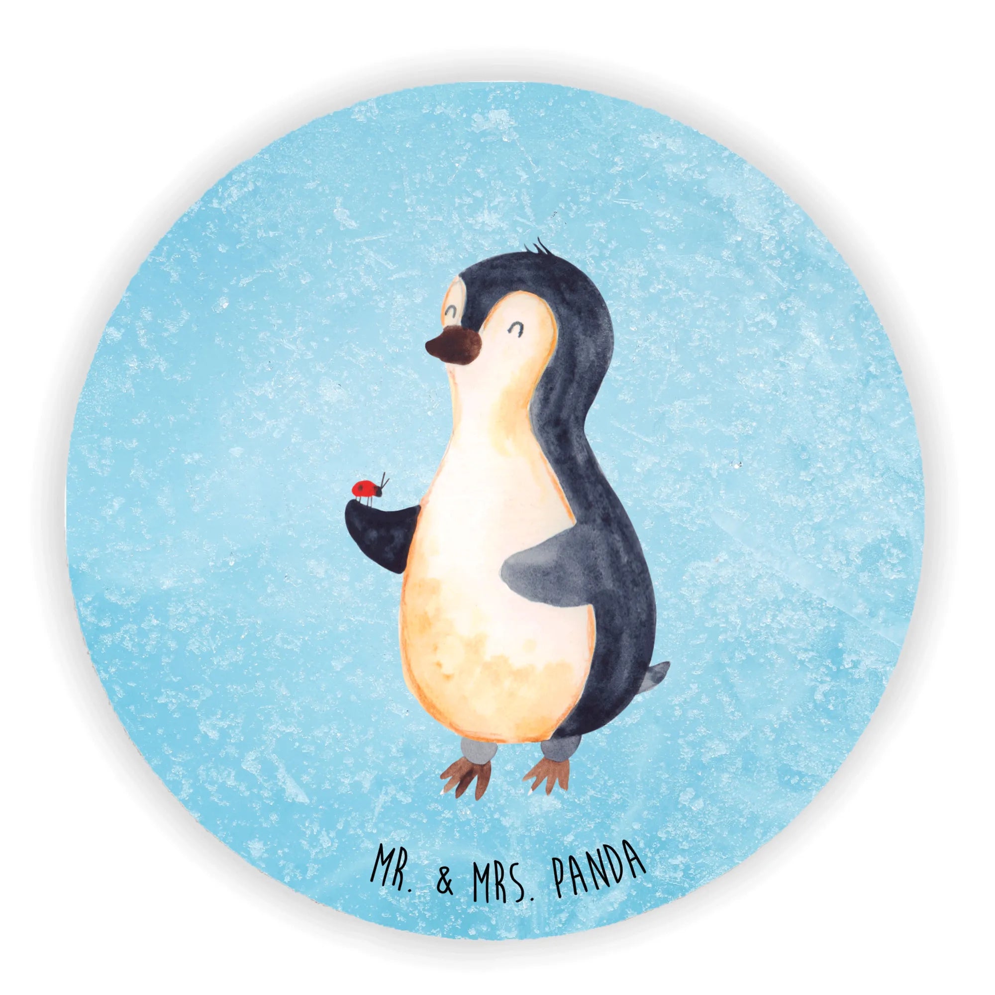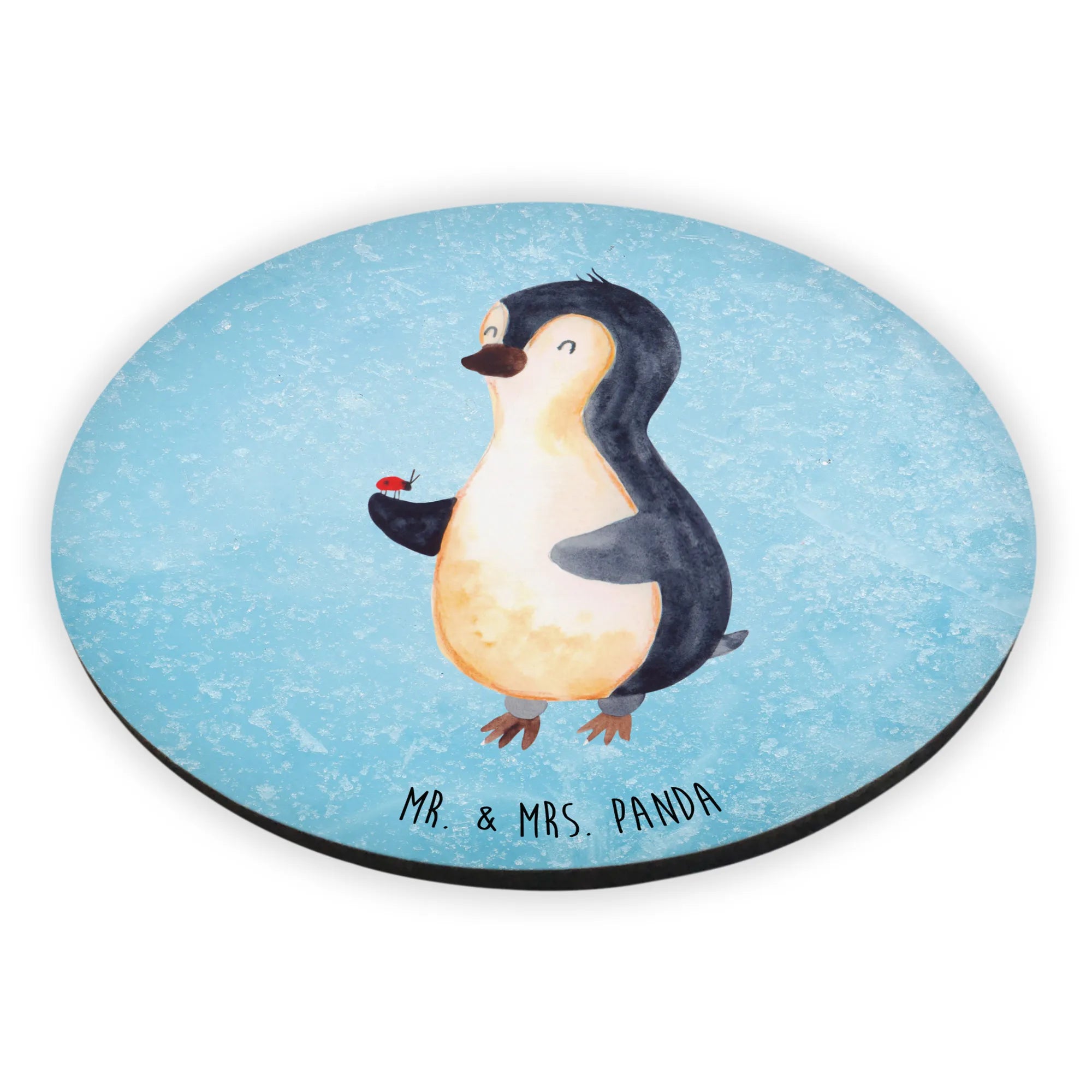 Round magnet Penguin ladybug - with a saying - Ice Blue
