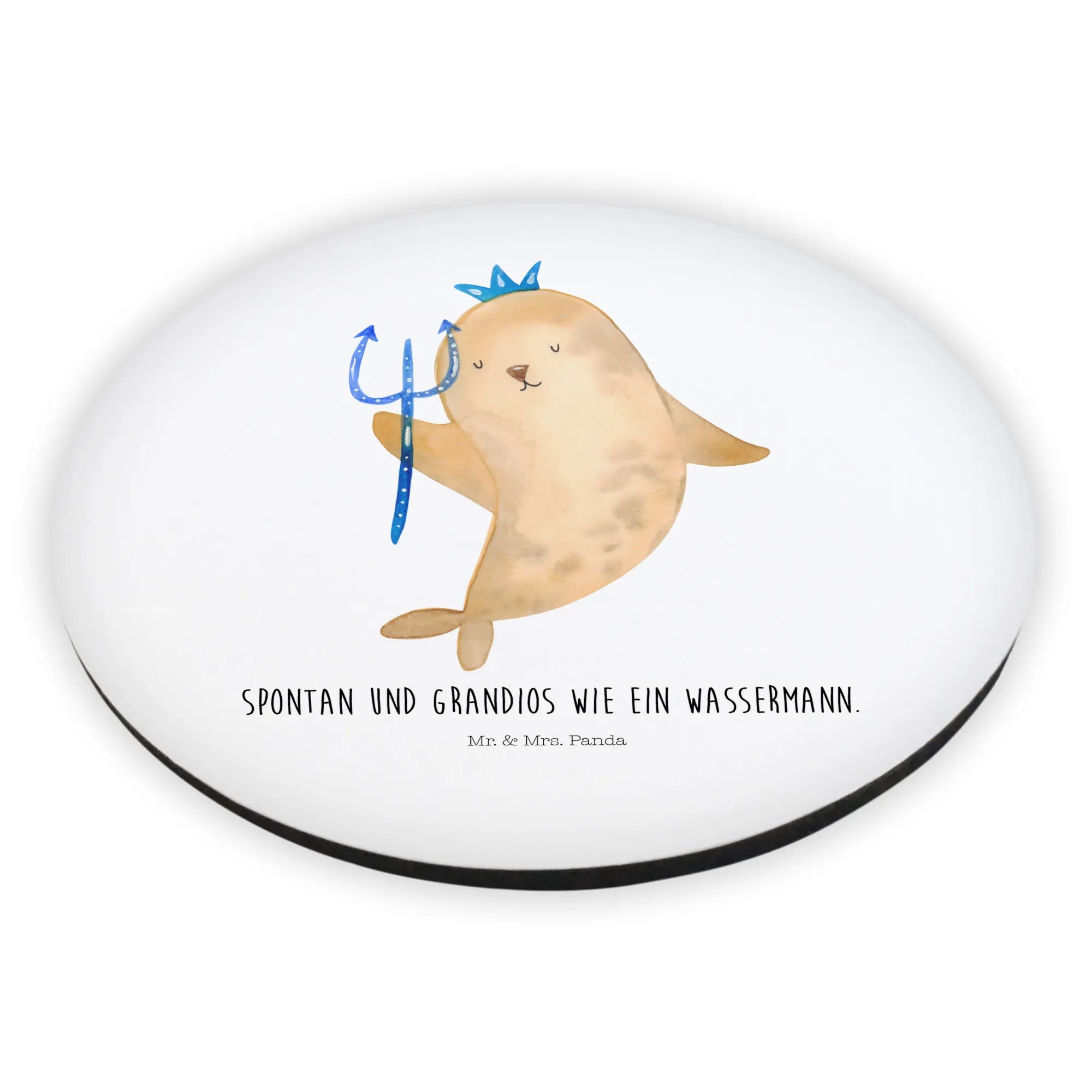 Designed from high-quality MDF, this sturdy yet lightweight magnet is not just about functionality — it’s about expressing yourself in a fun and colorful way! The whimsical motif includes a quirky depiction of a regal seal adorned with a crown and scepter, capturing the free-spirited essence of those born under the Aquarius sign. With the playful slogan 'Spontaneous and grandiose like an Aquarius', this magnet serves as a cheerful reminder of the unique traits associated with this zodiac sign.