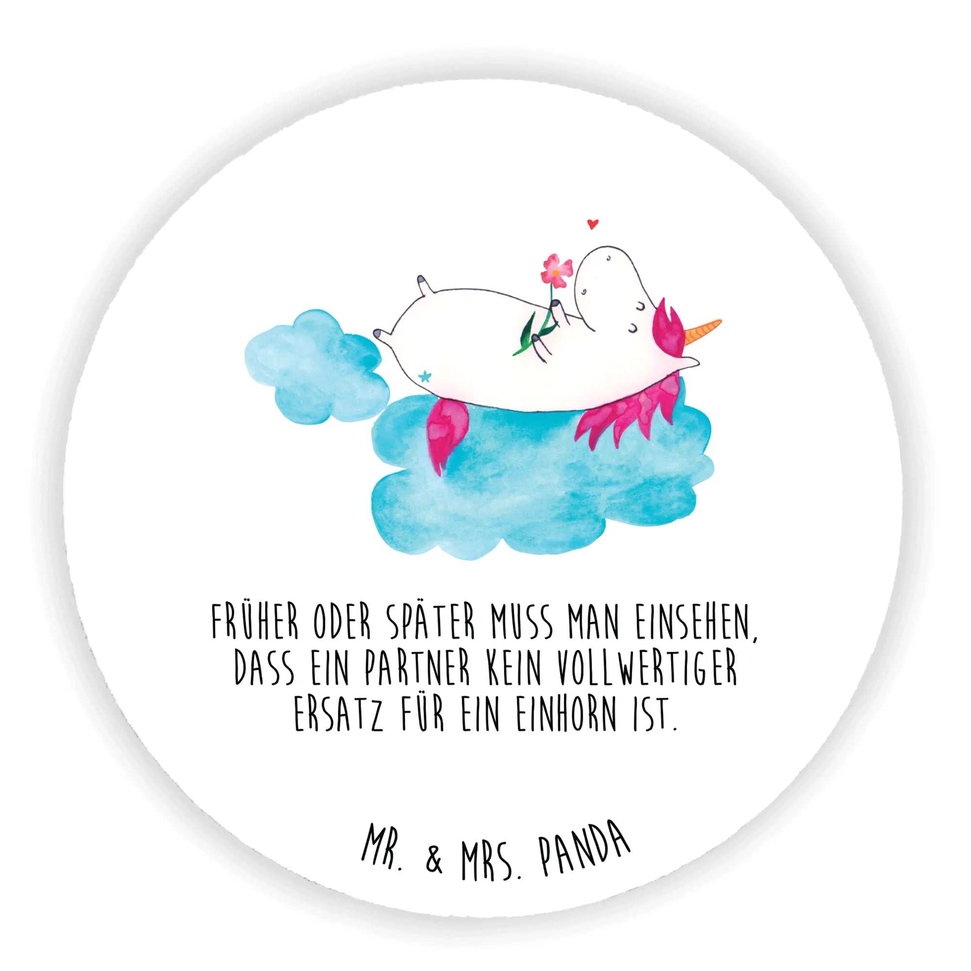 In a world where relationships can be complicated, the whimsical sentiment behind the slogan, 'Früher oder später muss man einsehen, dass ein Partner kein vollwertiger Ersatz für ein Einhorn ist,' gently reminds us that real magic is sometimes found in the unlikely corners of our lives. A hint of humor for the men out there: be mindful when gifting this to your partner—it may raise an eyebrow or two!