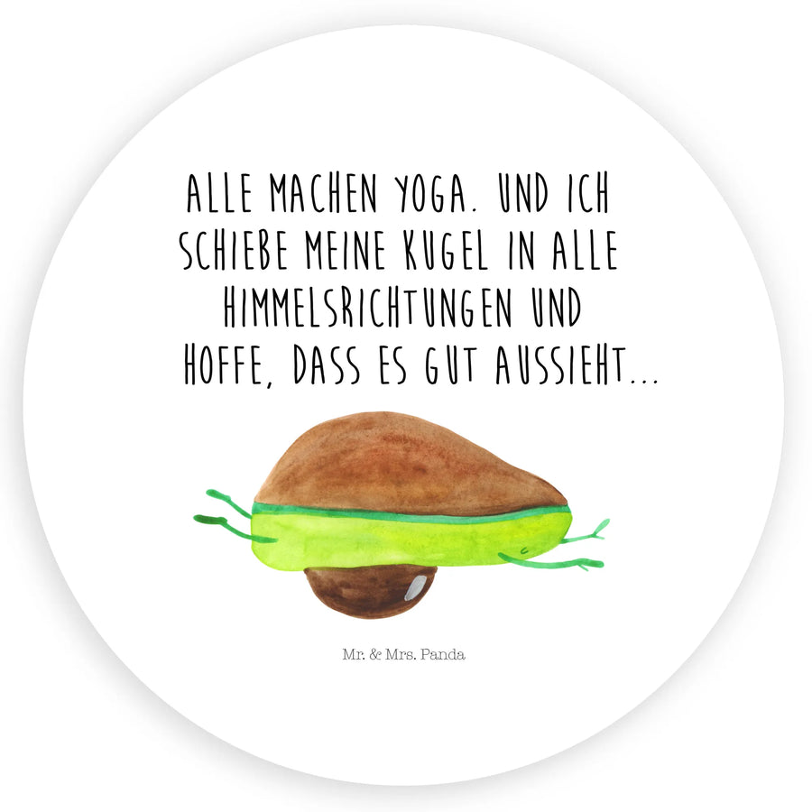 Round sticker avocado yoga - 80mm Round Sticker - with saying - White