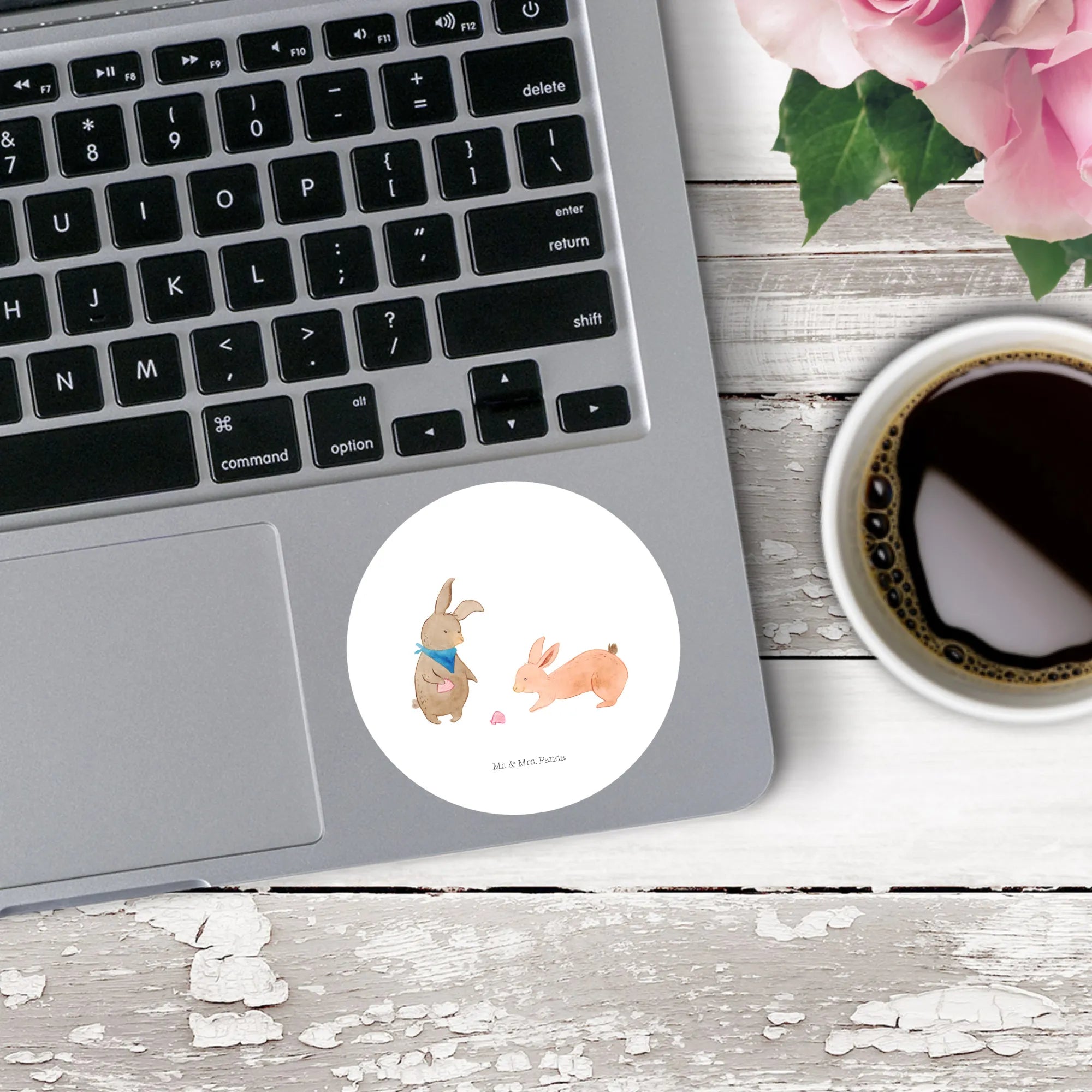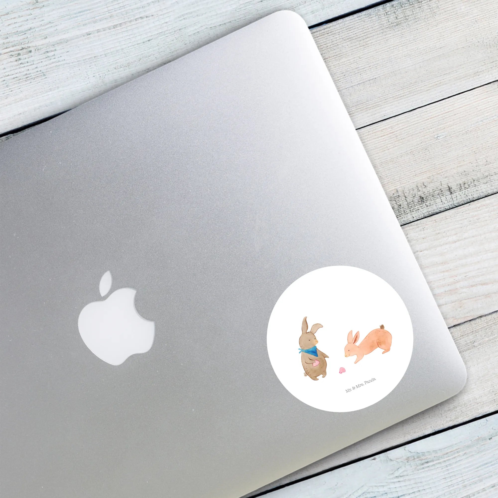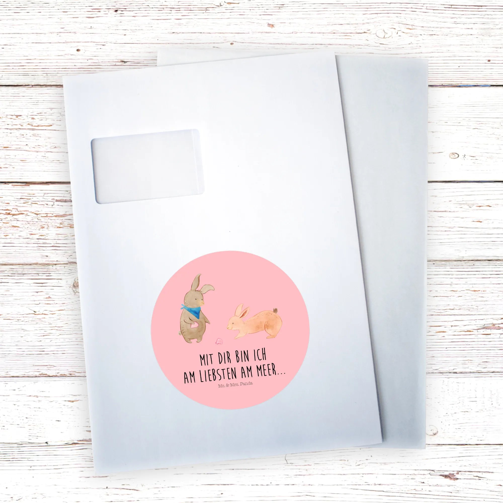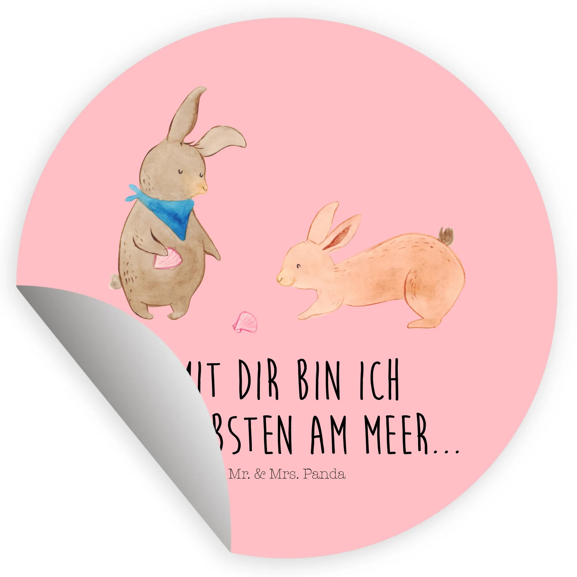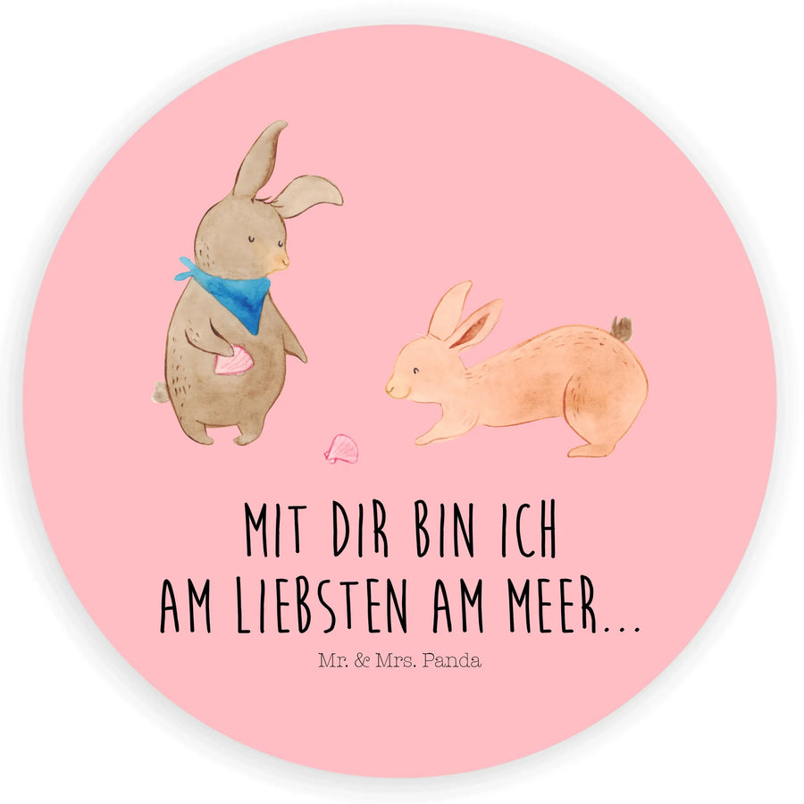 Round sticker Bunnies with seashell - 120mm Rund Aufkleber - with saying - Pastel Red