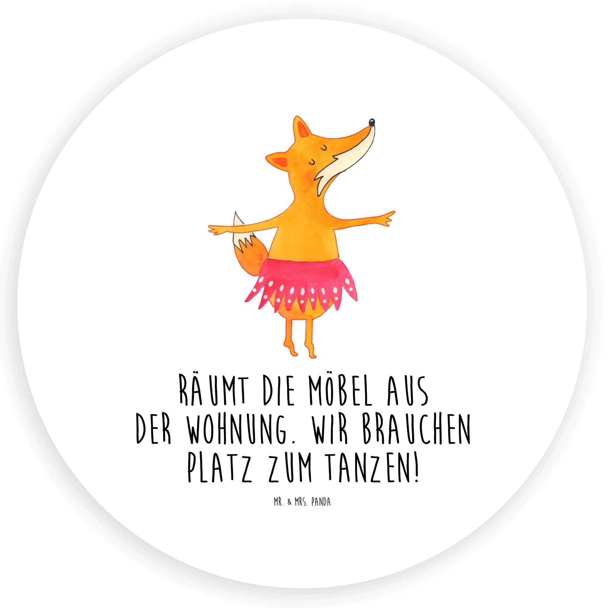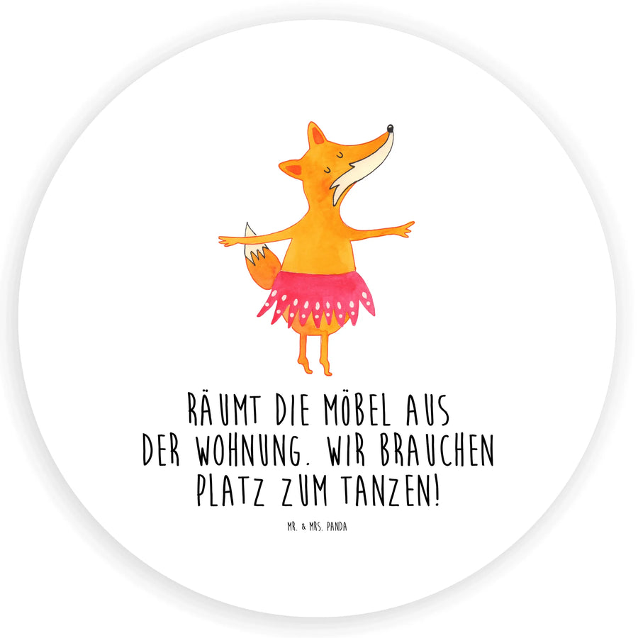 Round sticker Fox ballerina - 80mm Round Sticker - with a saying - White