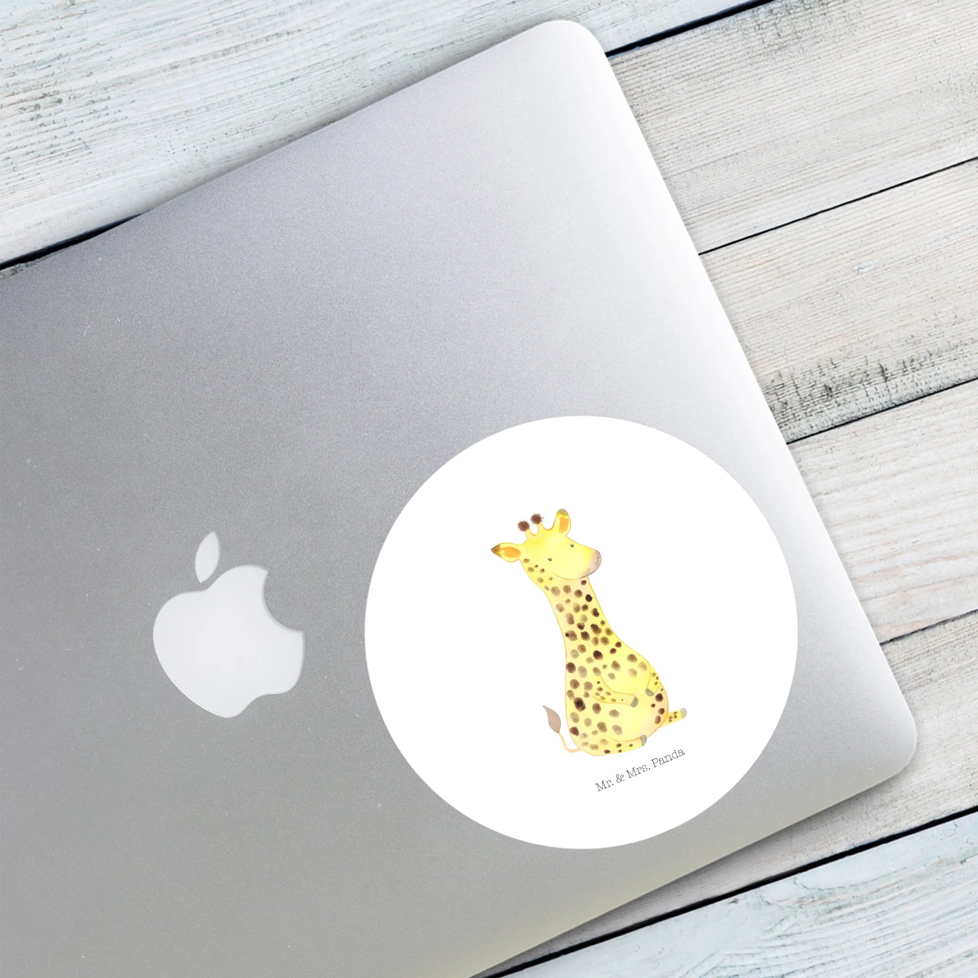 Ein kleiner Glücksbringer mit weitem Blick: Unsere liebevoll gezeichnete Giraffe „Zufrieden“ sitzt da und erinnert Dich mit dem Spruch „Im Grunde genommen zögern wir zu viel und wagen zu wenig.“ daran, mutig zu sein und die Welt in vollen Zügen zu genießen. Der runde Aufkleber aus der Afrika Kollektion von Mr. & Mrs. Panda bringt Fernweh, Freude und ein bisschen Safari-Feeling in Deinen Alltag.