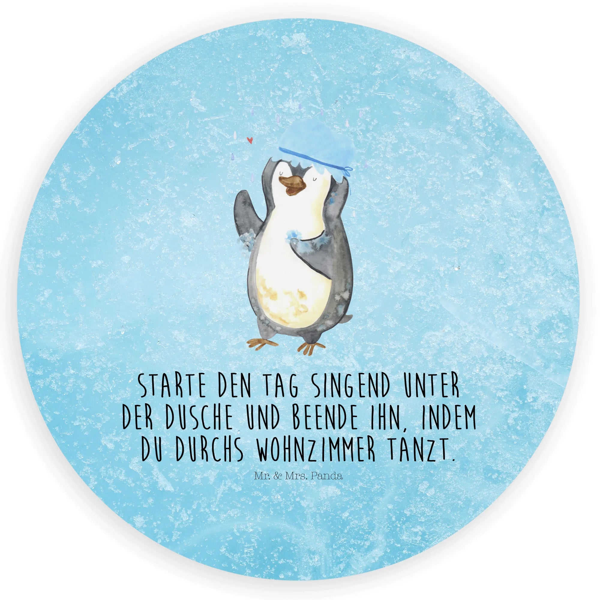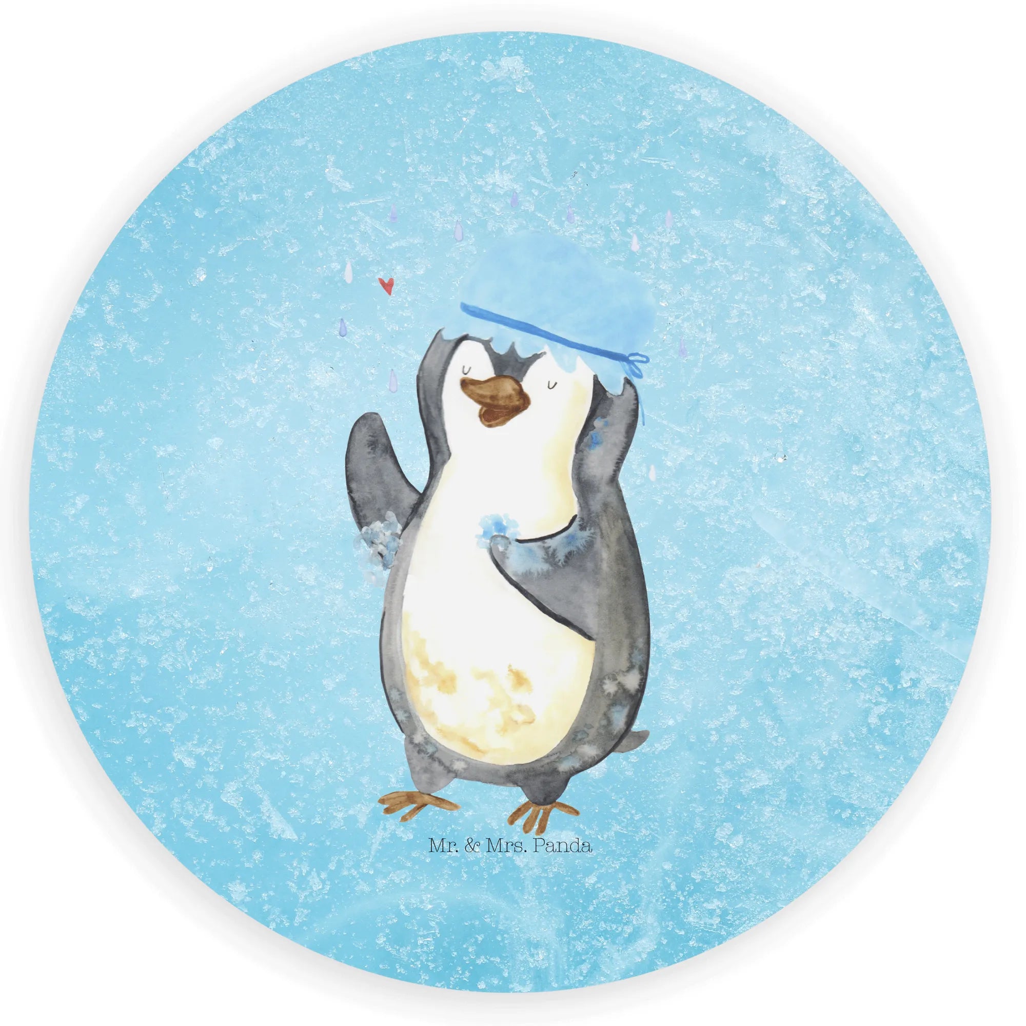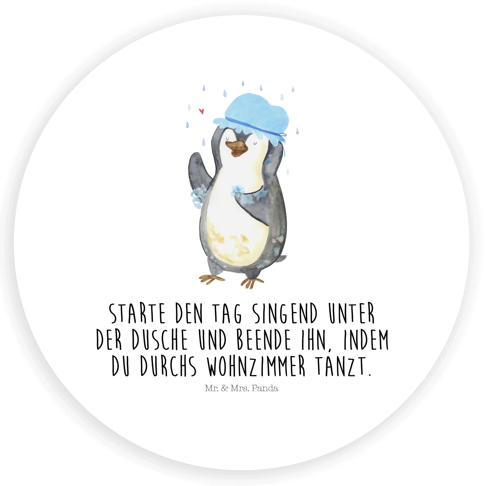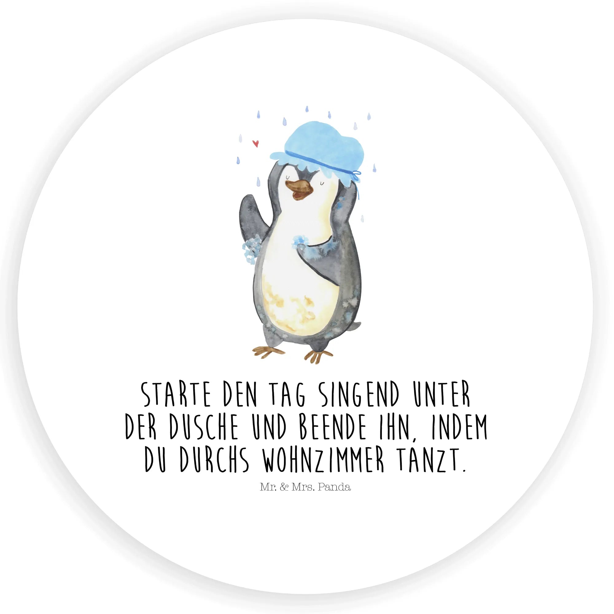 Round sticker Penguin have a shower - 80mm Round Sticker - with saying - White
