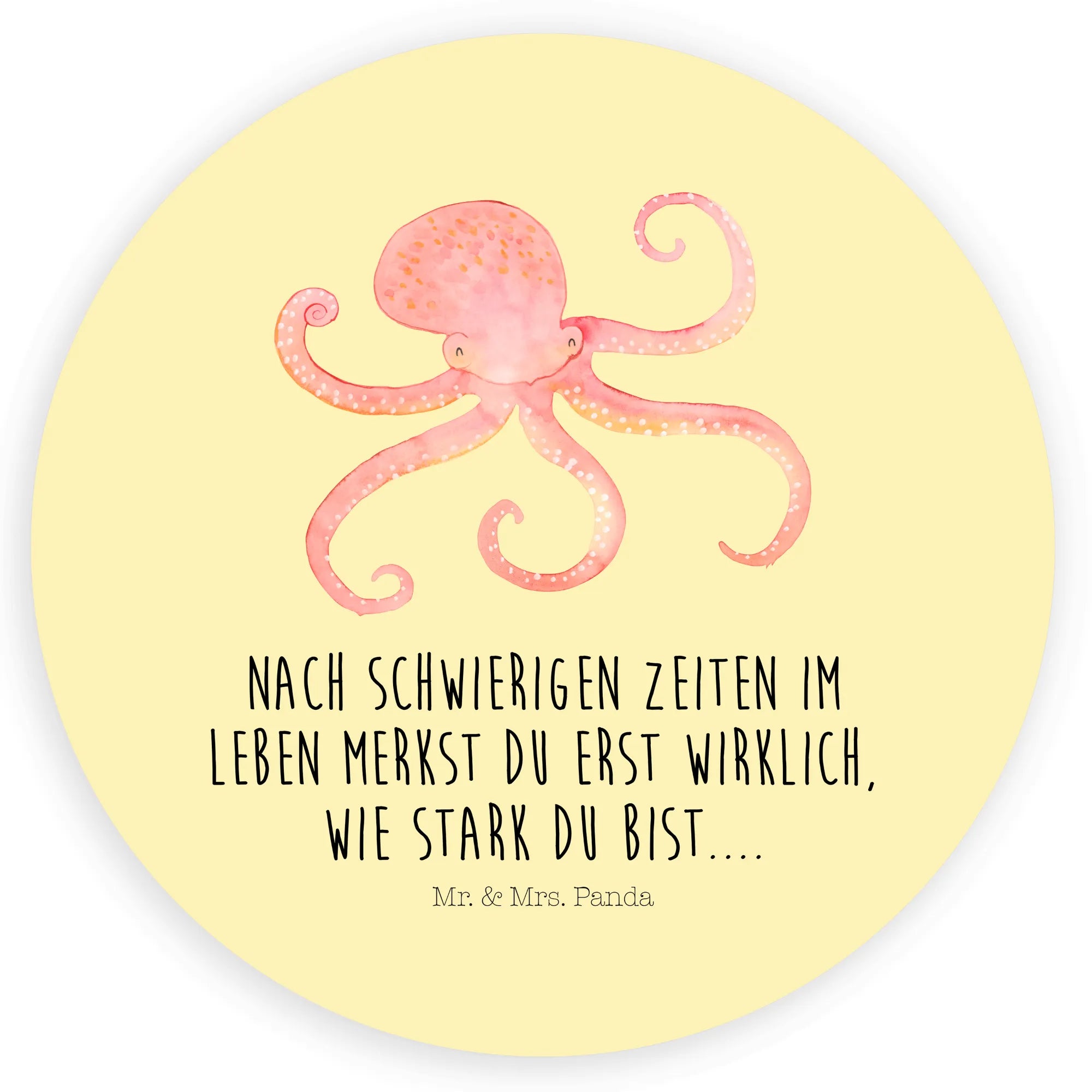 Ein wunderschöner 80mm Rund Aufkleber von Mr. & Mrs. Panda: Der rote Tintenfisch aus der Small World Kollektion winkt dir mit fröhlichen Armen zu und verbreitet sofort gute Laune. Das Motiv wurde liebevoll von Mrs. Panda in Aquarell gezeichnet und trägt den kleinen, starken Spruch: „Nach schwierigen Zeiten im Leben merkst du erst wirklich, wie stark du bist.…“