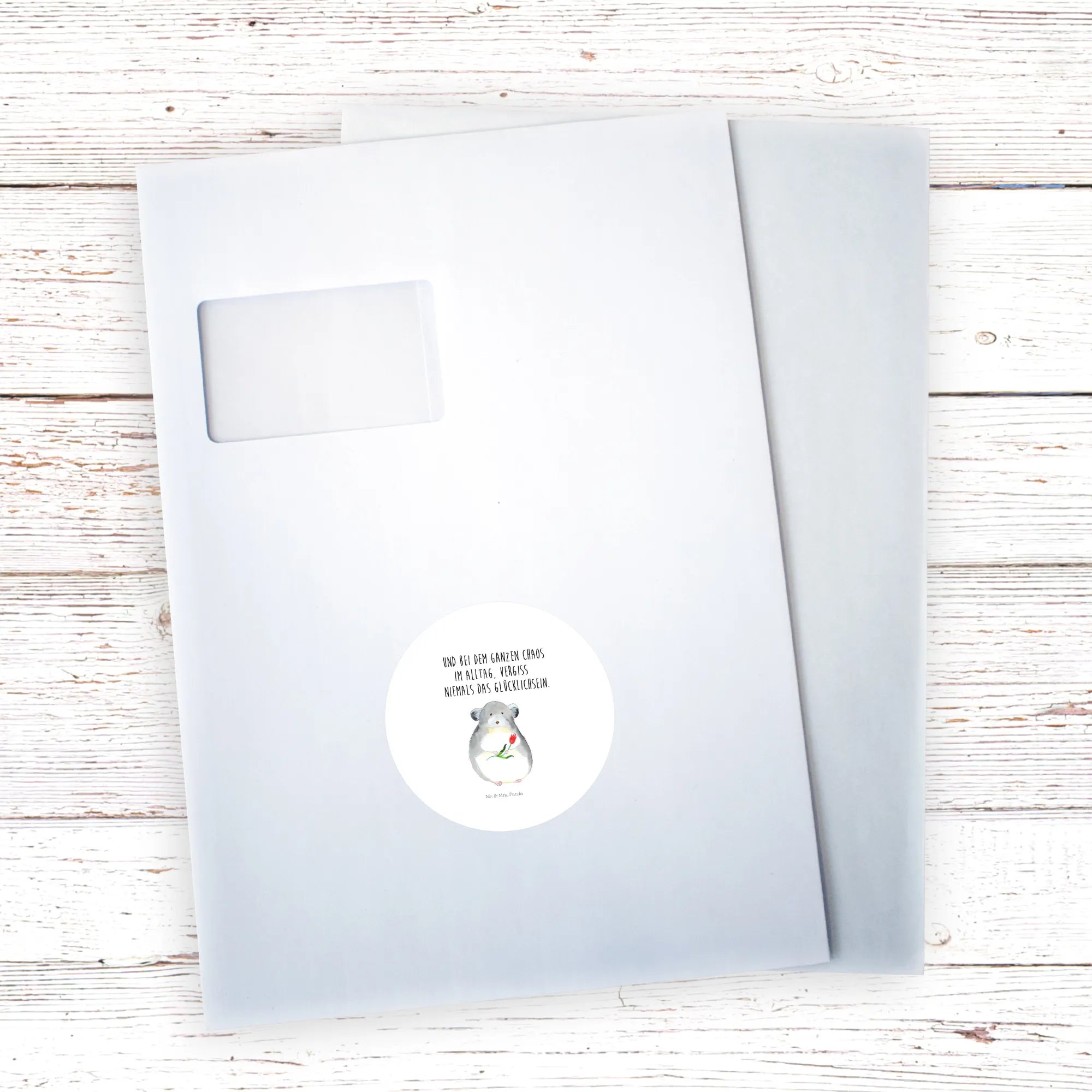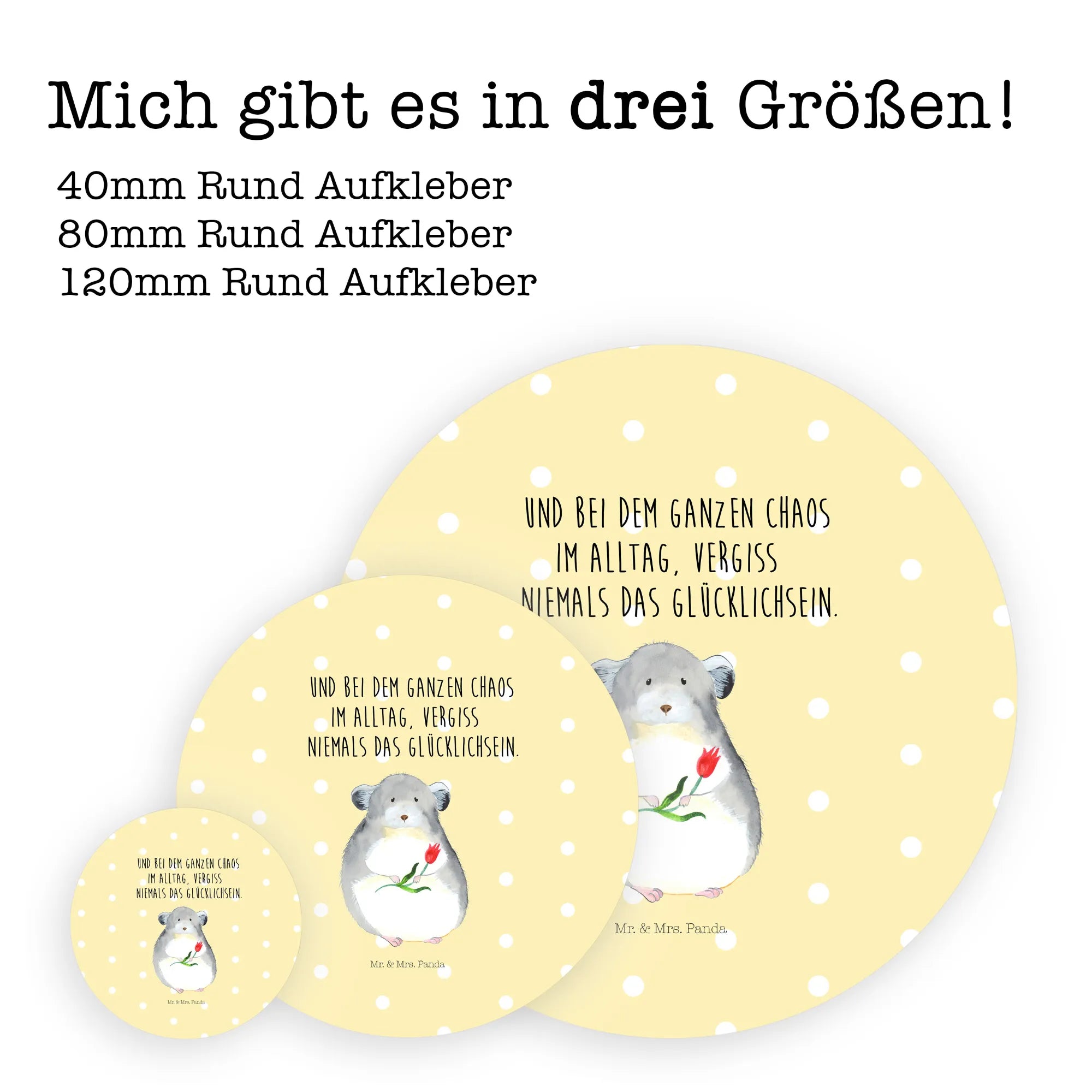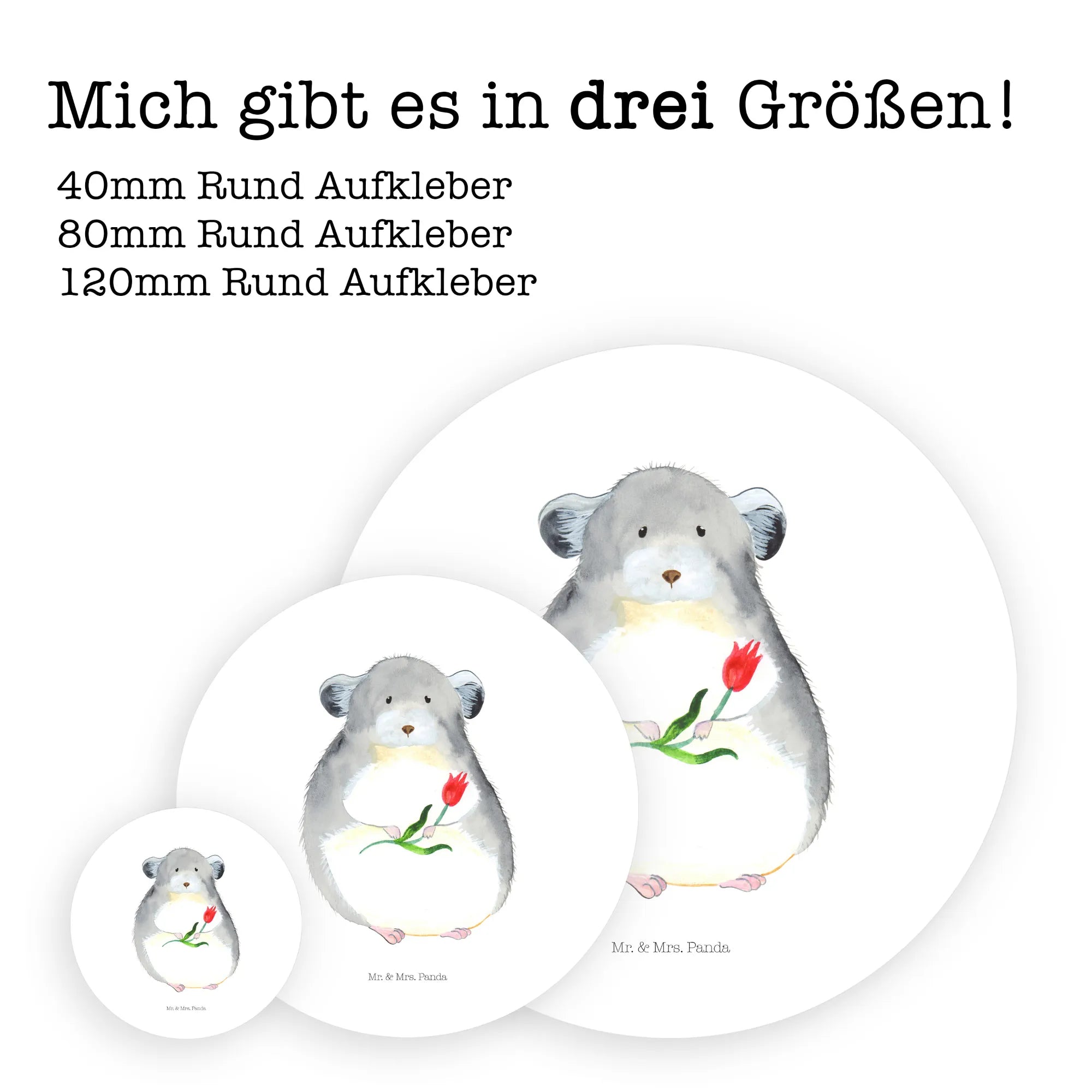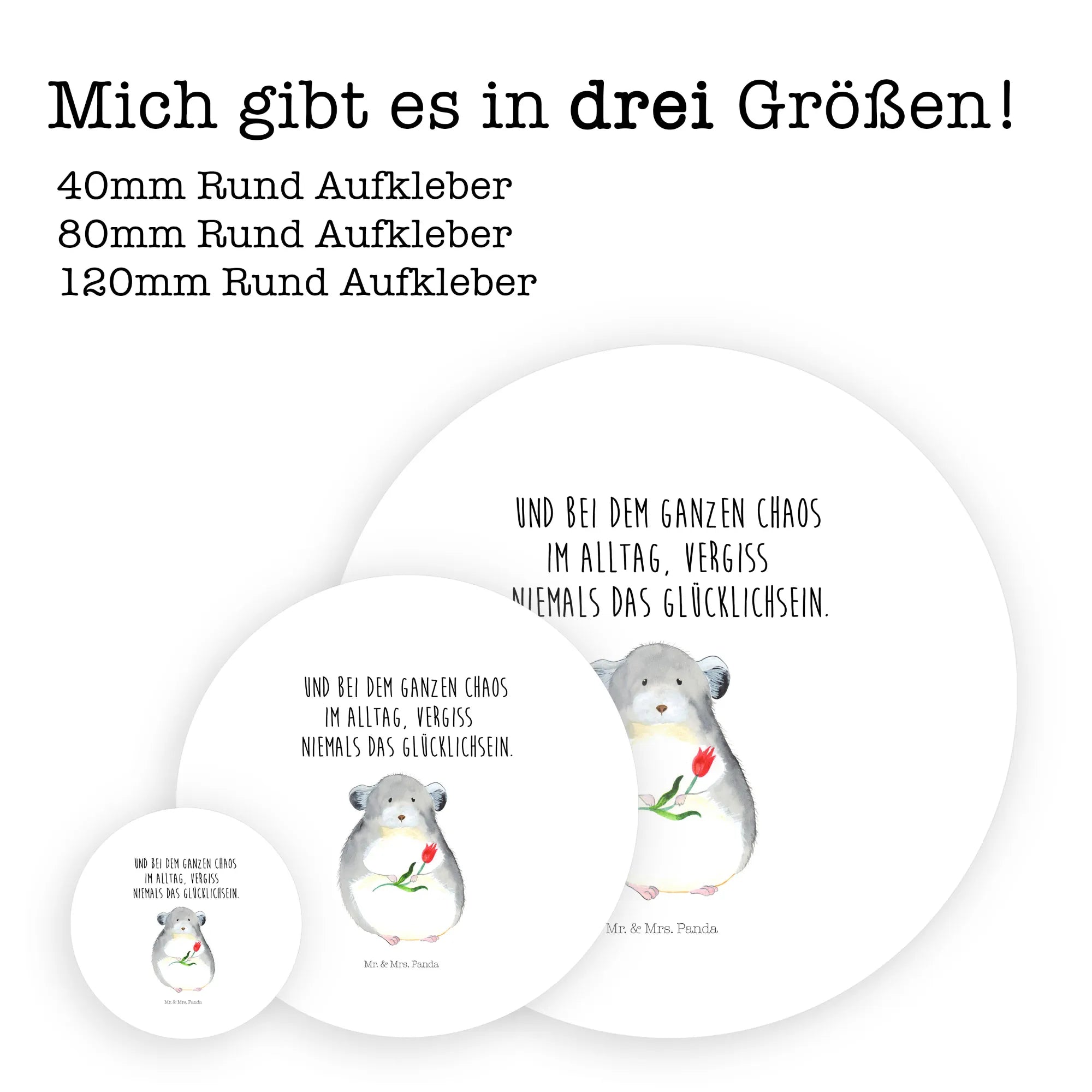 80mm round sticker chinchilla flower - 80mm Rund Aufkleber - with saying - White