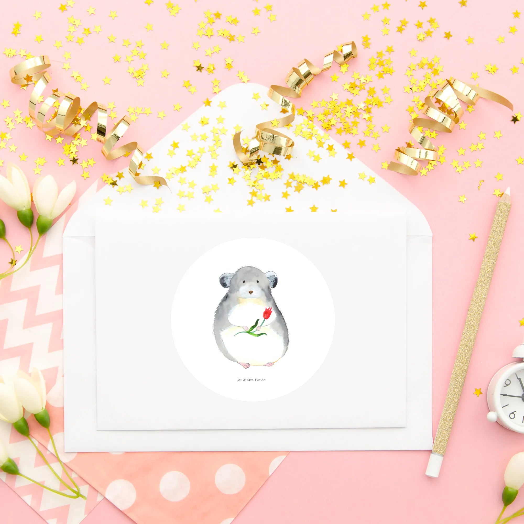 Whimsical Chinchilla with Flower: A Joyful Design by Mr. & Mrs. Panda