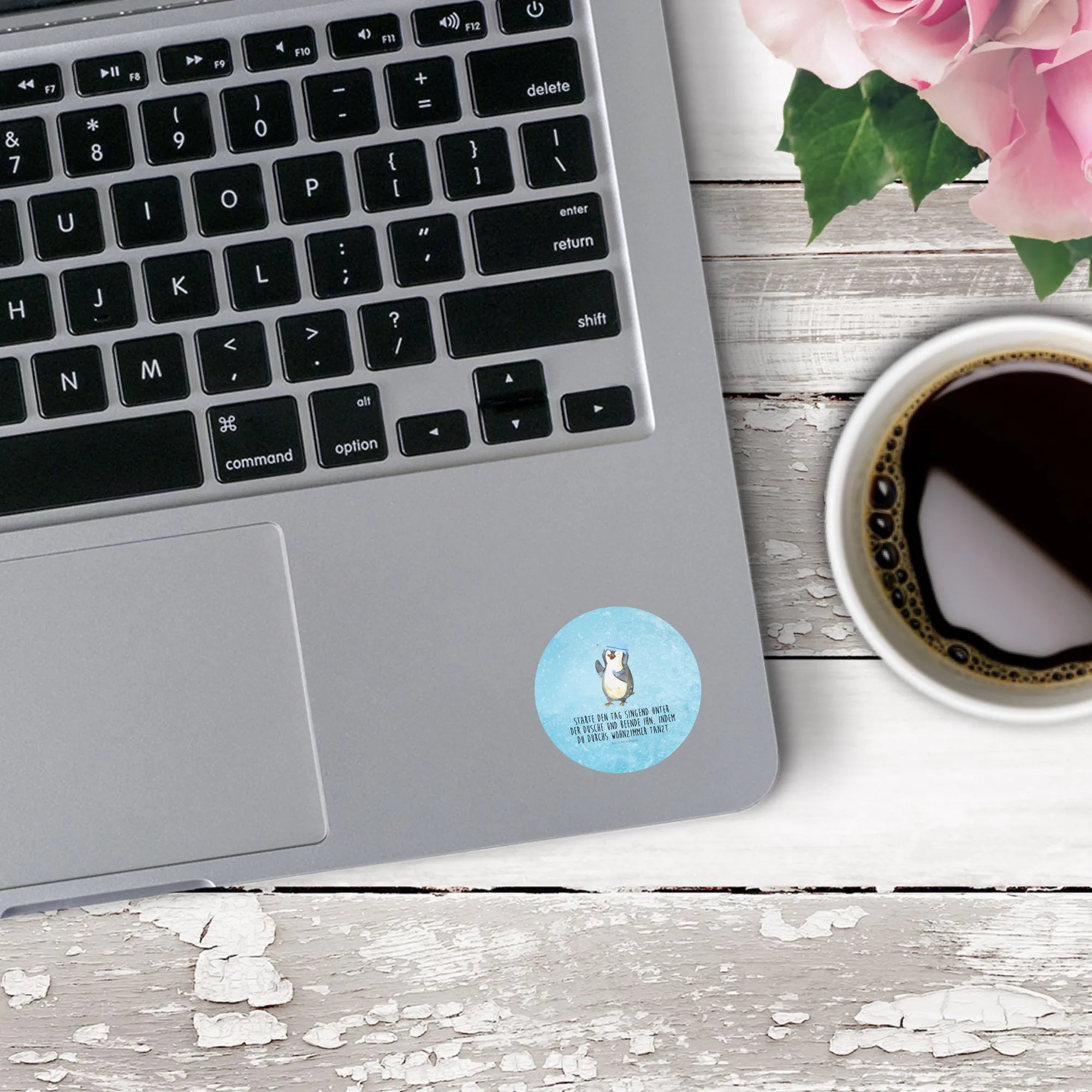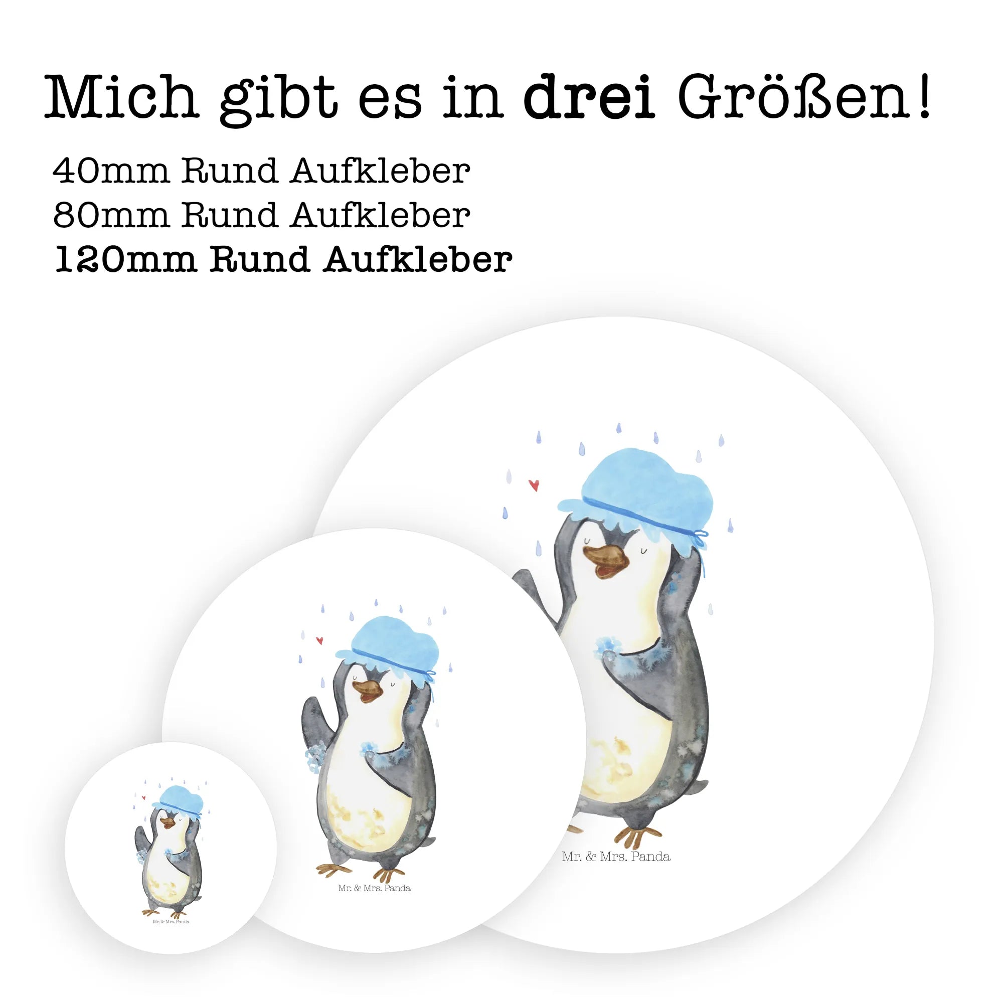 80mm round sticker Penguin have a shower - 80mm Rund Aufkleber - with saying - White
