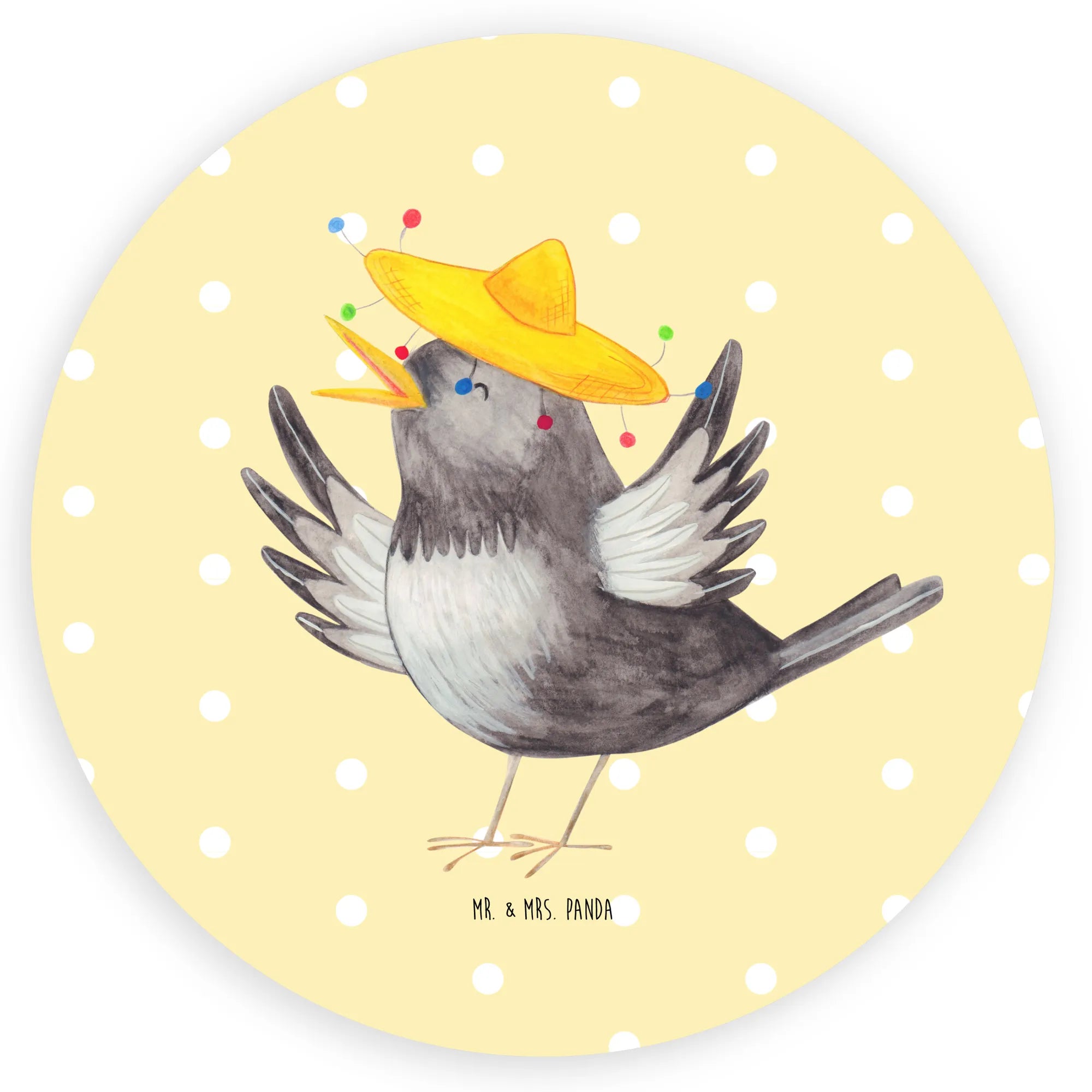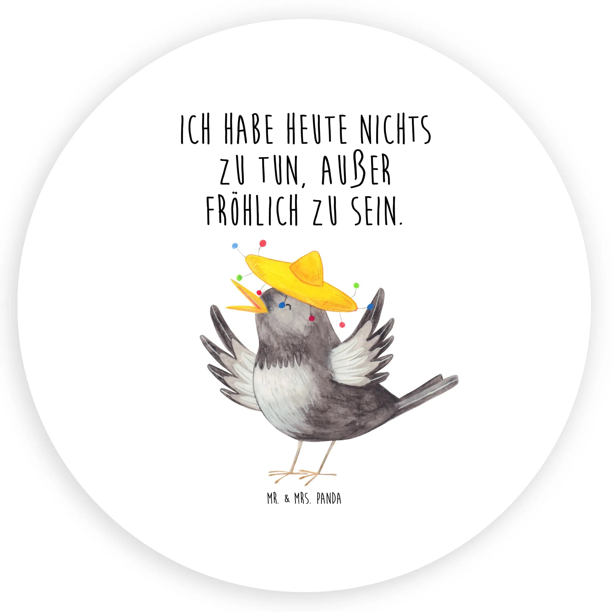 Round sticker Crow sombrero - 80mm Round Sticker - with a saying - White