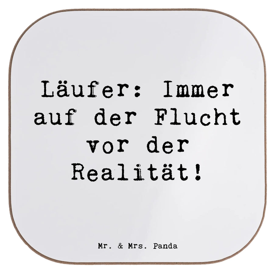 Square coaster Saying Läufer: Immer auf der Flucht vor der Realität! - White