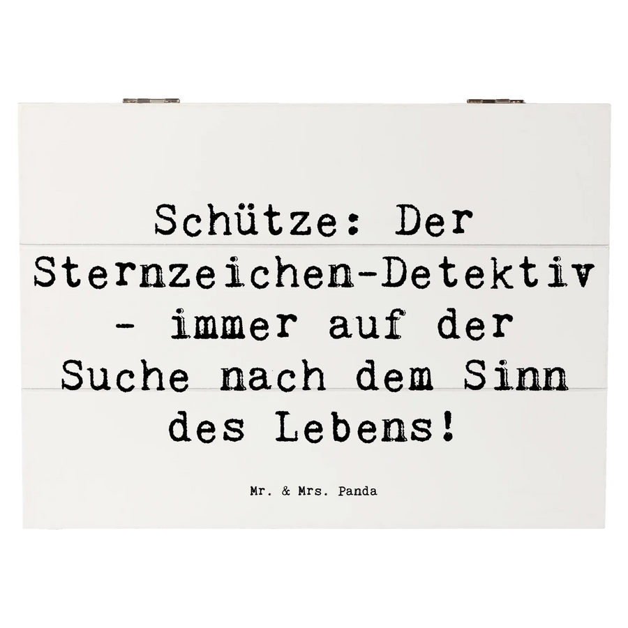 Wooden chest Saying Schütze: Der Sternzeichen-Detektiv - immer auf der Suche nach dem Sinn des Lebens! - 25 x 18 cm - White