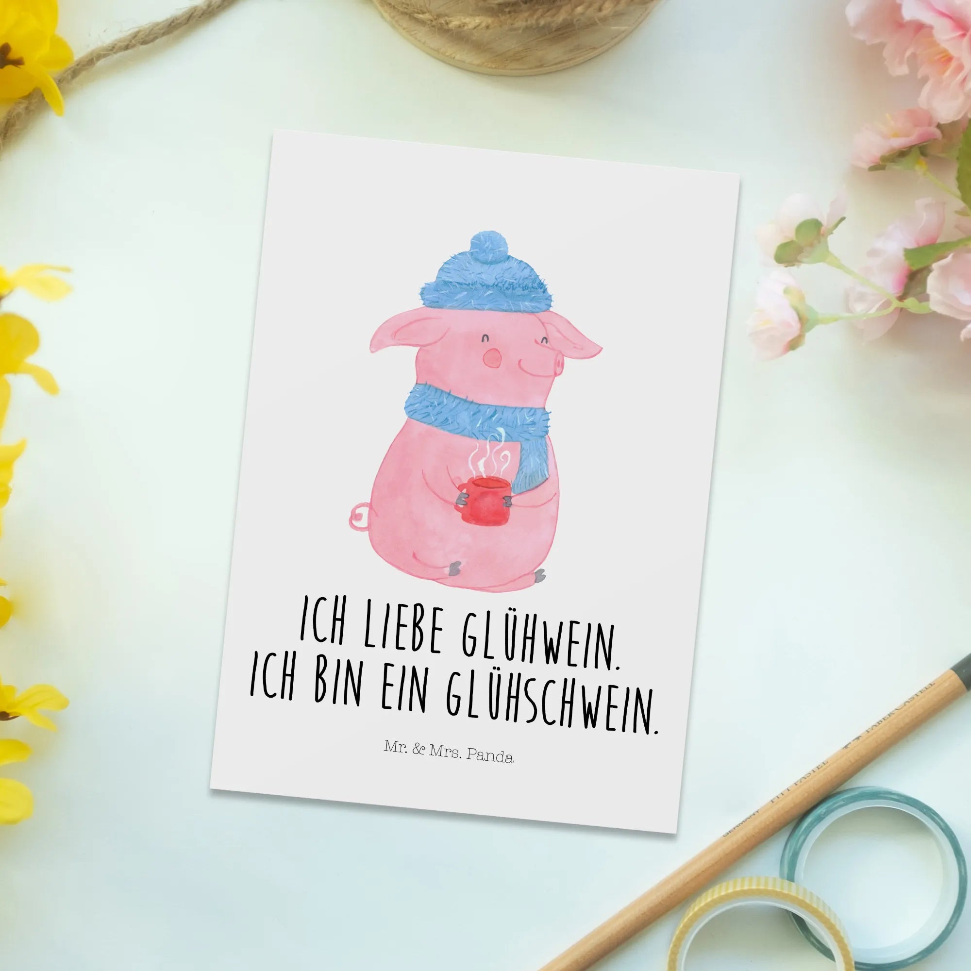 Postcard Pig Mulled wine - with saying - White