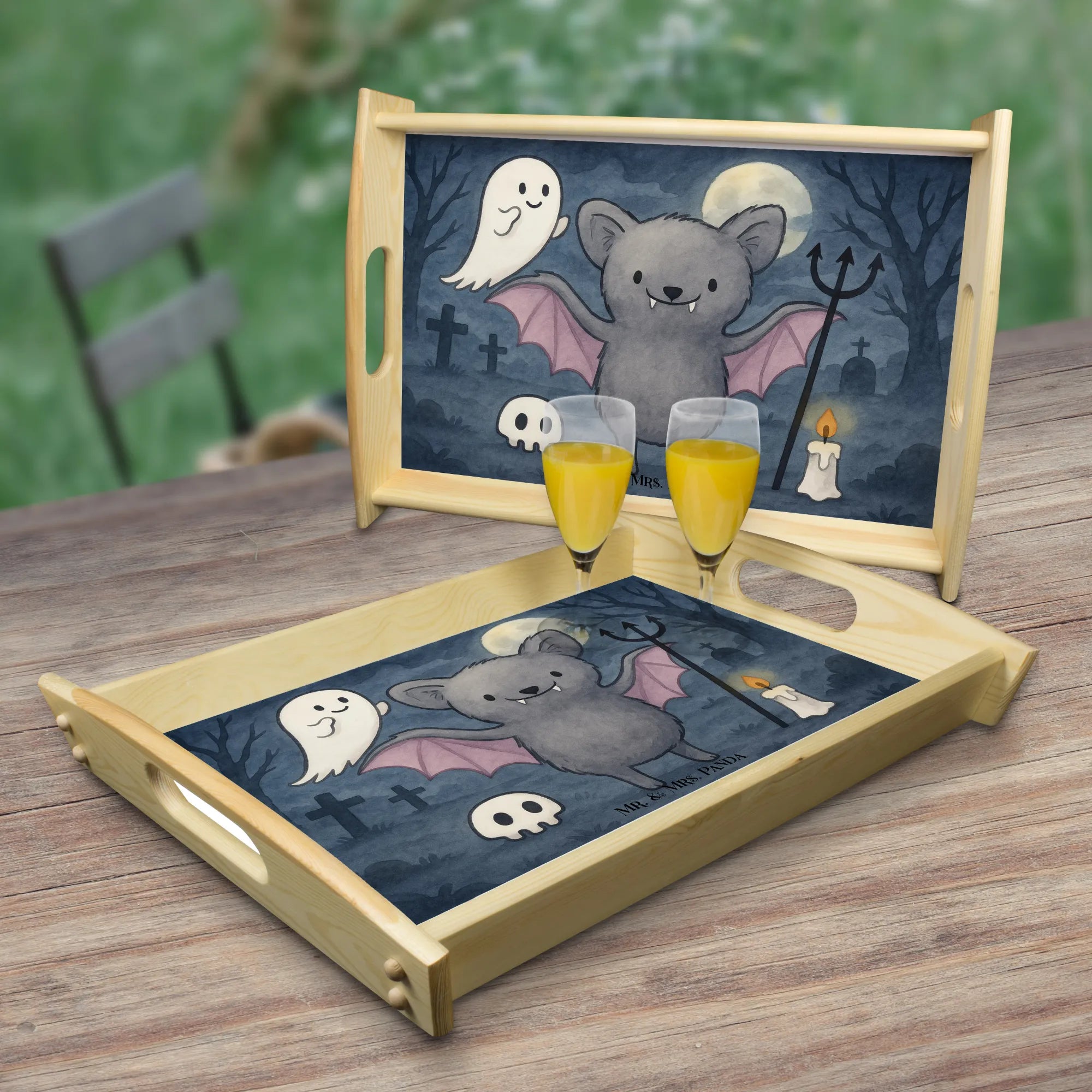 Das einzigartige Serviertablett von Mr. & Mrs. Panda wird dein Frühstücksbuffet zum Erlebnis machen! Mit seinen großzügigen Maßen von 480 mm x 480 mm x 65 mm und einem Gewicht von 925 g ist es die perfekte Kombination aus Funktionalität und Stil. Aus hochwertigem, lasiertem Echtholz gefertigt, verzückt das Tablett mit einem strahlenden Druck, der für gute Laune sorgt. Ob im Bett oder auf dem Sofa, die seitlichen Griffmulden garantieren ein angenehmes Handling. Die spezielle Anti-Rutsch Beschichtung sorgt dafür, dass alles sicher an seinem Platz bleibt. Dank der kratzfesten Oberfläche ist das Tablett sehr pflegeleicht – einfach mit einem feuchten Tuch und etwas Spülmittel abwischen. Bitte nicht einweichen! Denke daran, dass die Anfertigung wegen der hohen Qualität etwas Zeit in Anspruch nimmt.