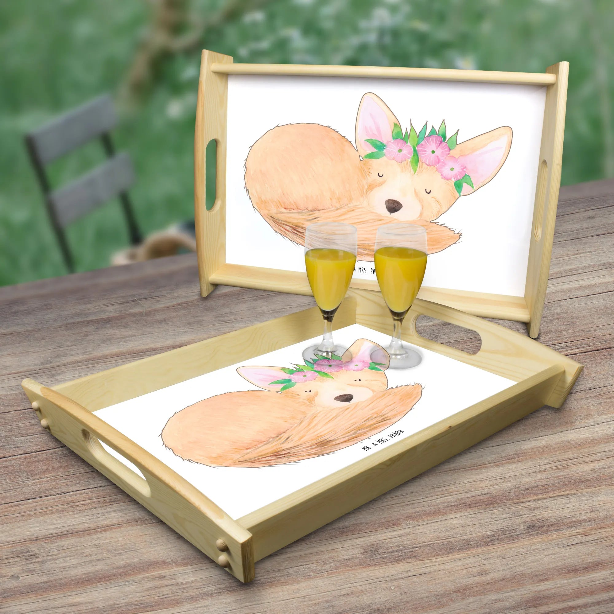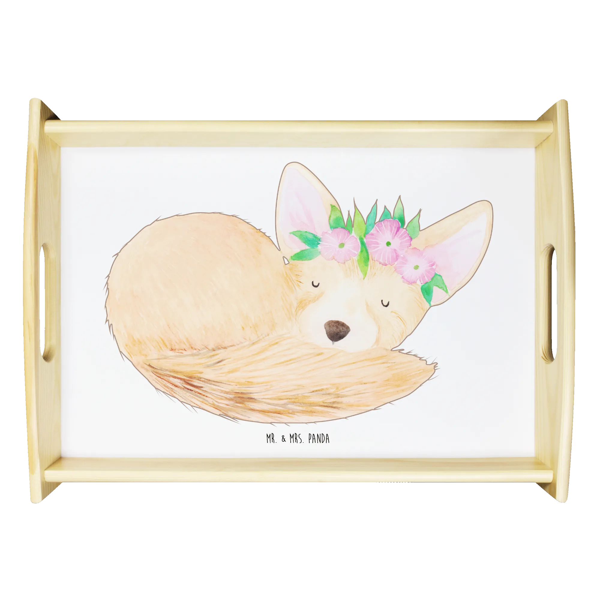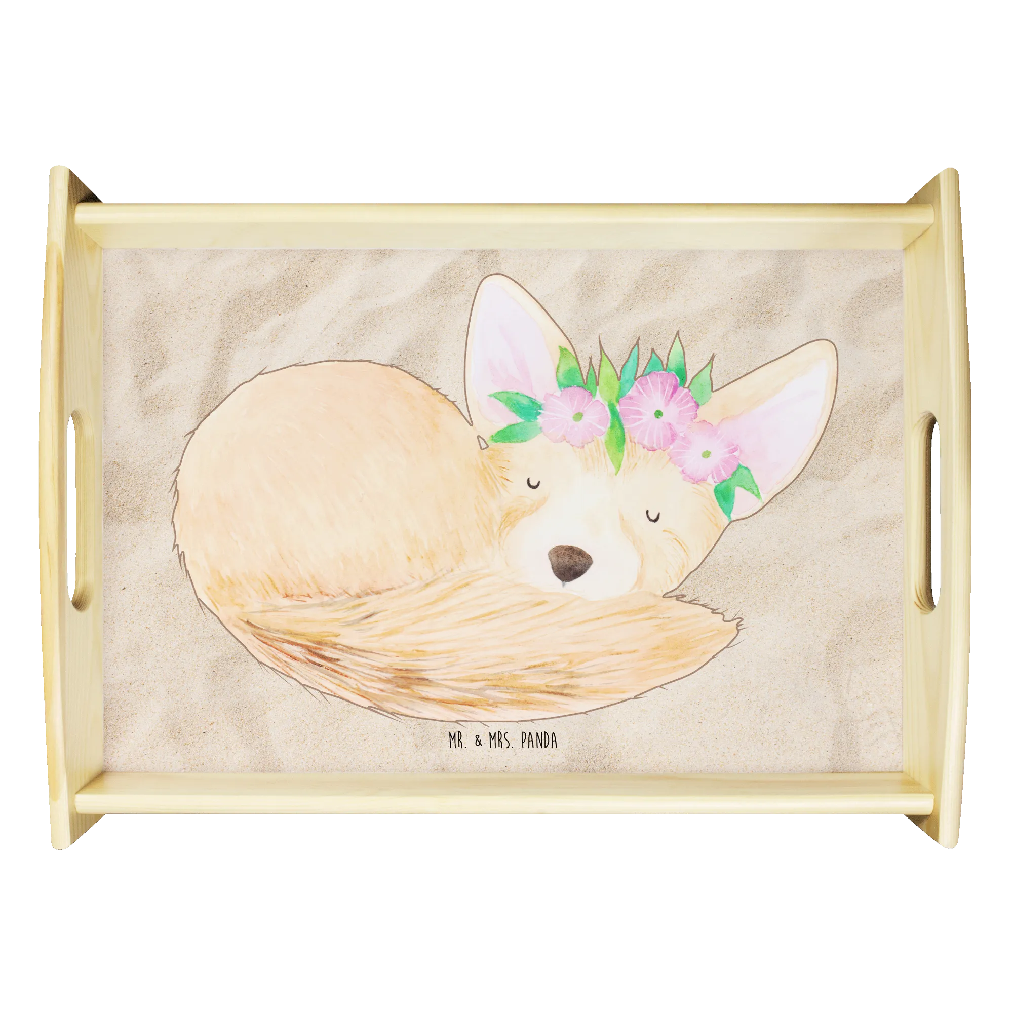 Serving tray desert fox Flower serving tray, breakfast tray, wooden tray, tray, kitchen tray, Africa, flowers, desert fox, wreath of flowers, desert, happy