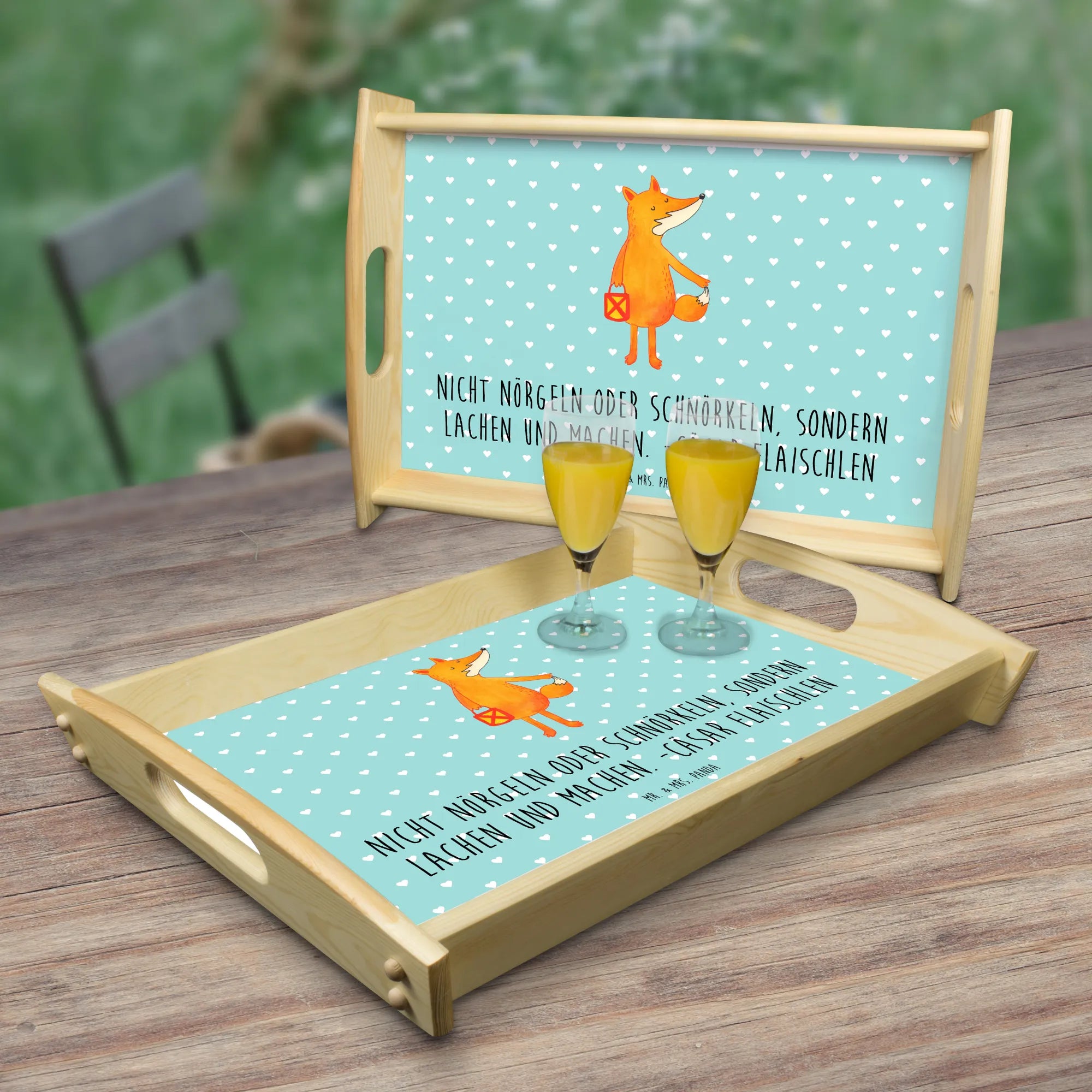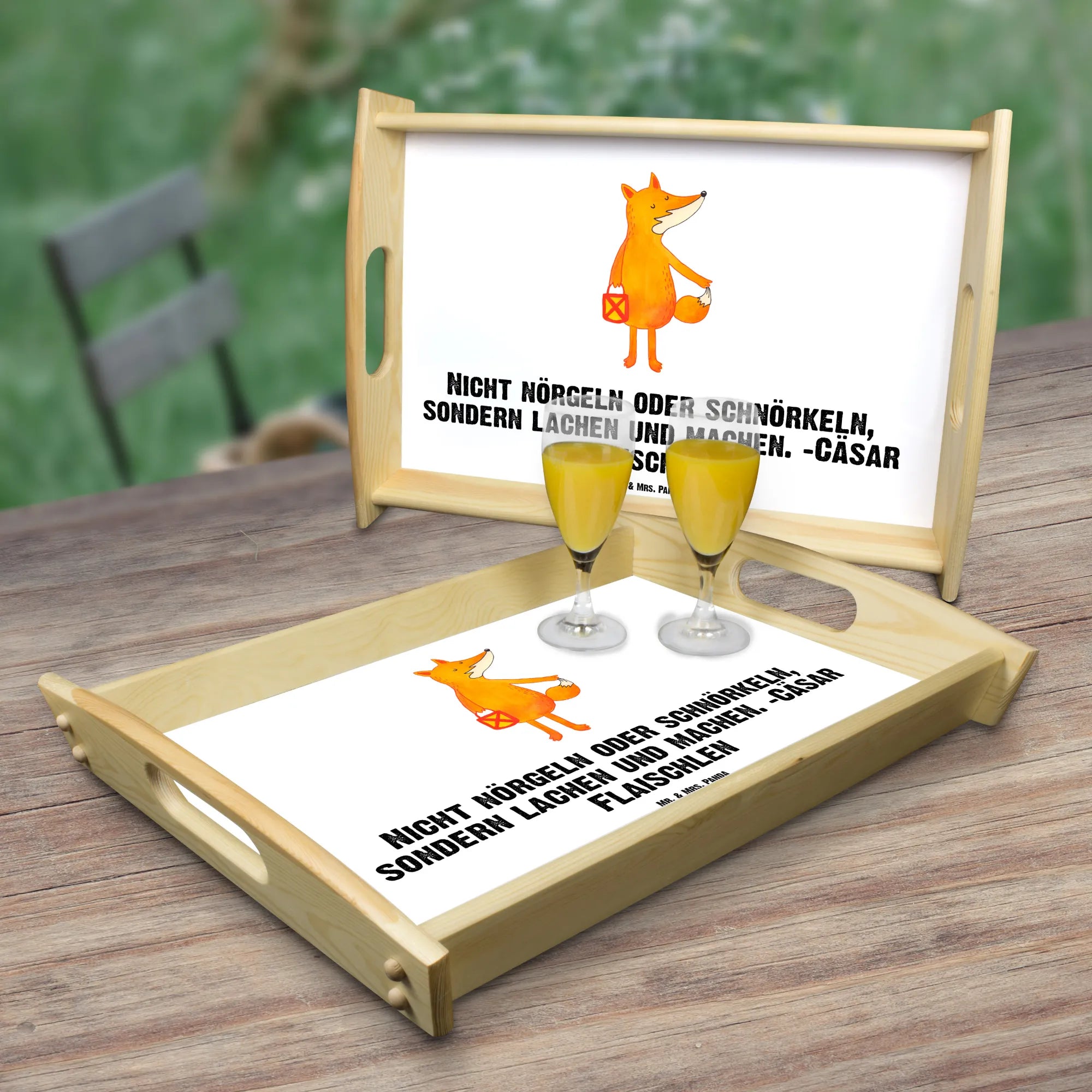 Serviertablett Fuchs Laterne – das liebevolle Holztablett aus der Fuchs Kollektion von Mr. & Mrs. Panda. Ein niedlicher Fuchs trägt seine Laterne durch die Dämmerung und zaubert sofort herbstliche Gemütlichkeit in Dein Zuhause. Perfekt für Sankt Martin, Laternenumzug, als Frühstückstablett oder als charmantes Dekotablett auf deinem Esstisch.