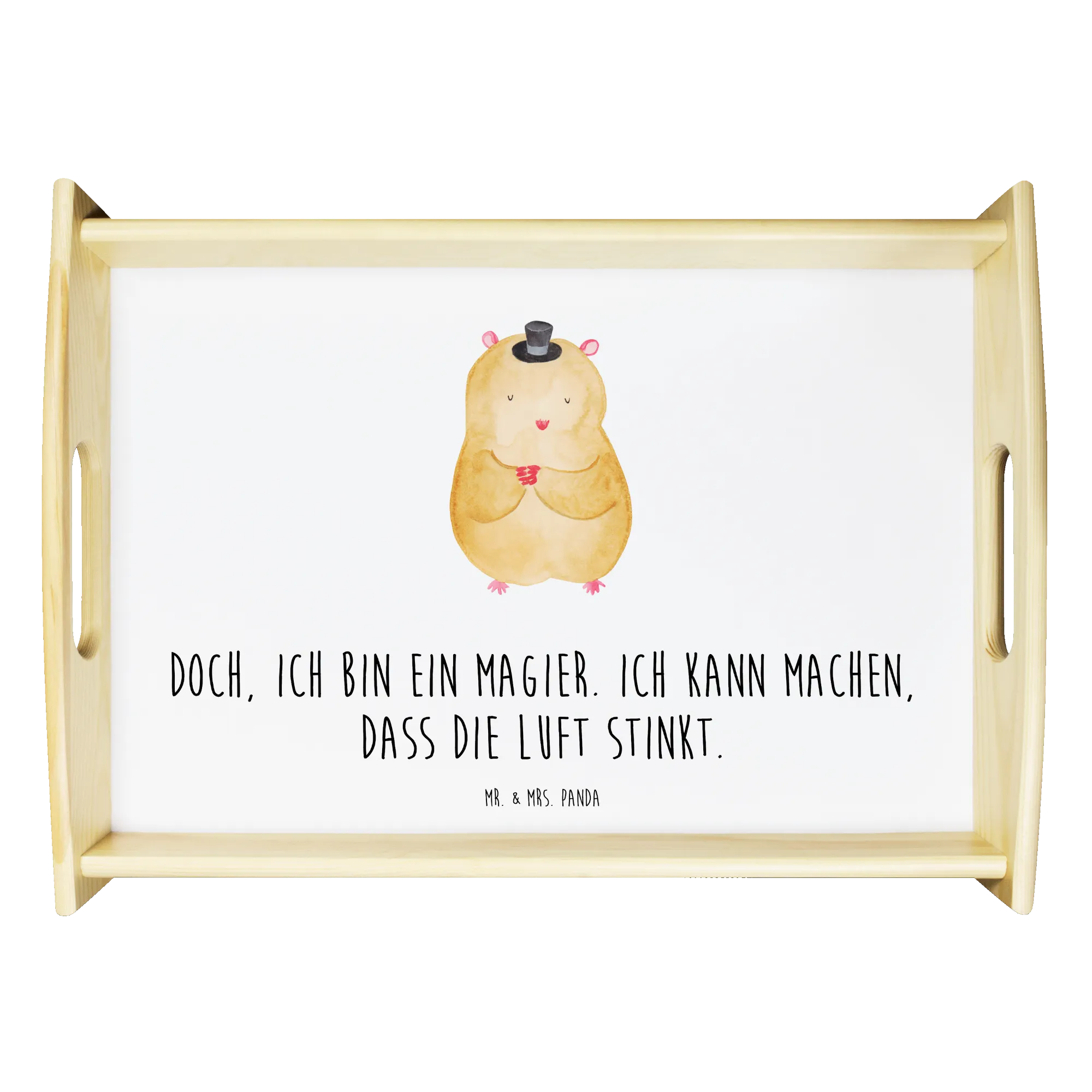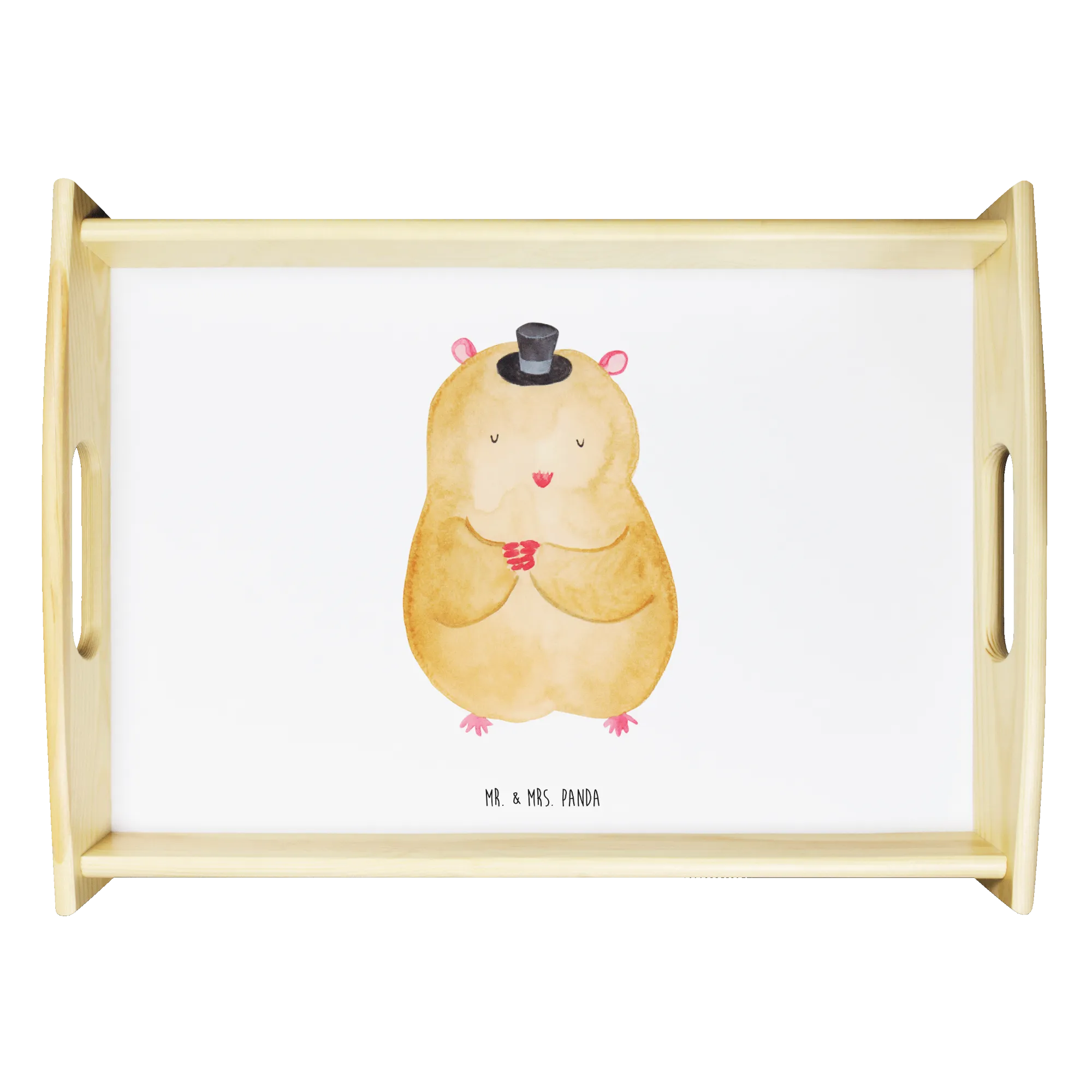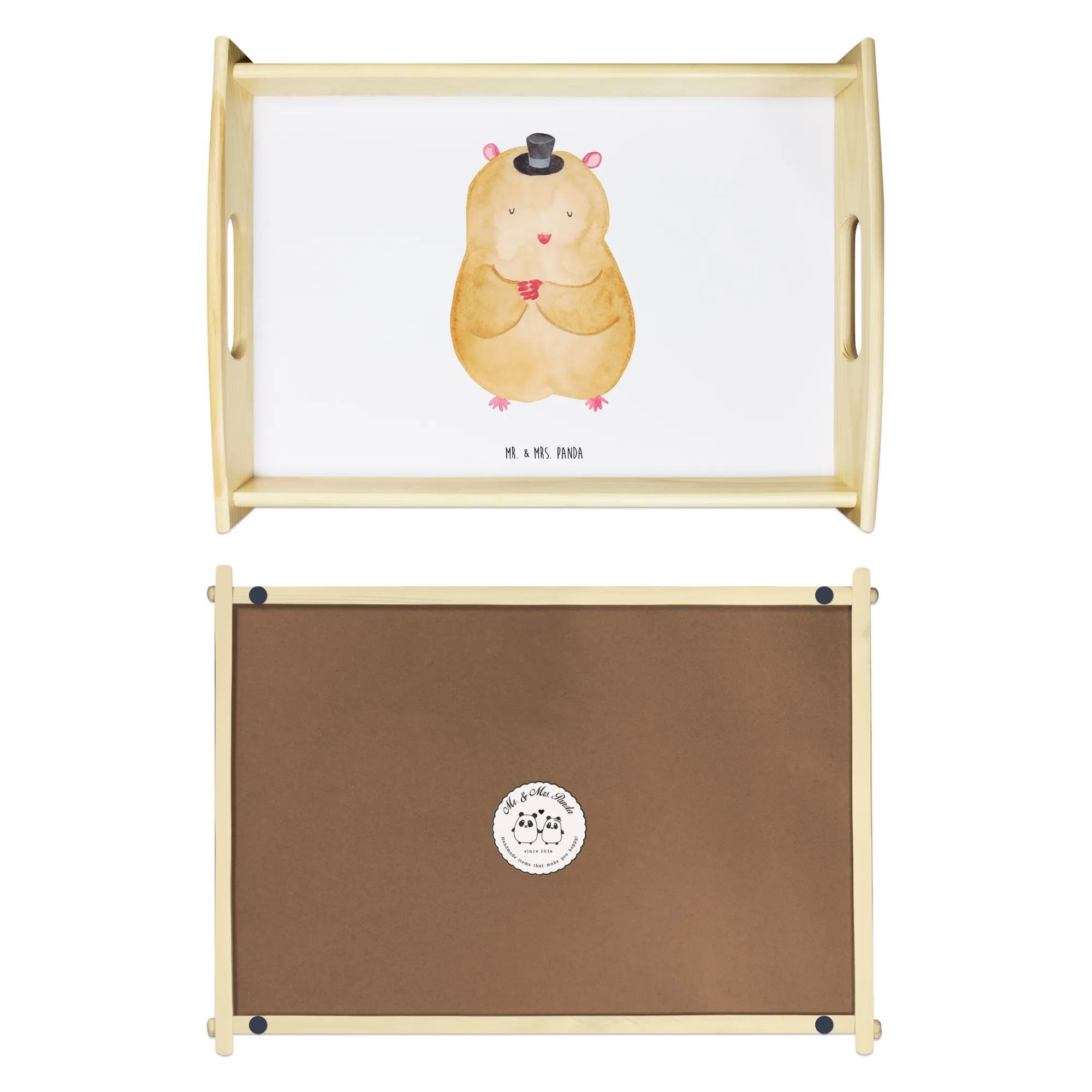 🐼 Durable, scratch-resistant wood tray with easy-carry handles.