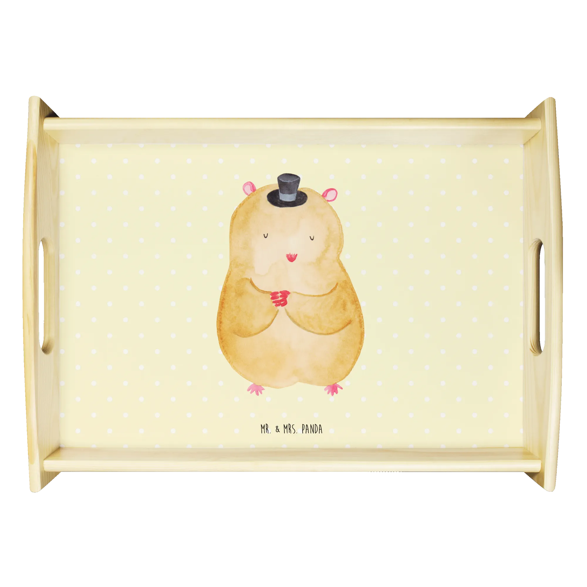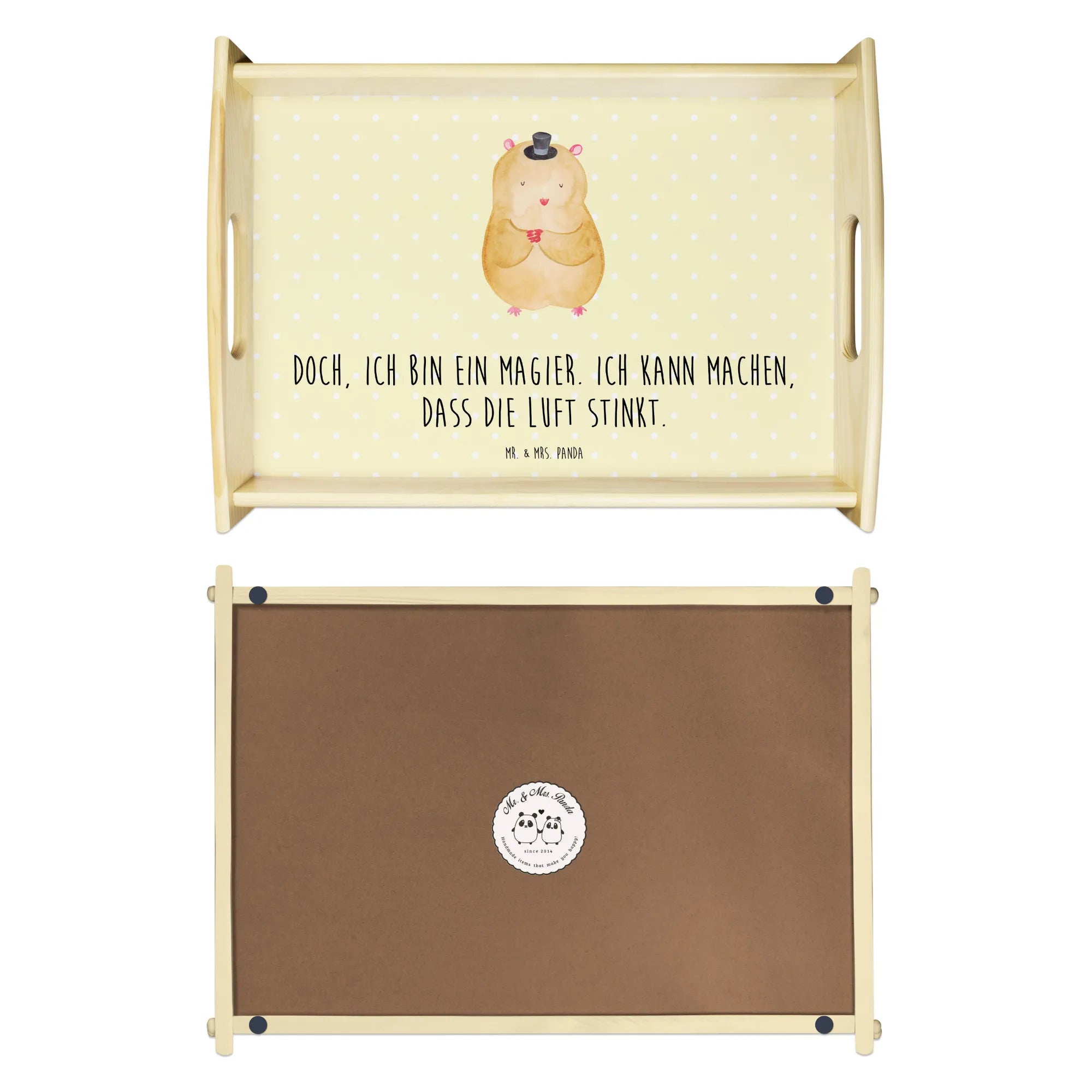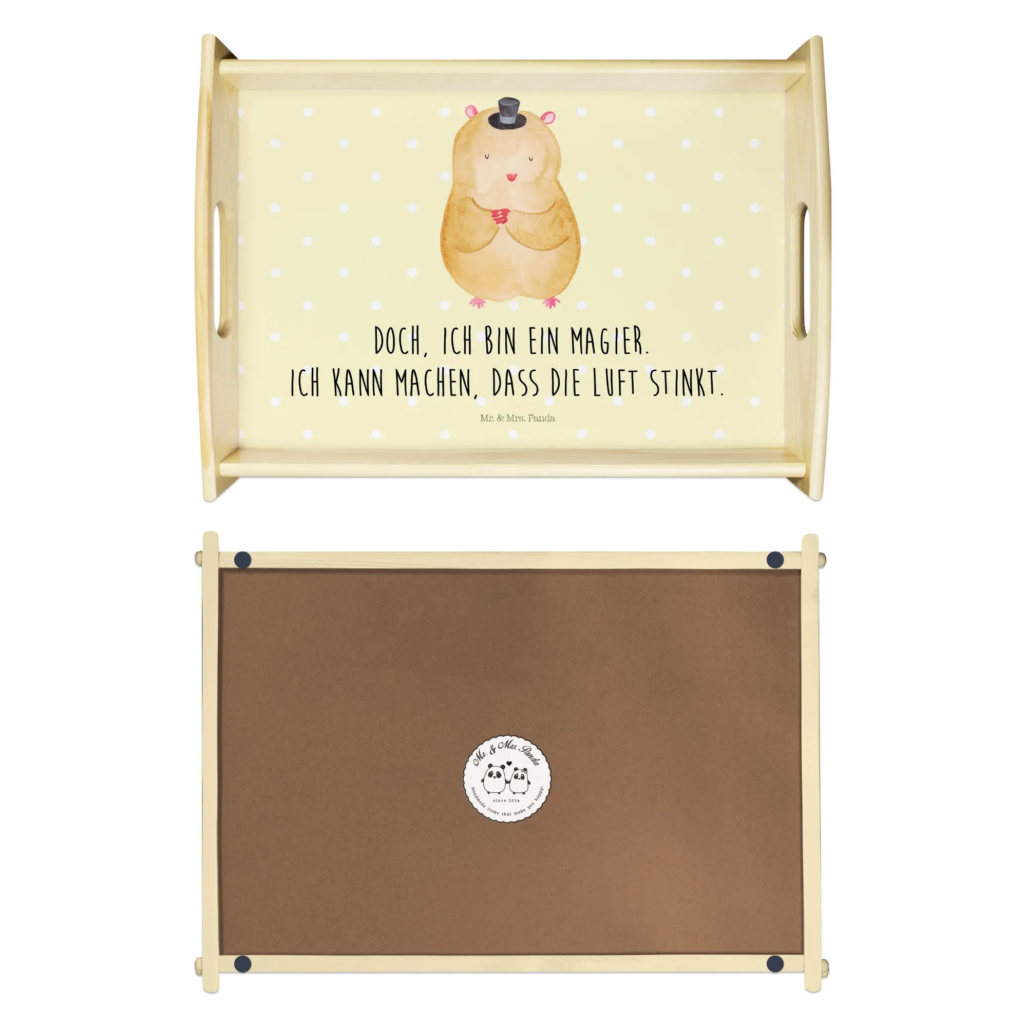 🐼 Durable, scratch-resistant wood tray with easy-carry handles.