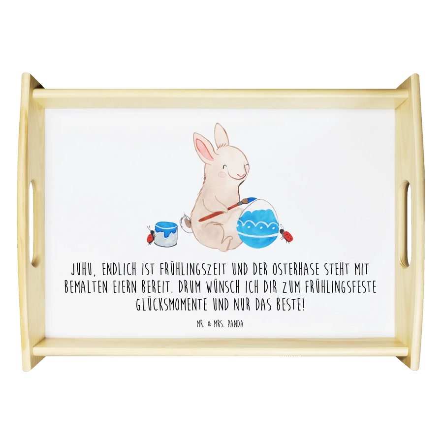 In this playful and heartwarming motif, an eager Easter bunny dabbles with paint to create colorful eggs, while a bunch of friendly ladybugs help steady the eggs with their tiny legs. As spring awakens, there's an undeniable cheer that fills the air, beautifully captured in the saying, 'Juhu, endlich ist Frühlingszeit und der Osterhase steht mit bemalten Eiern bereit. Drum wünsch ich dir zum Frühlingsfeste Glücksmomente und nur das Beste!' This season invites us to enjoy picnics filled with laughter, fun egg painting adventures, and the blossoming beauty of nature. It's a time to gather with loved ones and celebrate the little moments that spark joy and happiness, just like the colors coming to life on those eggs. Join our bunny on this creative journey and let the excitement of Easter and spring fever brighten your days.